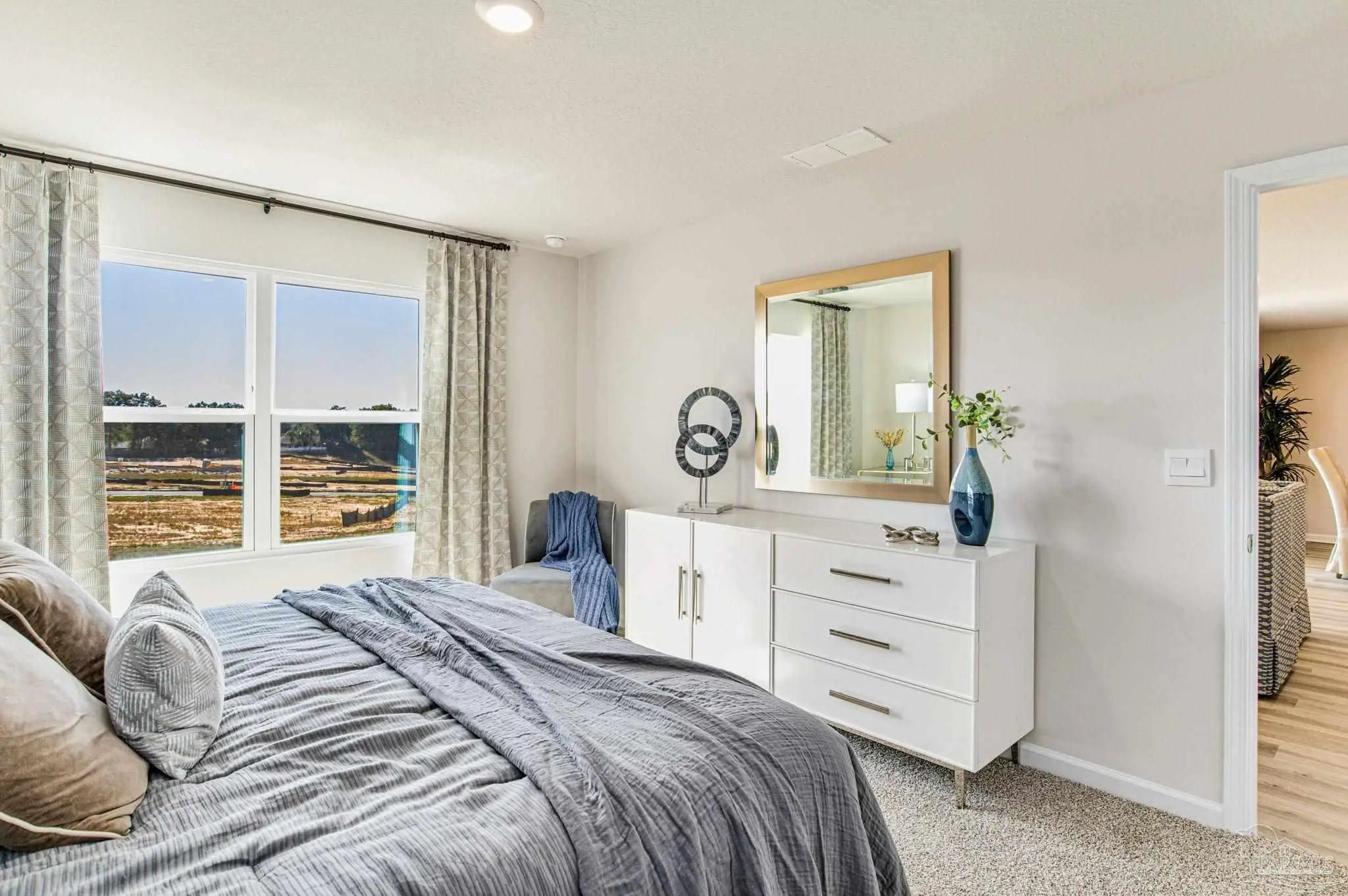 Welcome to Fallschase at Pathstone! This Beau plan is a beautiful 4 bedroom, 2 bathroom home with a two car garage. As you step inside, you'll find three guest bedrooms, each offering plenty of closet space. Moving towards the back of the house, you'll be captivated by the welcoming open-concept kitchen and living area. The kitchen features a stylish island with quartz countertops, a spacious pantry, and sleek stainless-steel appliances. Bedroom 1 is conveniently located near the living area and boasts a luxurious bathroom and a generous walk-in closet. The home is elegantly finished with beautiful LVP flooring throughout, cozy carpeting in the bedrooms, and impressive 9 ft ceilings. Additionally, it includes a Smart Home Technology package for enhanced modern convenience. Residents of this community can enjoy amenities such as a pool and playground. Conveniently situated near Navy Federal Credit Union, with easy access to I-10, lively downtown Pensacola, and the beautiful Pensacola beach.