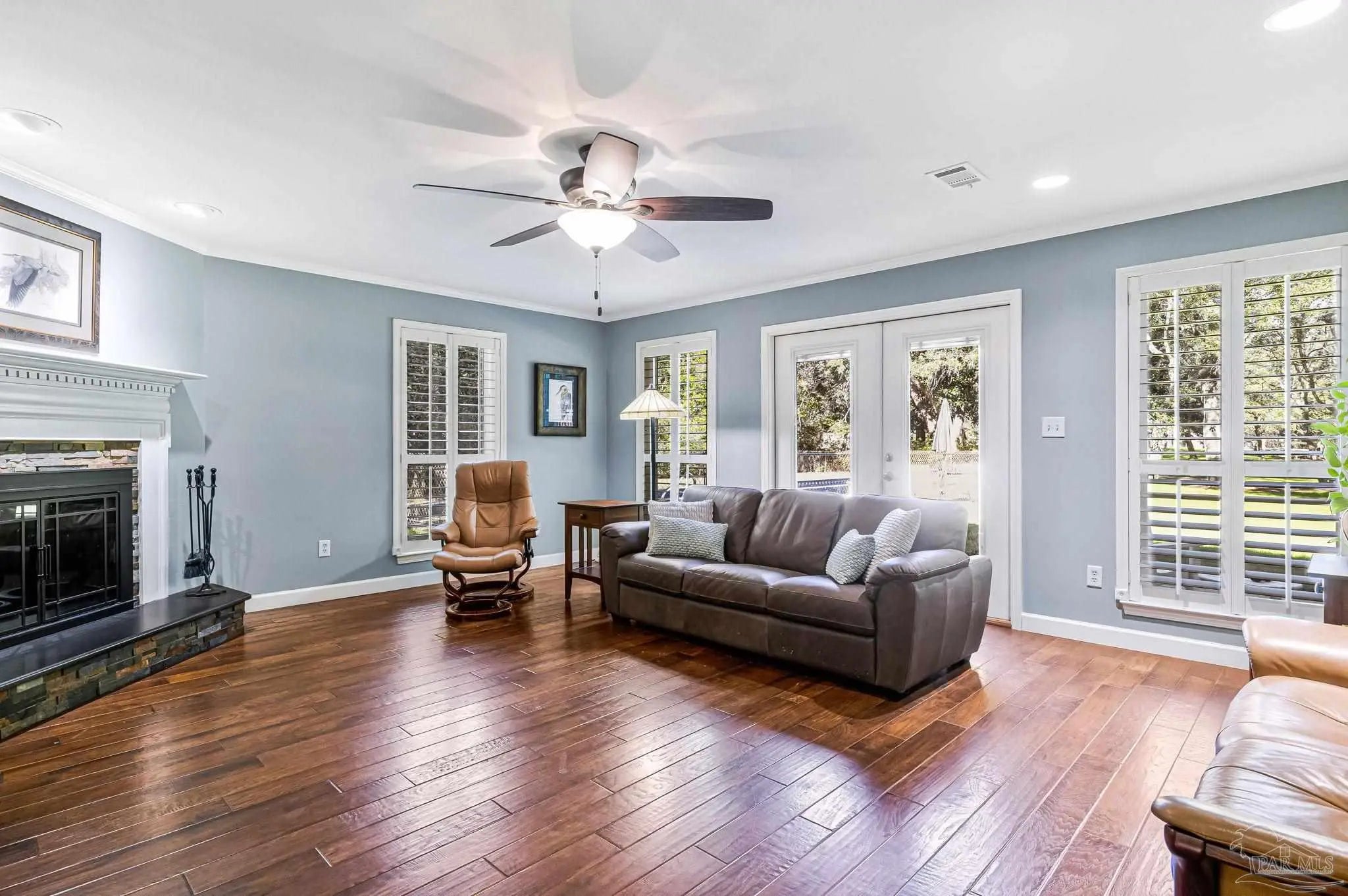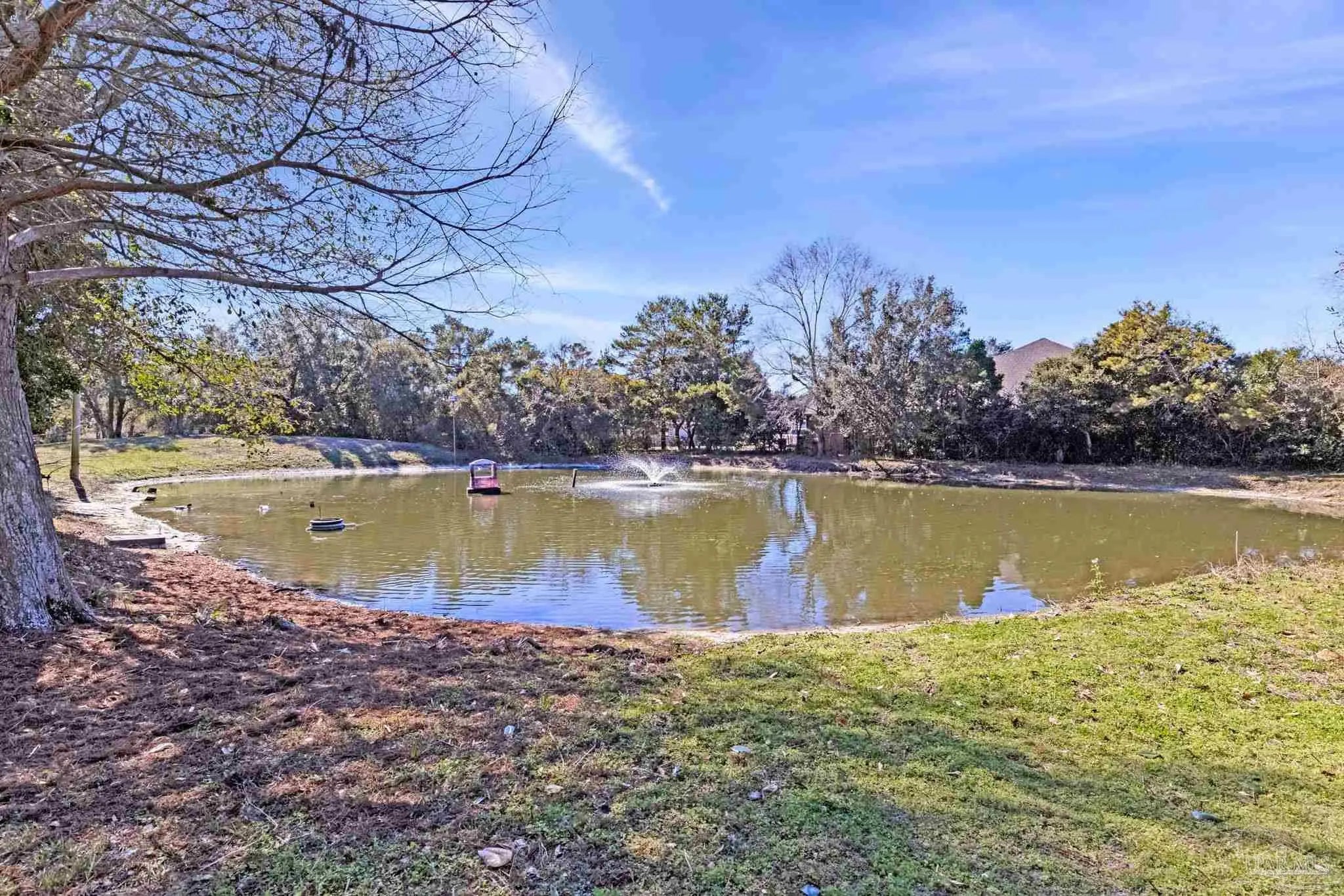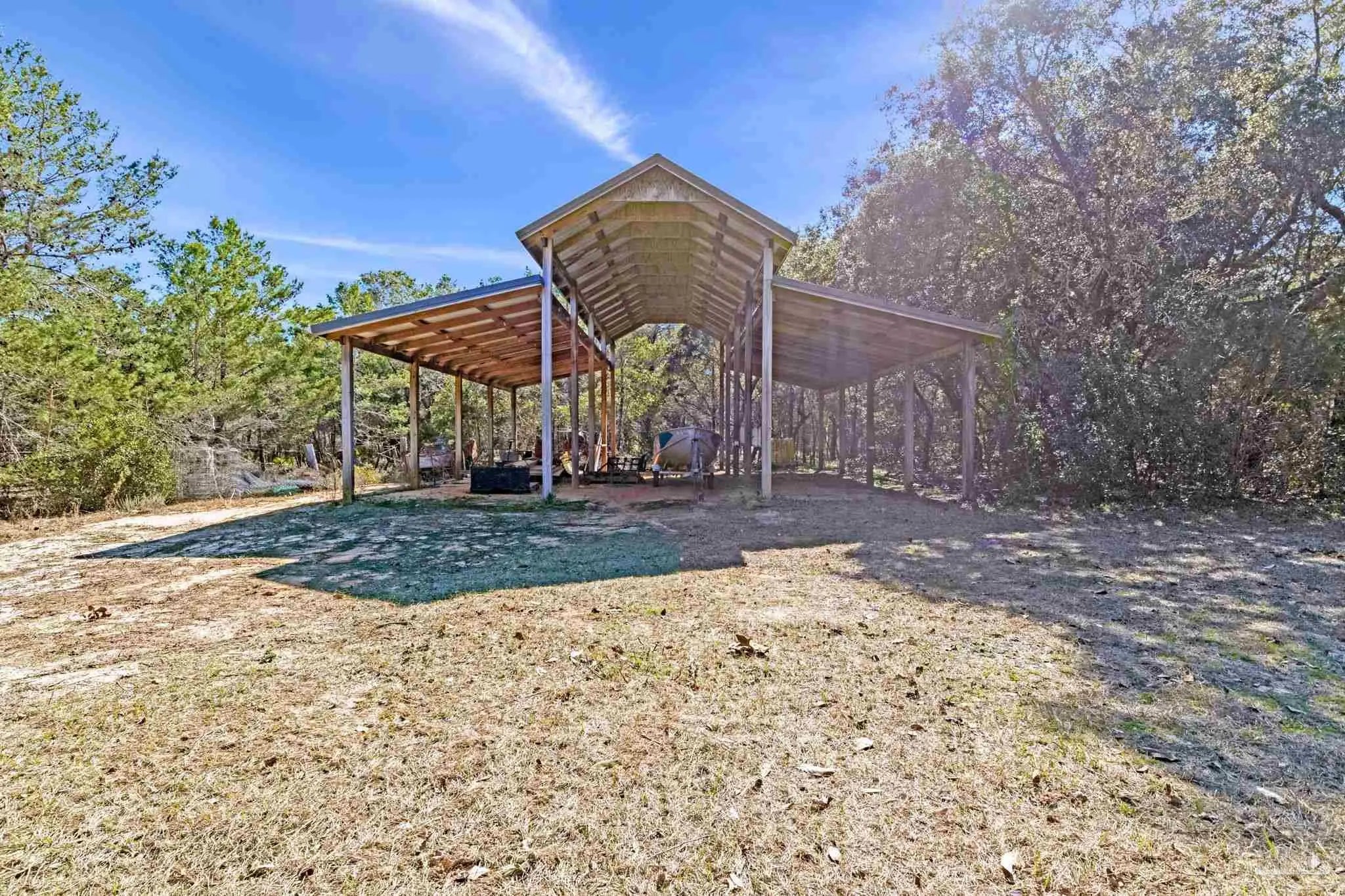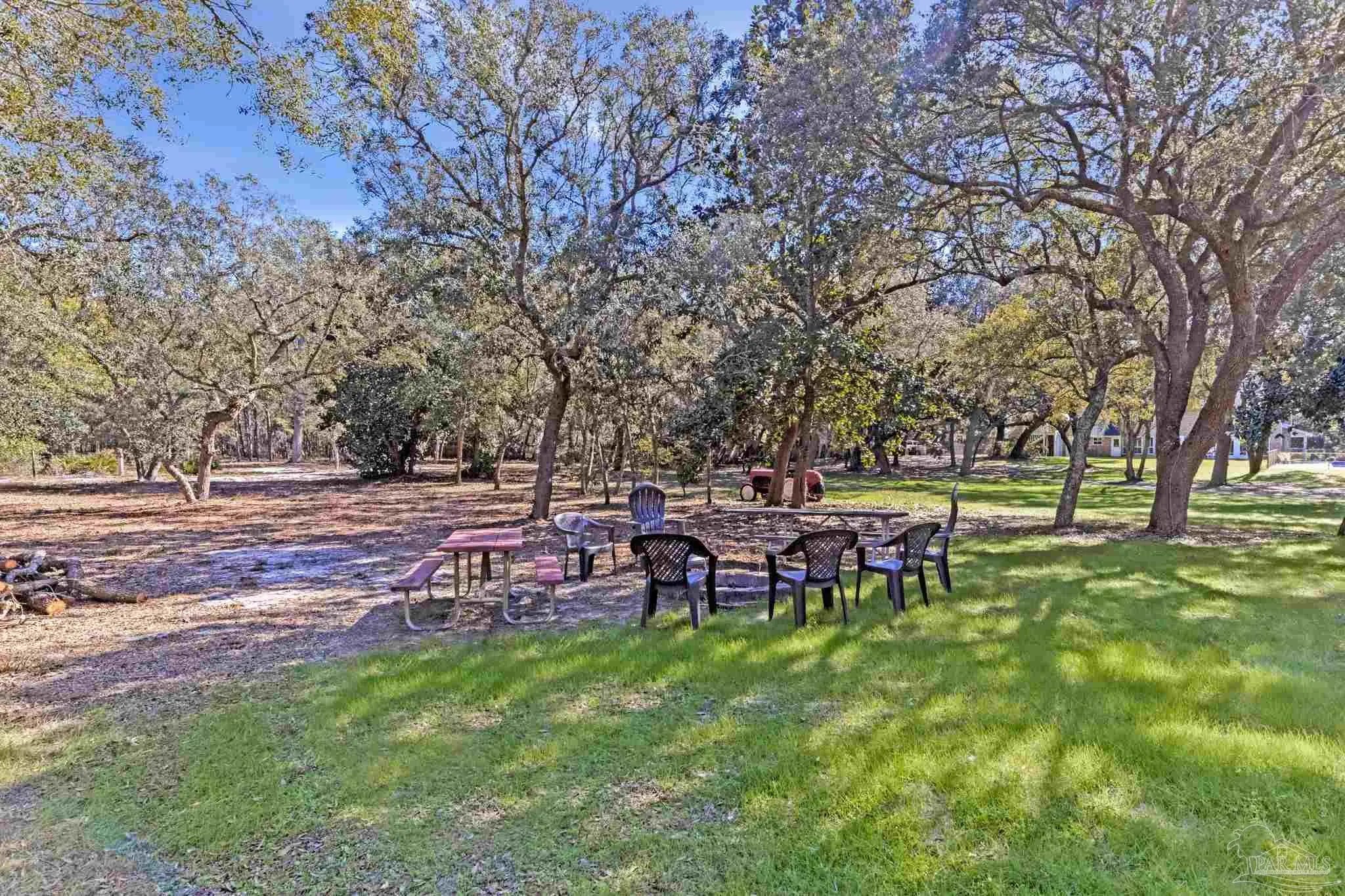 Welcome to your own private retreat right here in Gulf Breeze, and what a truly rare find it is. Properties like this almost never come available. This find offers over 11 beautiful, high-and-dry acres with mature trees, open pastures, and peaceful pockets of nature. You'll feel a world away, while still being just minutes from town and beaches. This is the kind of property where life slows down, and memories are made. Picture mornings sitting on the porch sipping coffee while watching the sun rise over the sound and evenings relaxing by the pond as the sun sets, watching herons and ducks float by. Wide open spaces for all the animals and hobbies you have dreamed of, with a fenced paddock and pasture for horses, goats, and more. This land is usable and thoughtfully laid out with two barns, one of which features an accessory unit ideal for a guest or private studio apartment. The large lap pool offers a perfect spot to cool off on warm Florida days. As you drive across your private wooden bridge over a meandering creek, there is an immediate sense of calm that sets the tone for the entire property. The custom-built brick home feels straight out of a storybook, welcoming you with an expansive front porch and a warm, inviting foyer. Inside, you find a formal dining room, a dedicated office, and a living room with dark hardwood floors and a fireplace. It is the perfect place to unwind at the end of the day. The kitchen features abundant wood cabinetry, black appliances, an island, and a breakfast nook. From there, there is easy access to the laundry room and an oversized side-entry two-car garage. Upstairs, the spacious primary suite offers its own fireplace, while the primary bathroom features double vanities, a tiled walk-in shower, dual closets, and an oversized soaking tub looking out to your private sanctum. There are two additional spacious bedrooms that share a full bath. Plus, a separate guest suite with a private entrance includes a mini kitchen and bath.