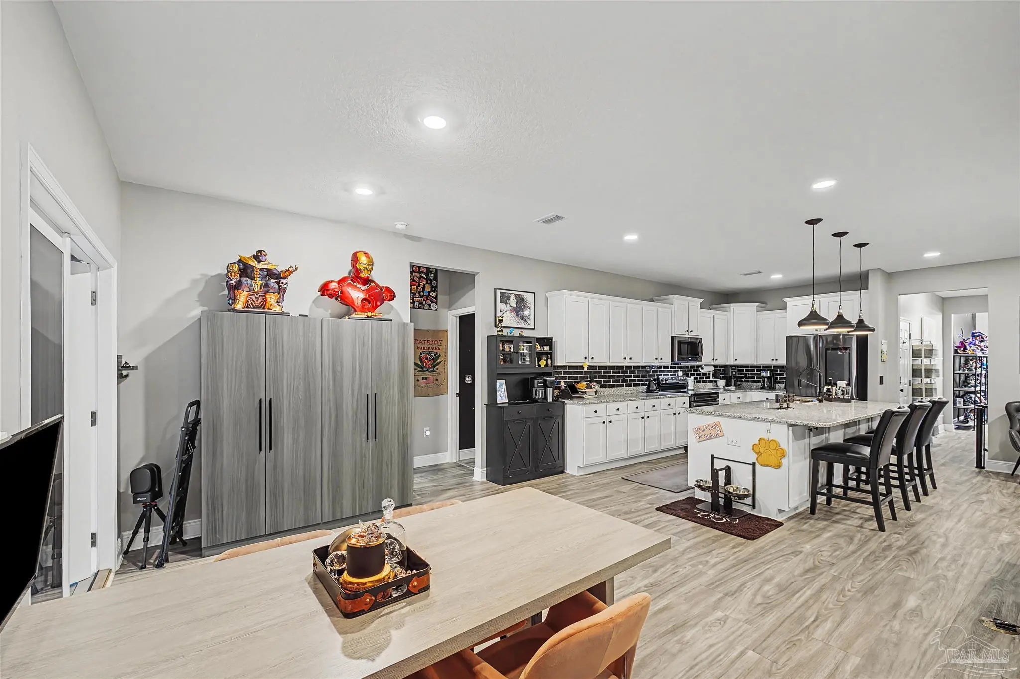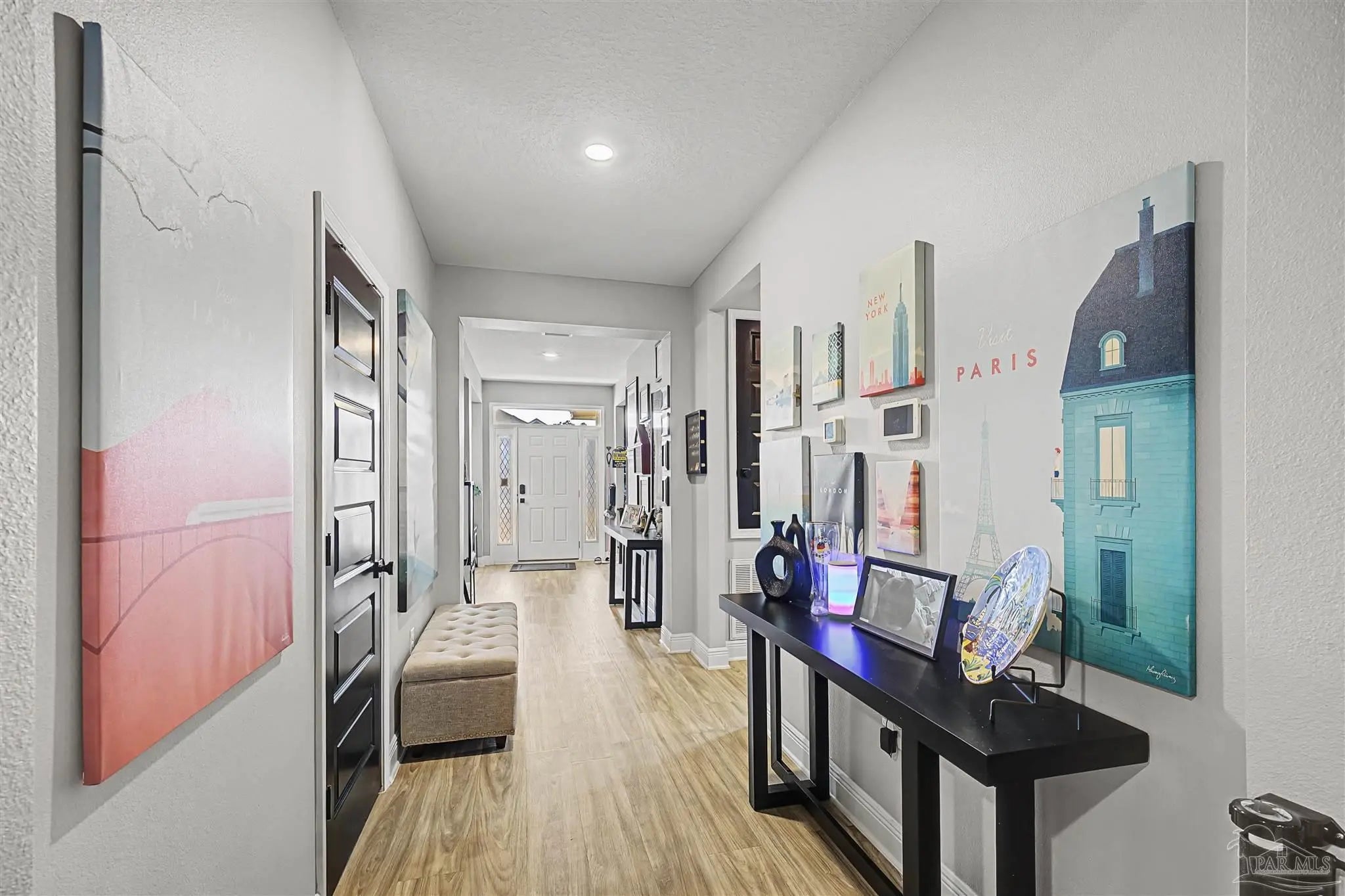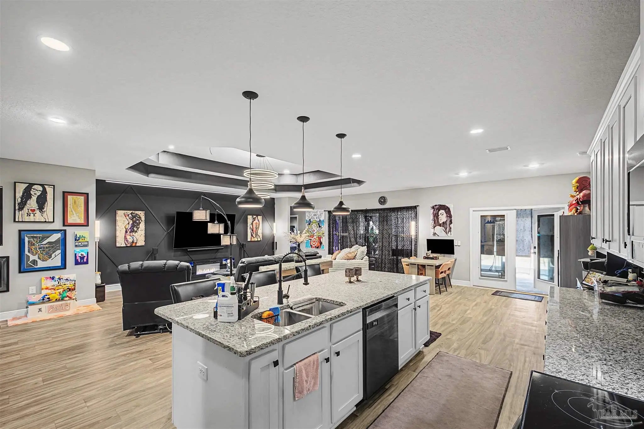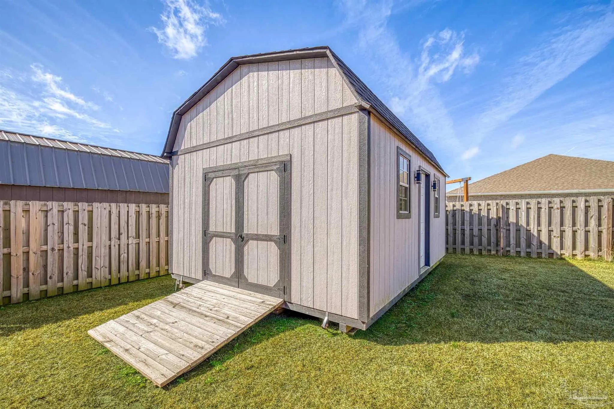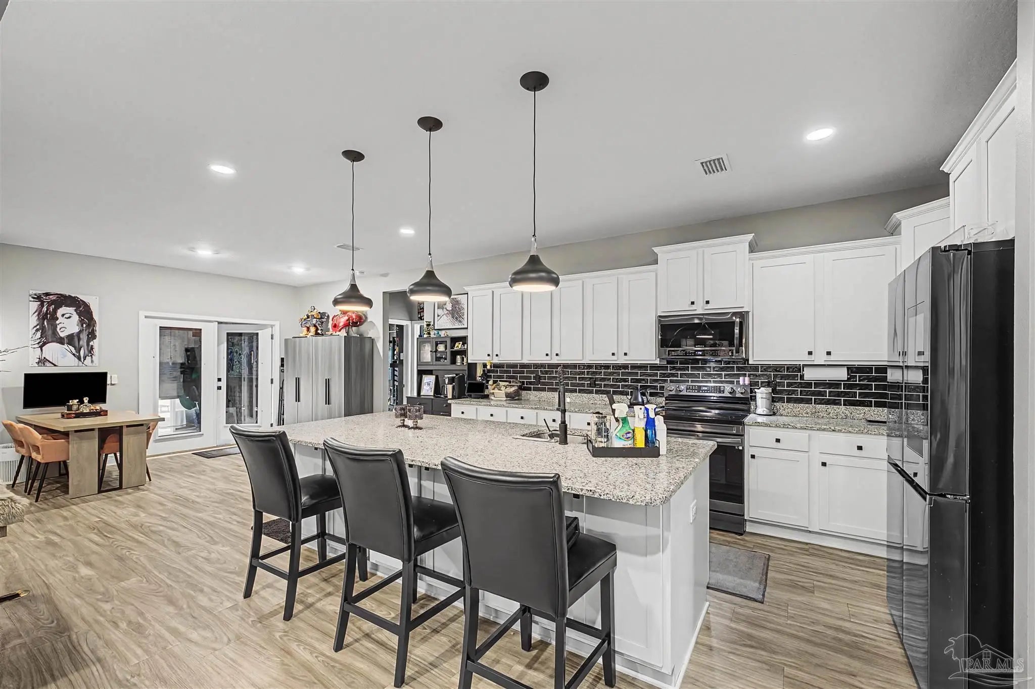 Beautiful home in the sought-after Graystone community, featuring the popular McKenzie plan with 5 bedrooms and 3 full baths. This spacious design offers 9-ft ceilings, a split bedroom layout, and an open flow from the kitchen through the dining and family room. The kitchen includes stainless steel appliances, granite countertops, Moen faucets, and a large island, while Luxury Vinyl Plank flooring enhances the foyer, living, dining, kitchen, and hallways. The main suite offers a private retreat with a 5' shower, large walk-in closet, and linen storage. Bedrooms 2–5 are generously sized, and a dedicated study at the front of the home provides a bright workspace with a large window. Additional features include an 11x23 covered back patio, privacy fenced fully sodded yard, large storage shed, wood deck, garage door opener, and an all-electric 50-gallon water heater with an efficient HVAC system. This home also comes equipped with fabric hurricane window protection and a Smart Home Technology package for added peace of mind. A rare opportunity to own a spacious, modern home in one of the area’s most desirable communities.