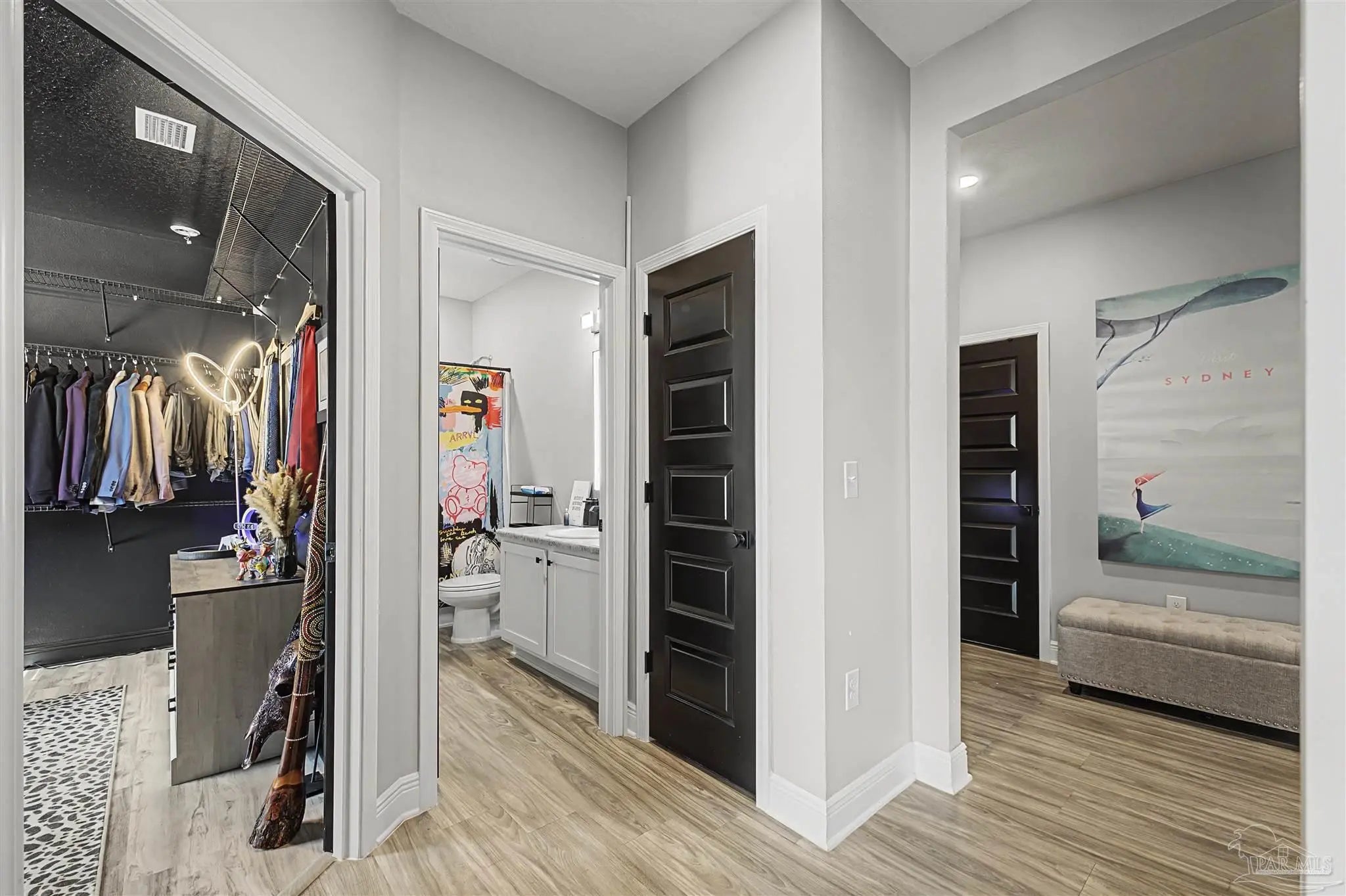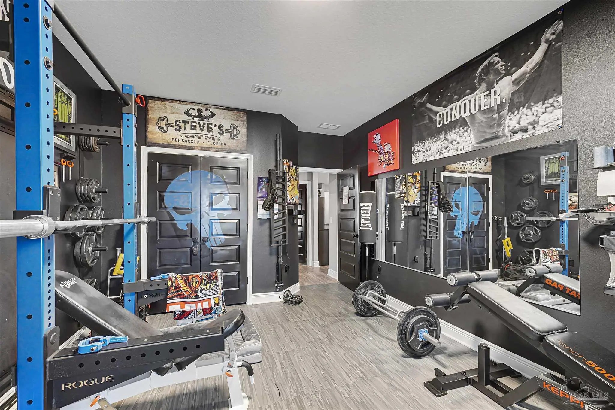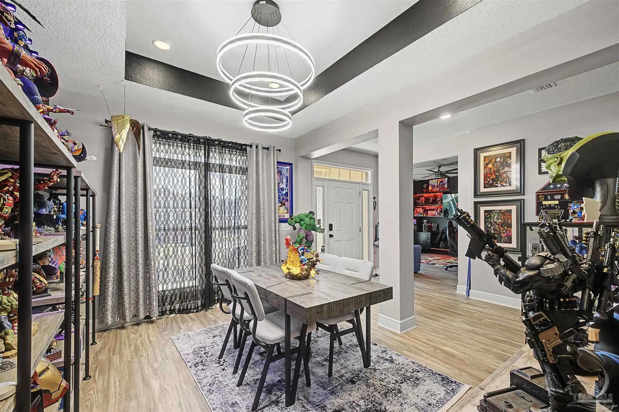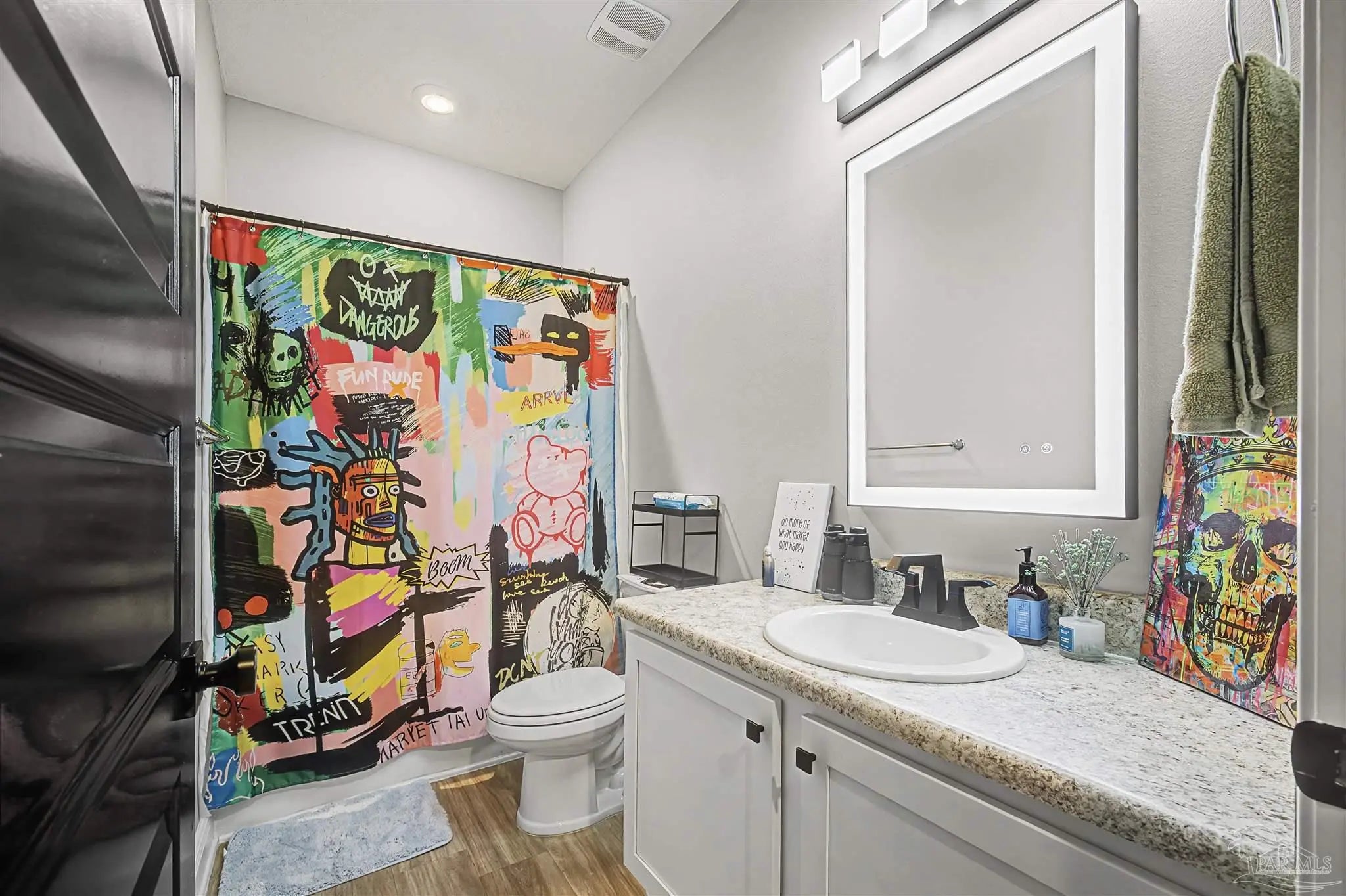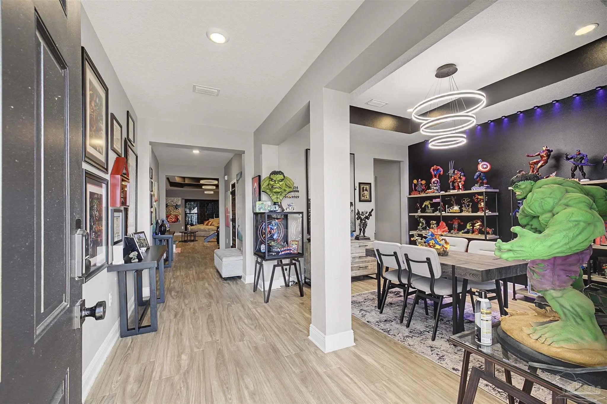 Beautiful home in the sought-after Graystone community, featuring the popular McKenzie plan with 5 bedrooms and 3 full baths. This spacious design offers 9-ft ceilings, a split bedroom layout, and an open flow from the kitchen through the dining and family room. The kitchen includes stainless steel appliances, granite countertops, Moen faucets, and a large island, while Luxury Vinyl Plank flooring enhances the foyer, living, dining, kitchen, and hallways. The main suite offers a private retreat with a 5' shower, large walk-in closet, and linen storage. Bedrooms 2–5 are generously sized, and a dedicated study at the front of the home provides a bright workspace with a large window. Additional features include an 11x23 covered back patio, privacy fenced fully sodded yard, large storage shed, wood deck, garage door opener, and an all-electric 50-gallon water heater with an efficient HVAC system. This home also comes equipped with fabric hurricane window protection and a Smart Home Technology package for added peace of mind. A rare opportunity to own a spacious, modern home in one of the area’s most desirable communities.