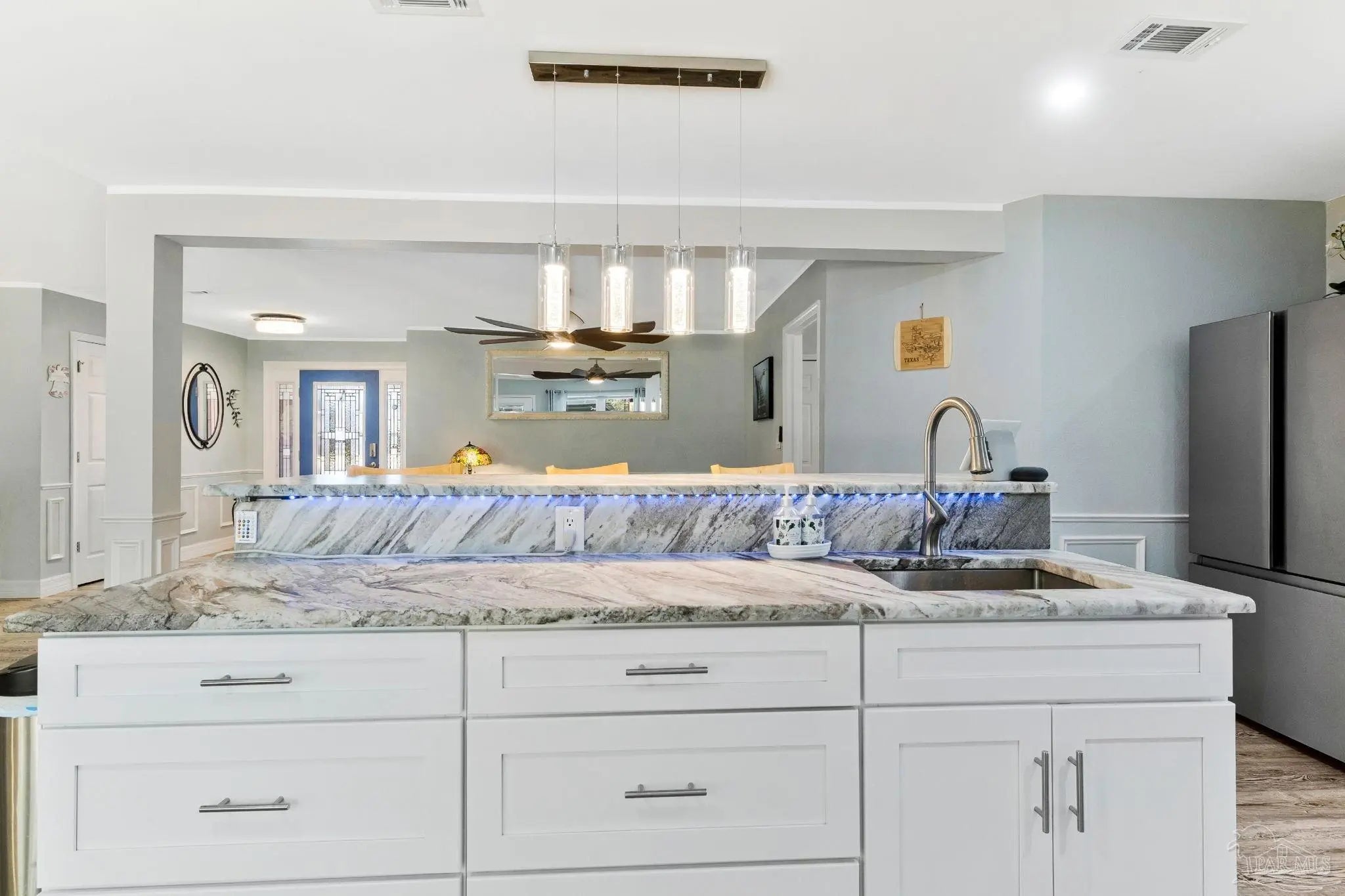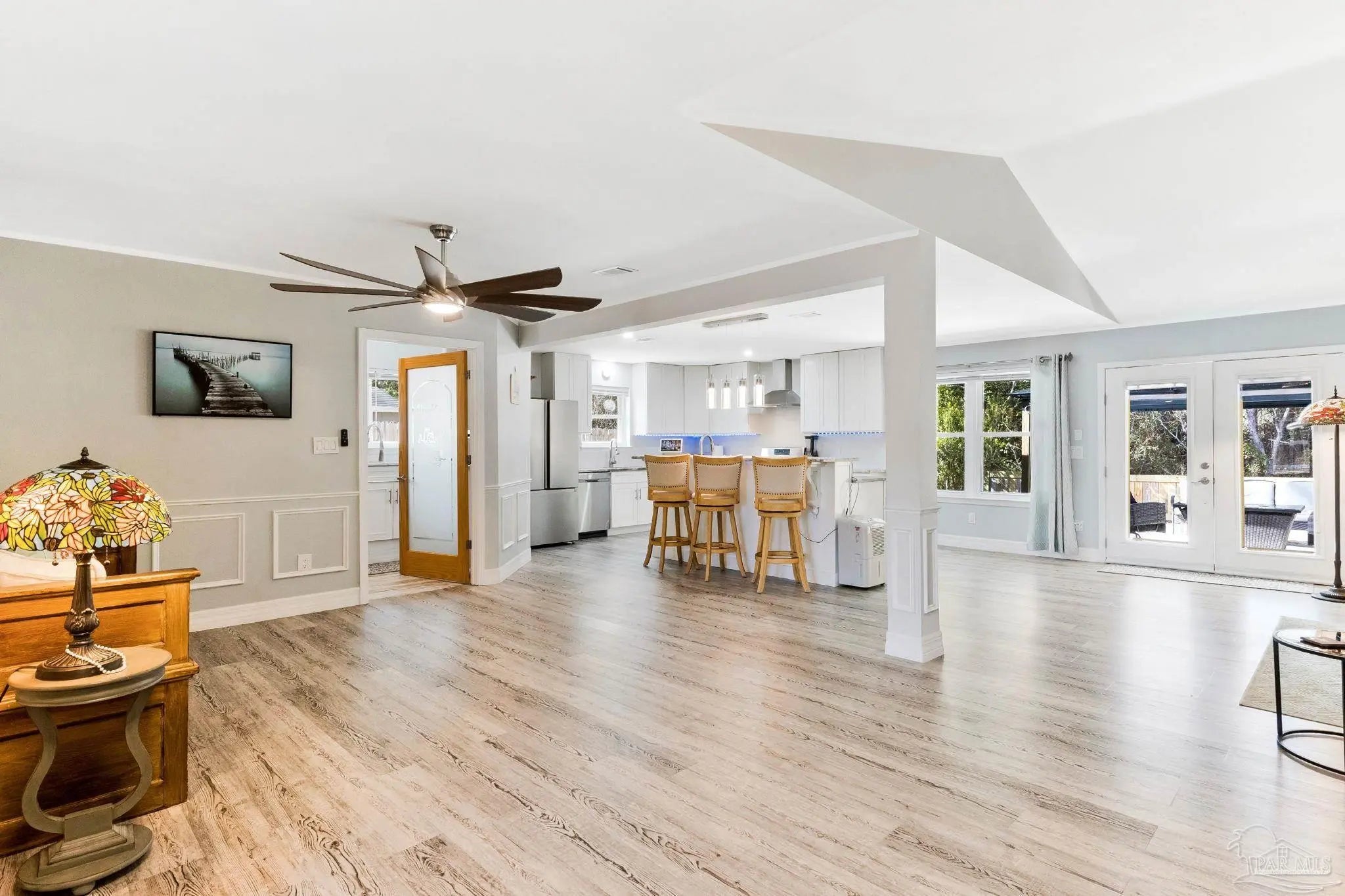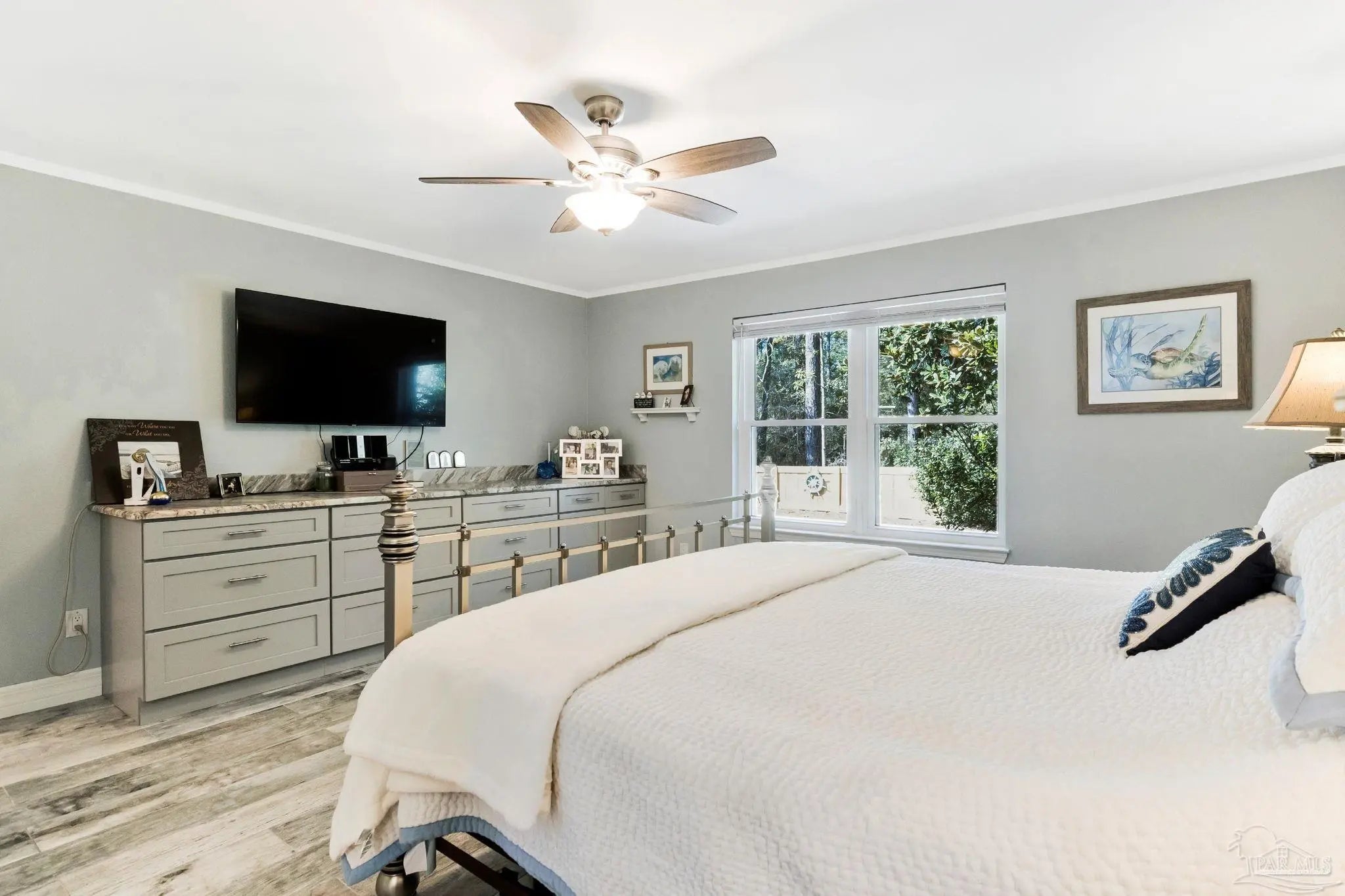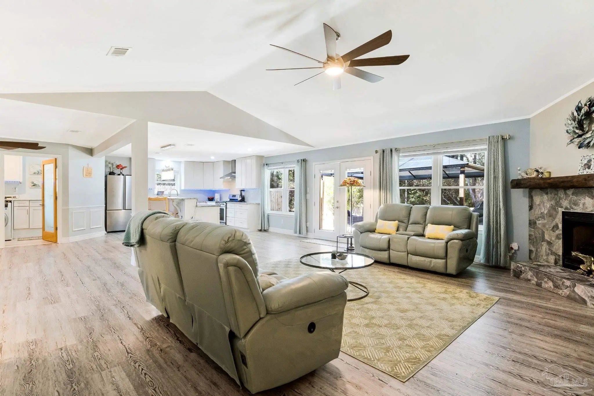 Come home to beauty and convenience. This Bauer Estates' home is in a quiet cul-de-sac located near Beaches, Library, Pickle Ball Courts, Two Beautiful State Parks and Athletic Centers. Just 25 minutes from downtown Pensacola. When you enter this beautiful home’s open floor plan you will be amazed at all the upgrades. Beautifully unique lighting features throughout the home. Upper grade luxury vinyl graces this large open area. Italian imported leathered granite enhances the custom kitchen. Beautiful ample cabinets, refrigerator, dishwasher and gas range with hood complete your kitchen. Your guests can sit comfortably at the bar as you prepare to entertain. The spacious living area has a gas fueled fireplace. The master bedroom has a lovely built-in dresser with the leathered granite top. The updated master bath has a beautiful shower and double vanity. The two secondary bedrooms are quite spacious. Lots of storage in this home. The laundry room is a dream with so much storage and work counter area as well as sink. A new fence was installed in the backyard but kept low to enjoy the beautiful forest view. The two-car garage has a mini split HVAC system for those weekend hobbies or business. Whole House Natural Gas Generator brings peace of mind and this one is regularly serviced. Front and back sprinkler system with yard well to save you on your water bill. HVAC 2019, Roof 2019, Windows 2021. Seller will consider selling Gazebo and furnishings. This well maintained home is move in ready.
