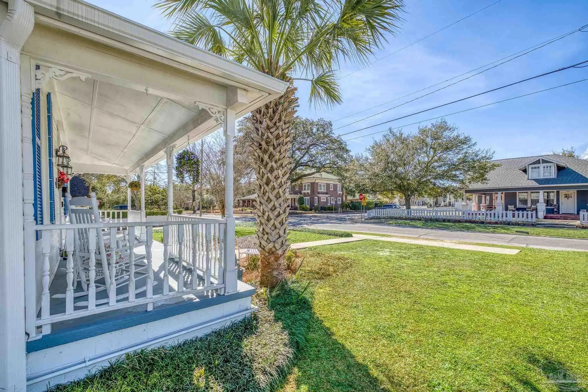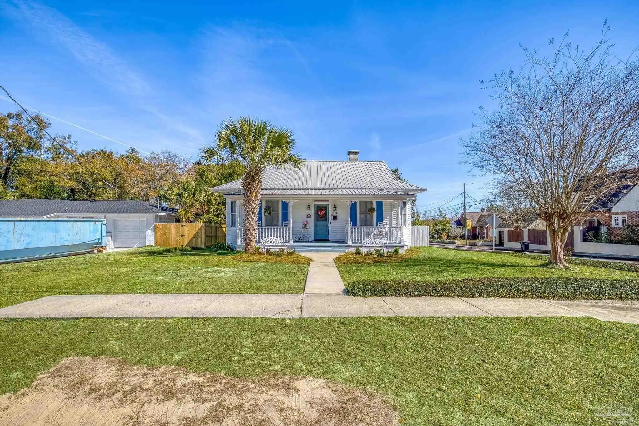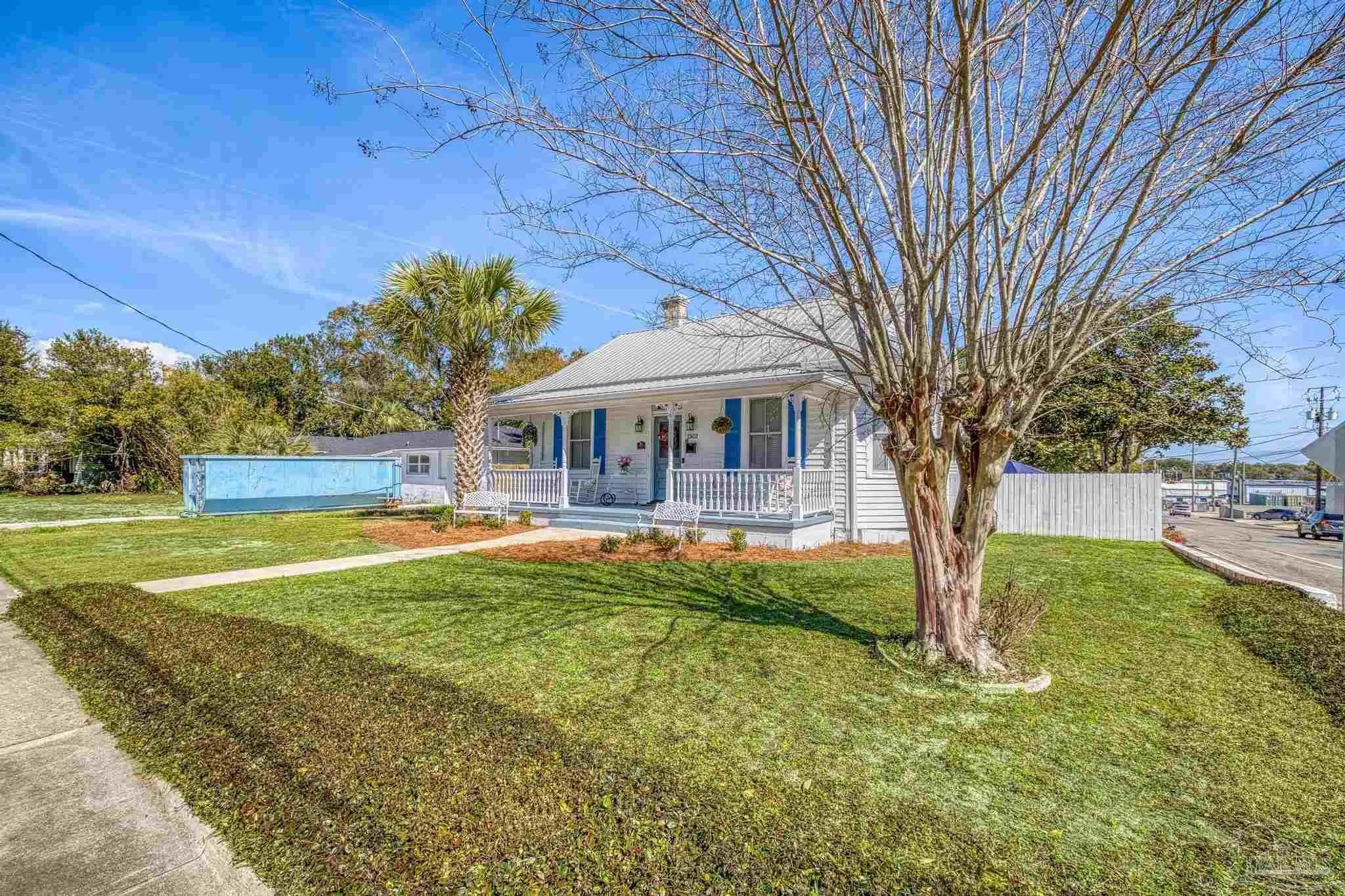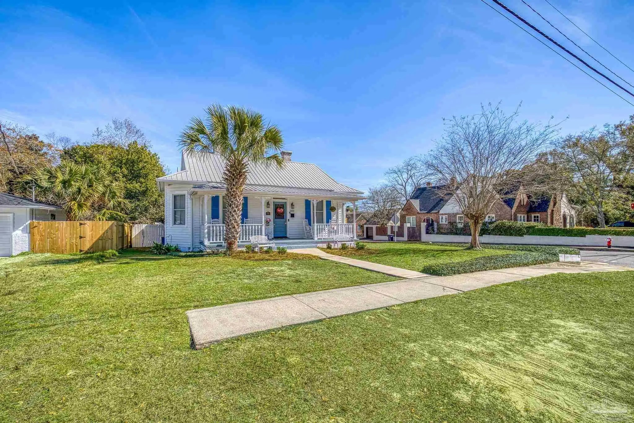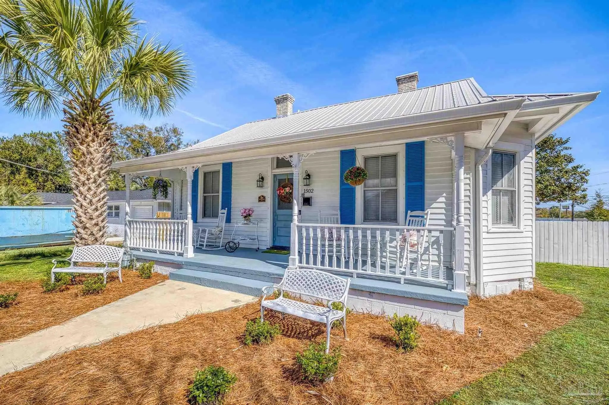 Charming North Hill Historic District Cottage! Located in the highly sought-after North Hill Historic District, this beautifully maintained home offers 3 bedrooms and 2 full bathrooms with 1,514 square feet of living space, perfectly situated on a .17-acre corner lot. Welcomed by a large front porch with classic rocking chairs and a cheerful pop of color on the front door, this home blends timeless character with thoughtful updates. Inside, you’ll find a wonderful flow throughout, highlighted by crown molding, built-in bookcases and shelving, and four ornamental fireplaces that preserve the home’s historic charm. The kitchen features granite countertops, a breakfast bar area, and updated appliances including a refrigerator, stove, dishwasher, and microwave (2024). The spacious primary bathroom includes a travertine shower with bench, while the guest bath offers a large soaking tub. Recent updates provide peace of mind, including whole-house exterior painting (2025), new gutters (2025), updated lighting and ceiling fans (2023), and washer and dryer (2025). The low-maintenance landscaping complements the attractive corner lot setting. Enjoy living in one of Pensacola’s most beloved neighborhoods, known for its strong sense of community, neighborhood events, and beautiful historic surroundings. The subdivision also offers a picnic area, playground, and tennis courts for added recreation. This is a rare opportunity to own a charming historic cottage with modern conveniences in an exceptional location!