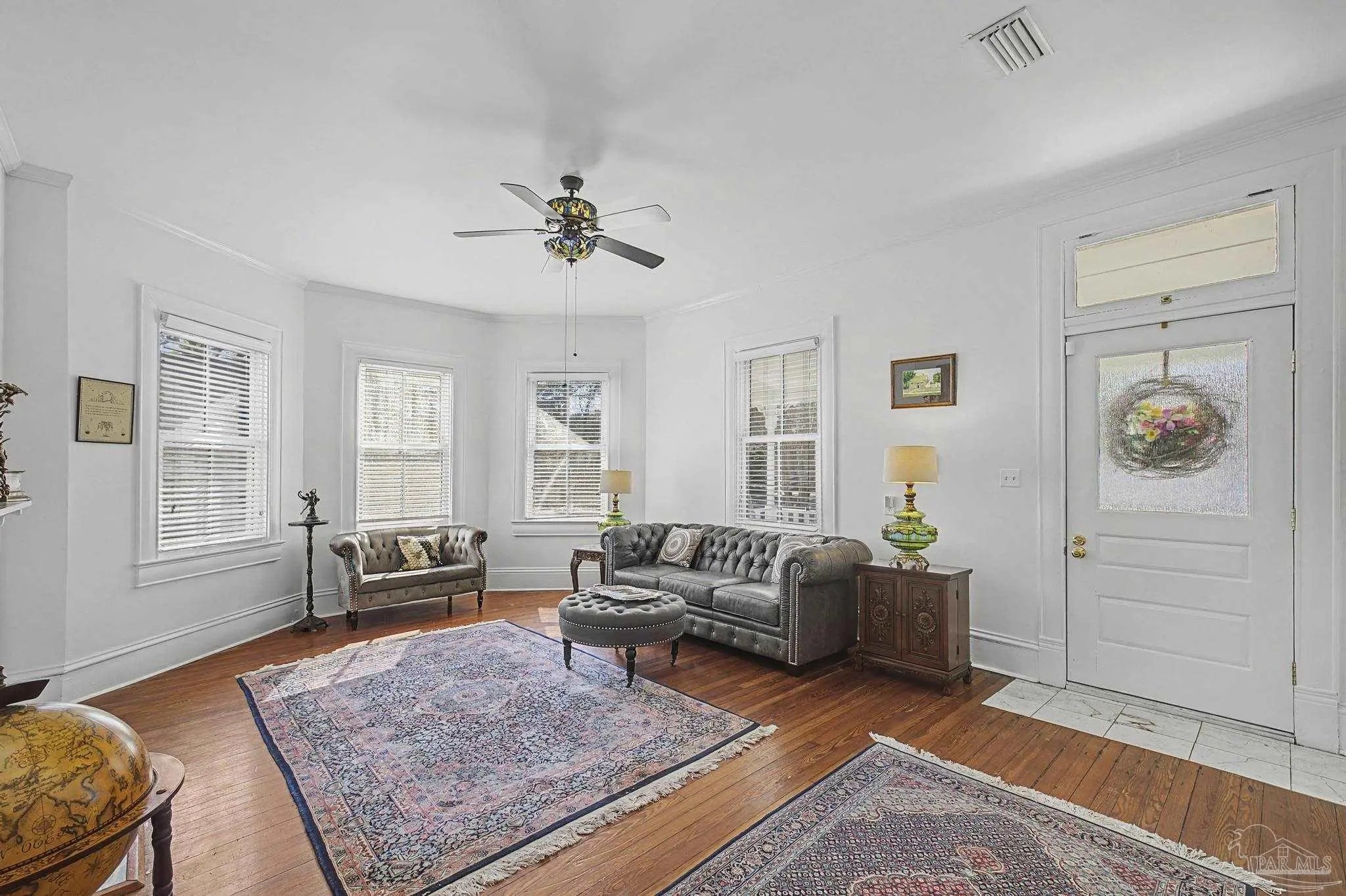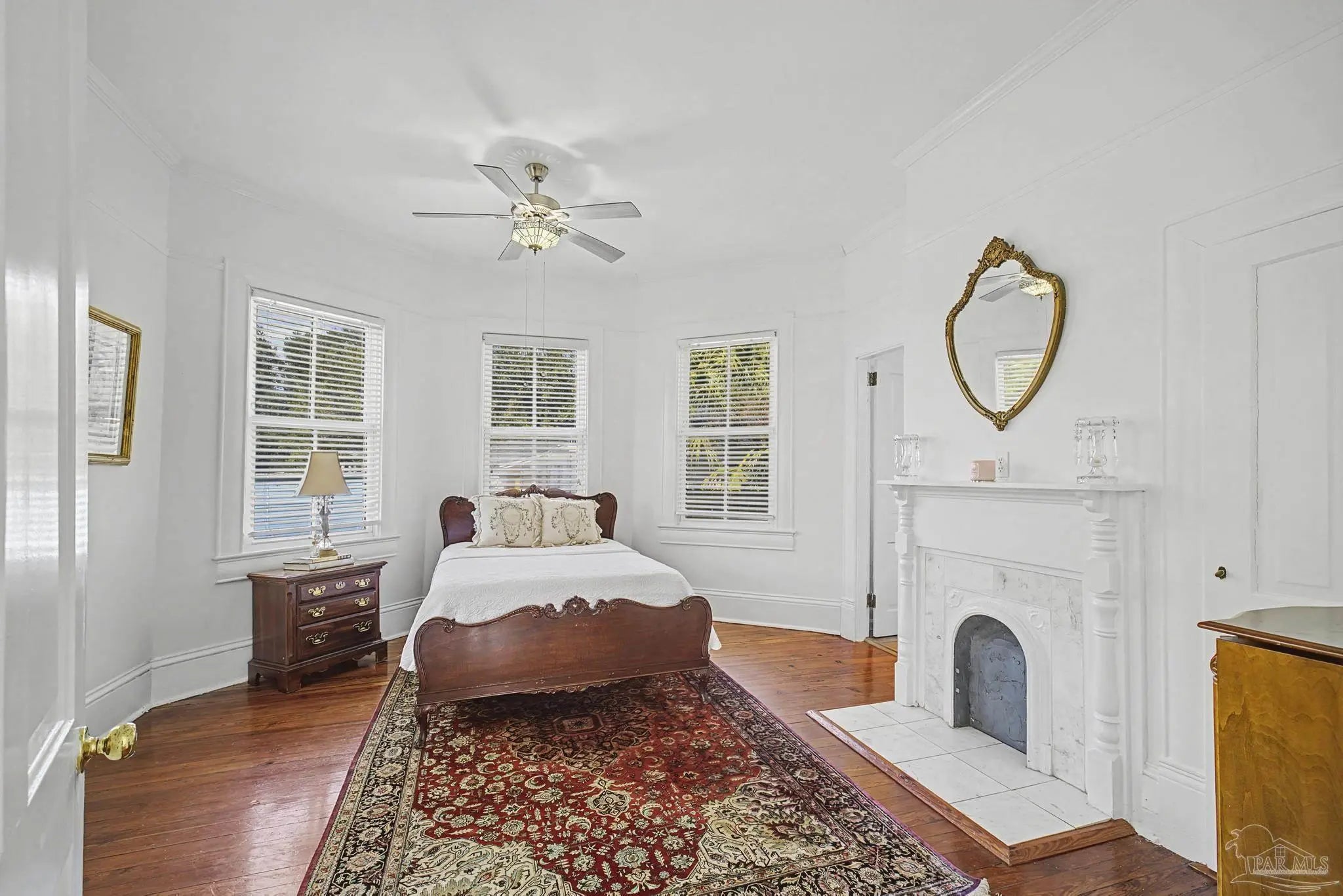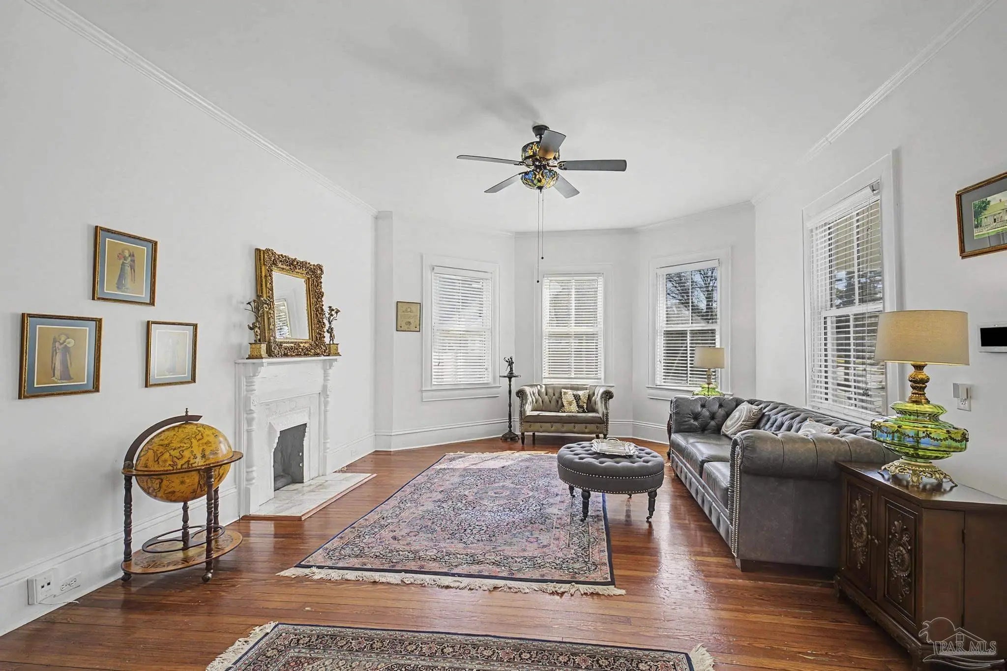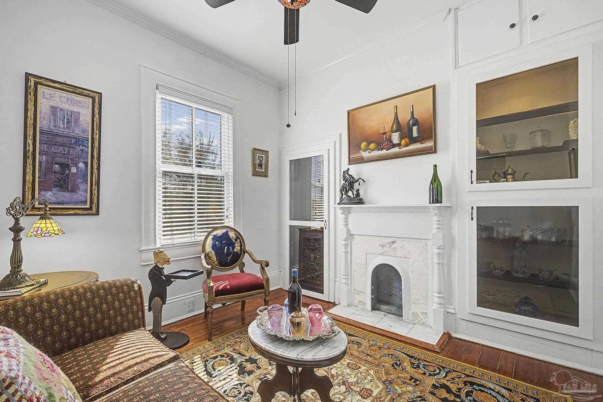 Charming North Hill Historic District Cottage! Located in the highly sought-after North Hill Historic District, this beautifully maintained home offers 3 bedrooms and 2 full bathrooms with 1,514 square feet of living space, perfectly situated on a .17-acre corner lot. Welcomed by a large front porch with classic rocking chairs and a cheerful pop of color on the front door, this home blends timeless character with thoughtful updates. Inside, you’ll find a wonderful flow throughout, highlighted by crown molding, built-in bookcases and shelving, and four ornamental fireplaces that preserve the home’s historic charm. The kitchen features granite countertops, a breakfast bar area, and updated appliances including a refrigerator, stove, dishwasher, and microwave (2024). The spacious primary bathroom includes a travertine shower with bench, while the guest bath offers a large soaking tub. Recent updates provide peace of mind, including whole-house exterior painting (2025), new gutters (2025), updated lighting and ceiling fans (2023), and washer and dryer (2025). The low-maintenance landscaping complements the attractive corner lot setting. Enjoy living in one of Pensacola’s most beloved neighborhoods, known for its strong sense of community, neighborhood events, and beautiful historic surroundings. The subdivision also offers a picnic area, playground, and tennis courts for added recreation. This is a rare opportunity to own a charming historic cottage with modern conveniences in an exceptional location!