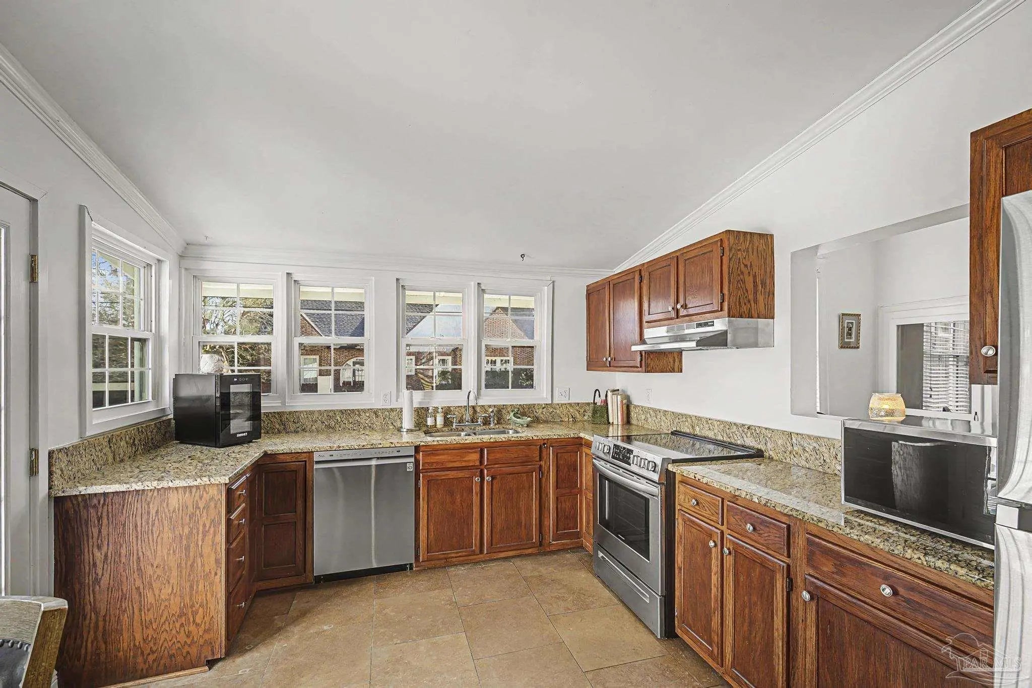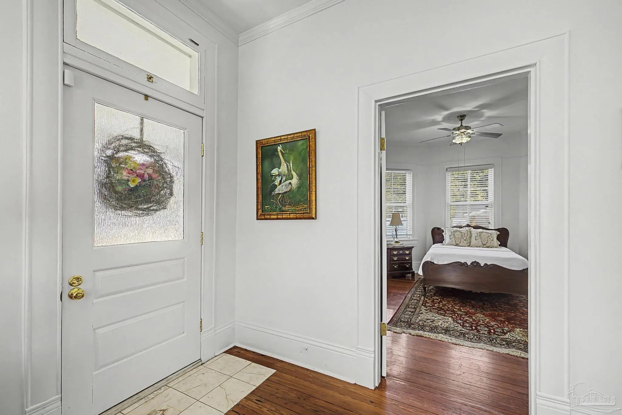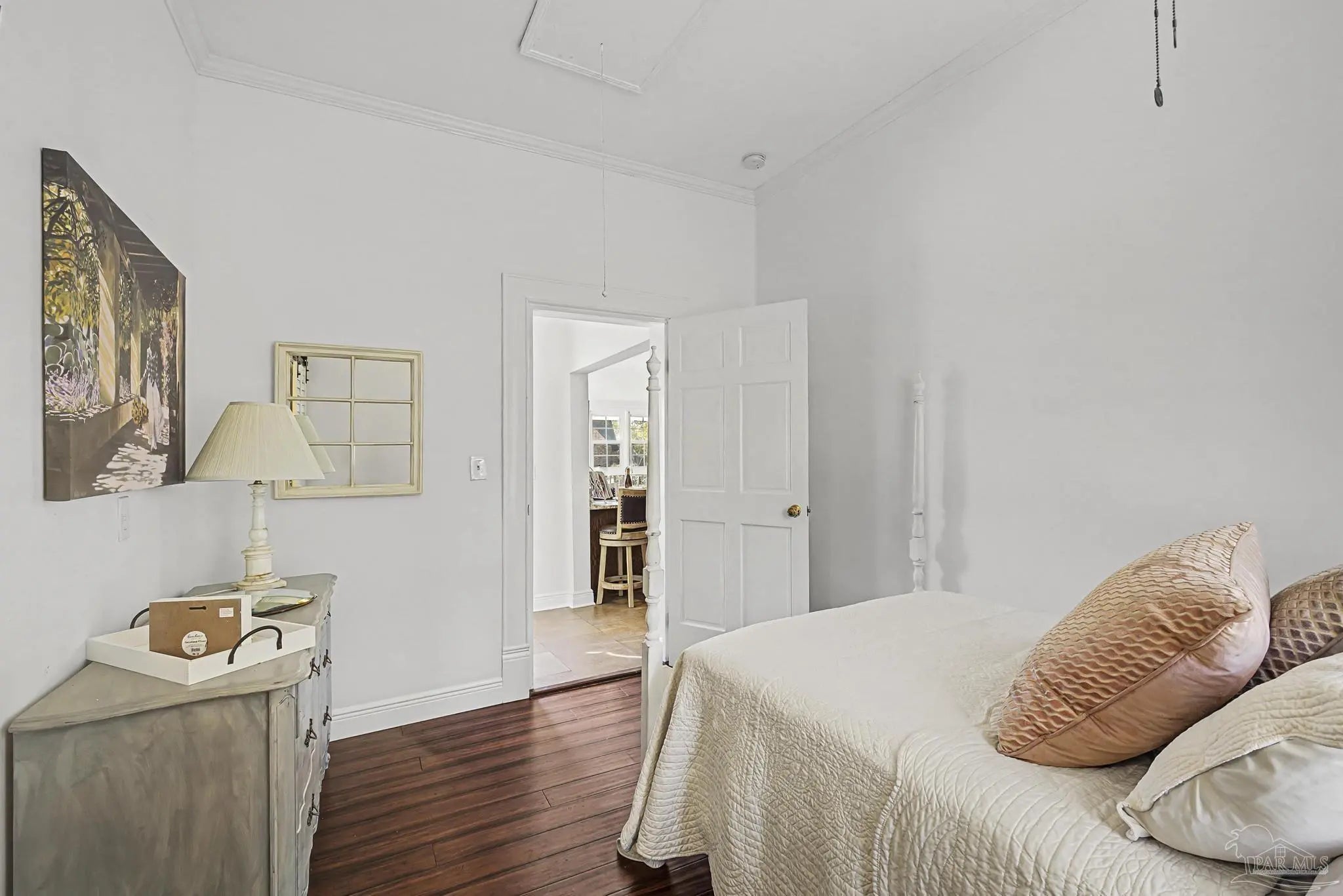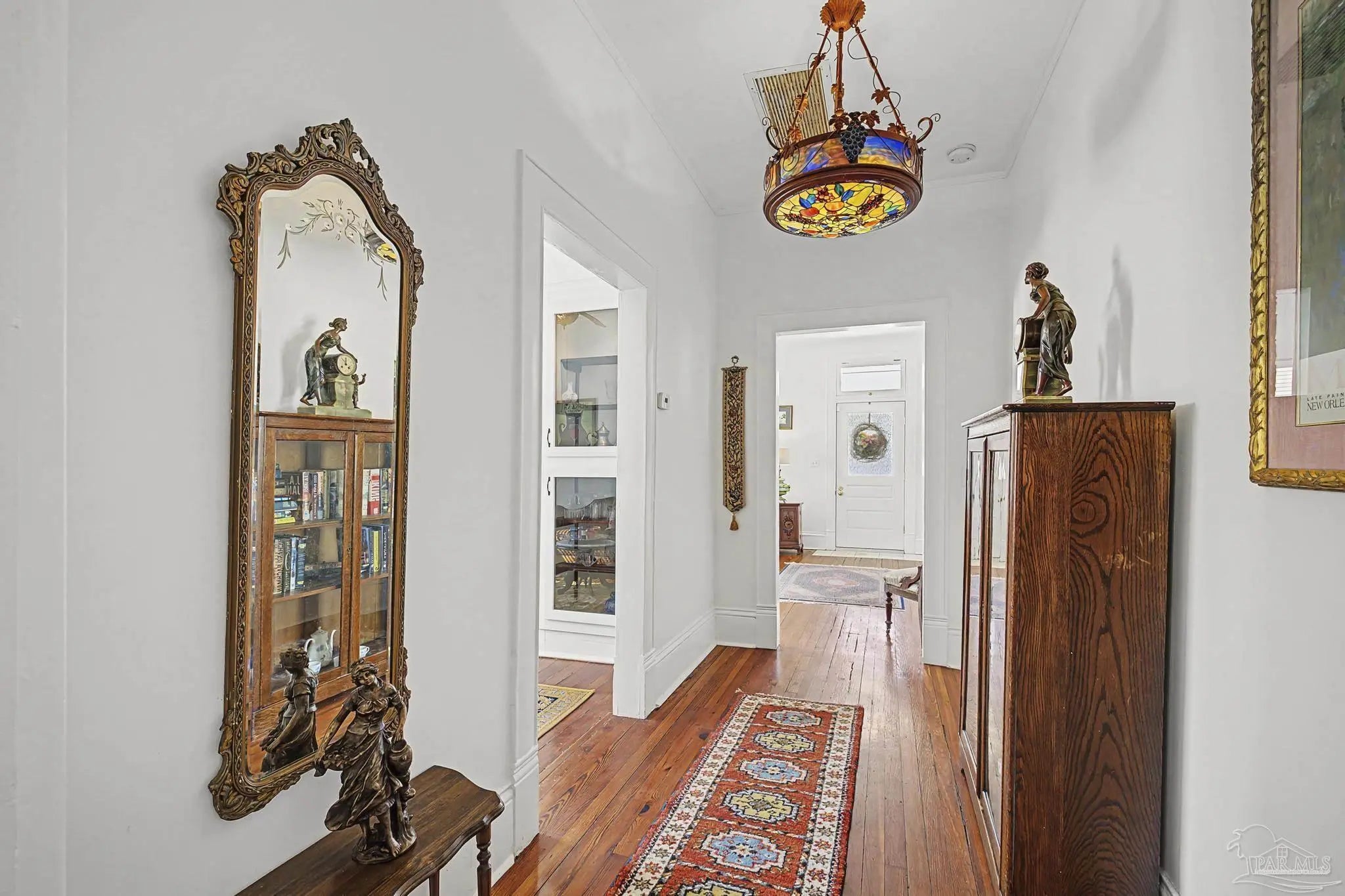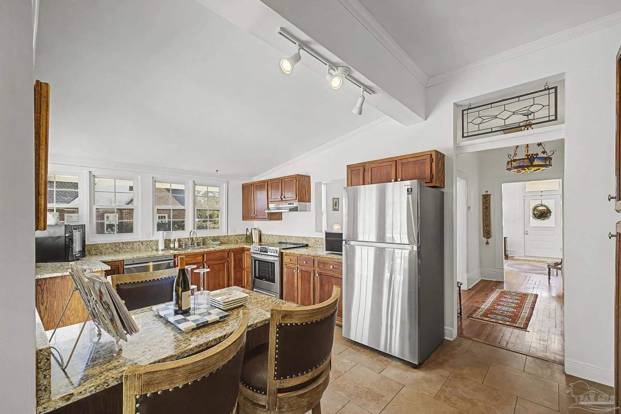 Charming North Hill Historic District Cottage! Located in the highly sought-after North Hill Historic District, this beautifully maintained home offers 3 bedrooms and 2 full bathrooms with 1,514 square feet of living space, perfectly situated on a .17-acre corner lot. Welcomed by a large front porch with classic rocking chairs and a cheerful pop of color on the front door, this home blends timeless character with thoughtful updates. Inside, you’ll find a wonderful flow throughout, highlighted by crown molding, built-in bookcases and shelving, and four ornamental fireplaces that preserve the home’s historic charm. The kitchen features granite countertops, a breakfast bar area, and updated appliances including a refrigerator, stove, dishwasher, and microwave (2024). The spacious primary bathroom includes a travertine shower with bench, while the guest bath offers a large soaking tub. Recent updates provide peace of mind, including whole-house exterior painting (2025), new gutters (2025), updated lighting and ceiling fans (2023), and washer and dryer (2025). The low-maintenance landscaping complements the attractive corner lot setting. Enjoy living in one of Pensacola’s most beloved neighborhoods, known for its strong sense of community, neighborhood events, and beautiful historic surroundings. The subdivision also offers a picnic area, playground, and tennis courts for added recreation. This is a rare opportunity to own a charming historic cottage with modern conveniences in an exceptional location!