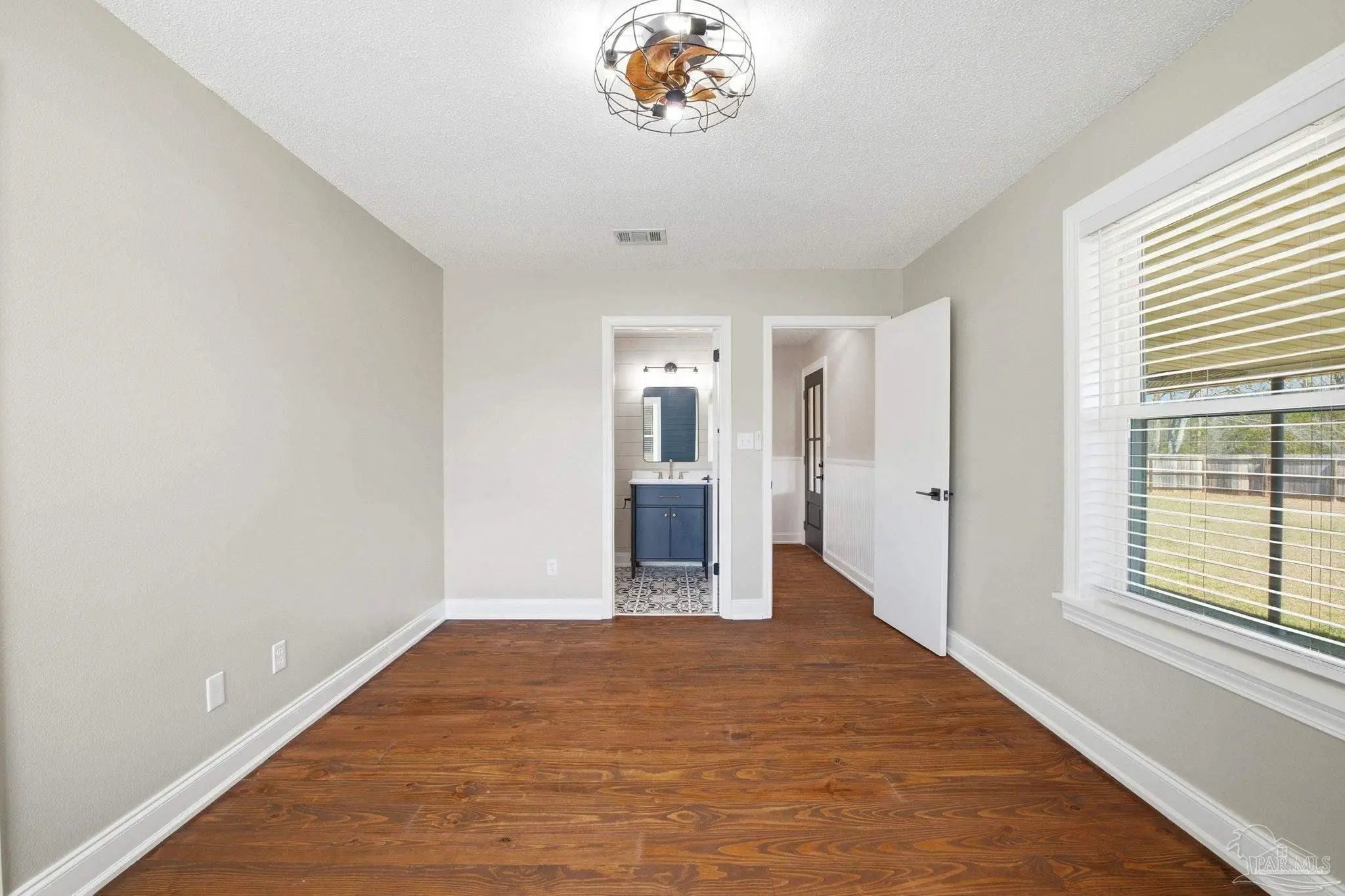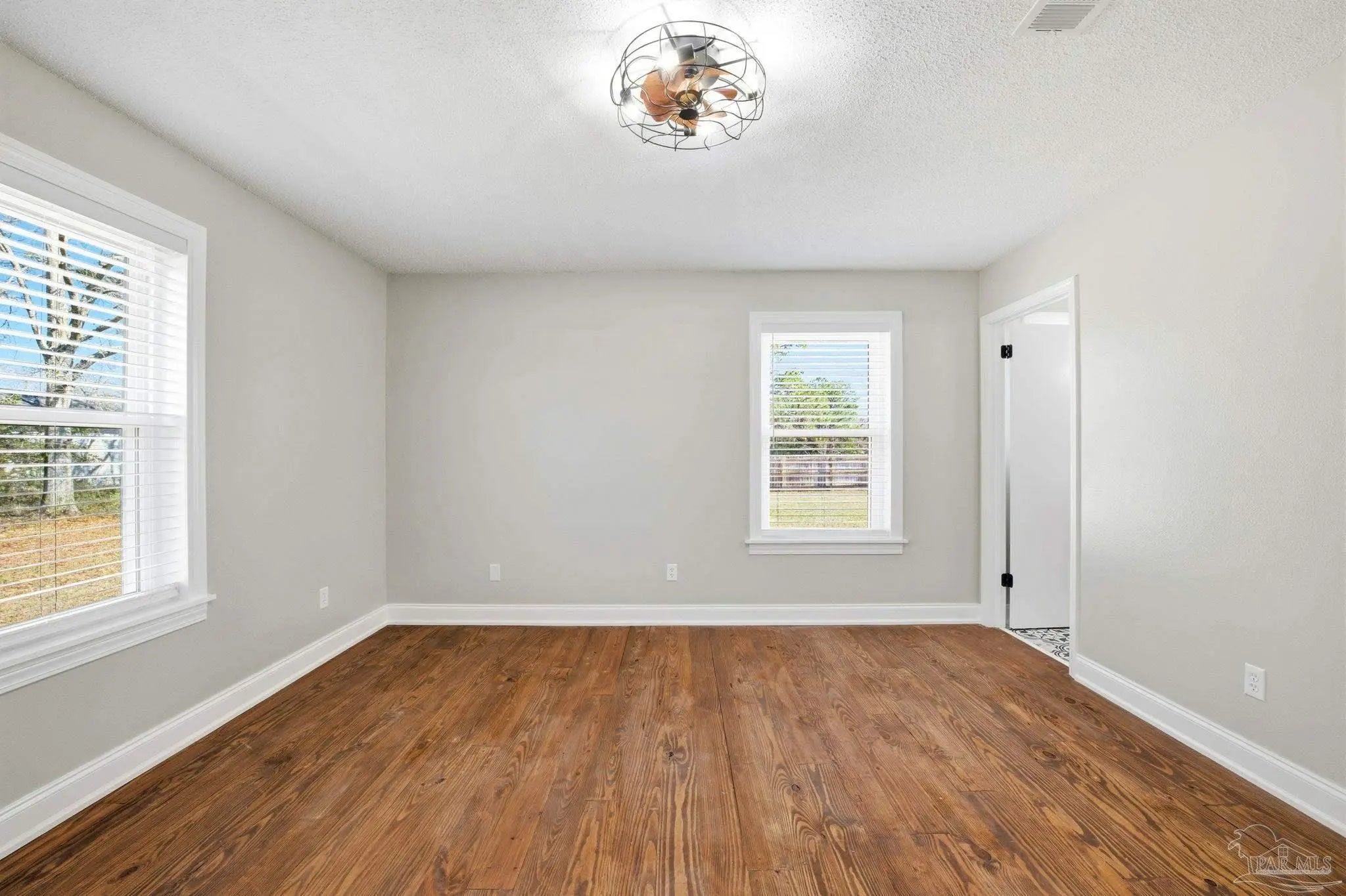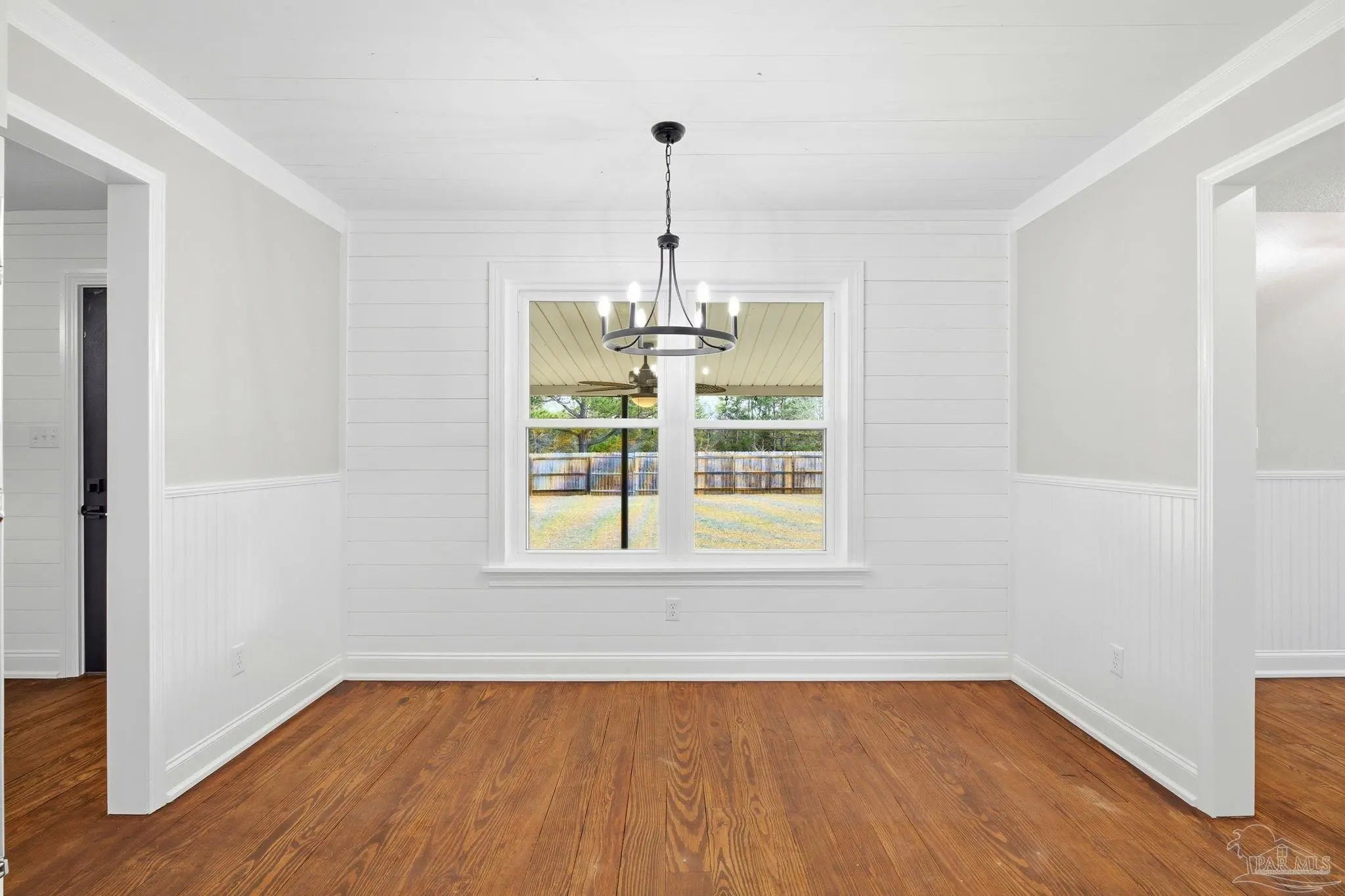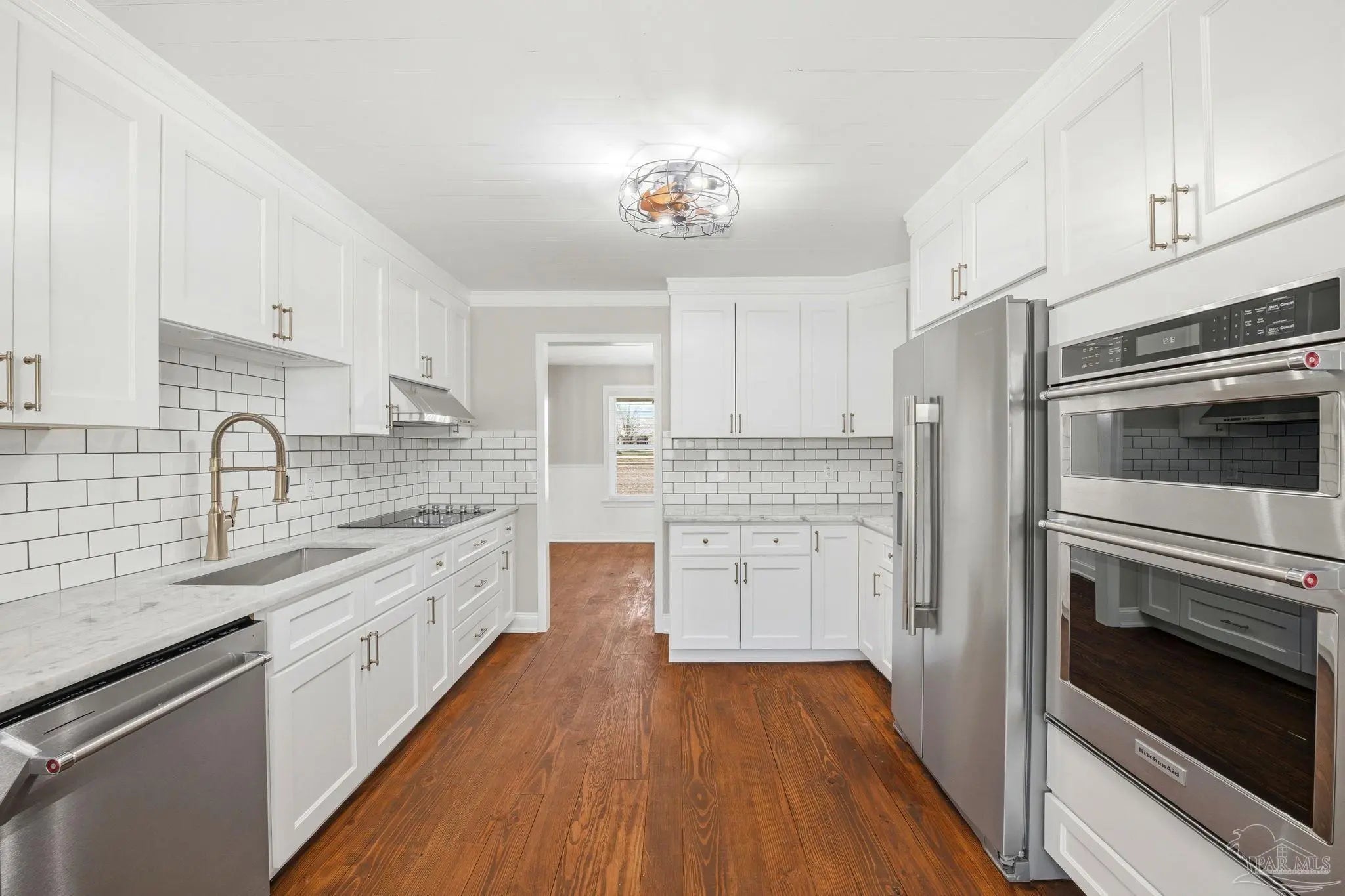 Stunning fully renovated 4BR/3BA home on 3.86 acres in Molino Meadows. Built in 1991 and updated throughout with a new roof installed October 2020, new double-hung windows (2025, with warranty), new exterior doors, new hot water heater and whole-house interior paint. Custom features include reclaimed rough sawmill-cut pine flooring, designer tile bathrooms, Fantasy White dolomite countertops, soft-close shaker cabinetry, Delta champagne bronze fixtures, custom wainscoting, built-ins, and custom wood shelving in closets. KitchenAid stainless appliance suite with combo wall oven and microwave. Floorplan includes a private mother-in-law suite, formal dining room, breakfast area, large family room with wood-burning fireplace, and a library with French doors and custom bookcases. Finished 2 car garage with trimmed windows and baseboards. Privacy fenced backyard, covered porch, and two driveway access points (front and back of the property). No HOA. Equestrian acreage. Move-in ready with premium upgrades throughout.