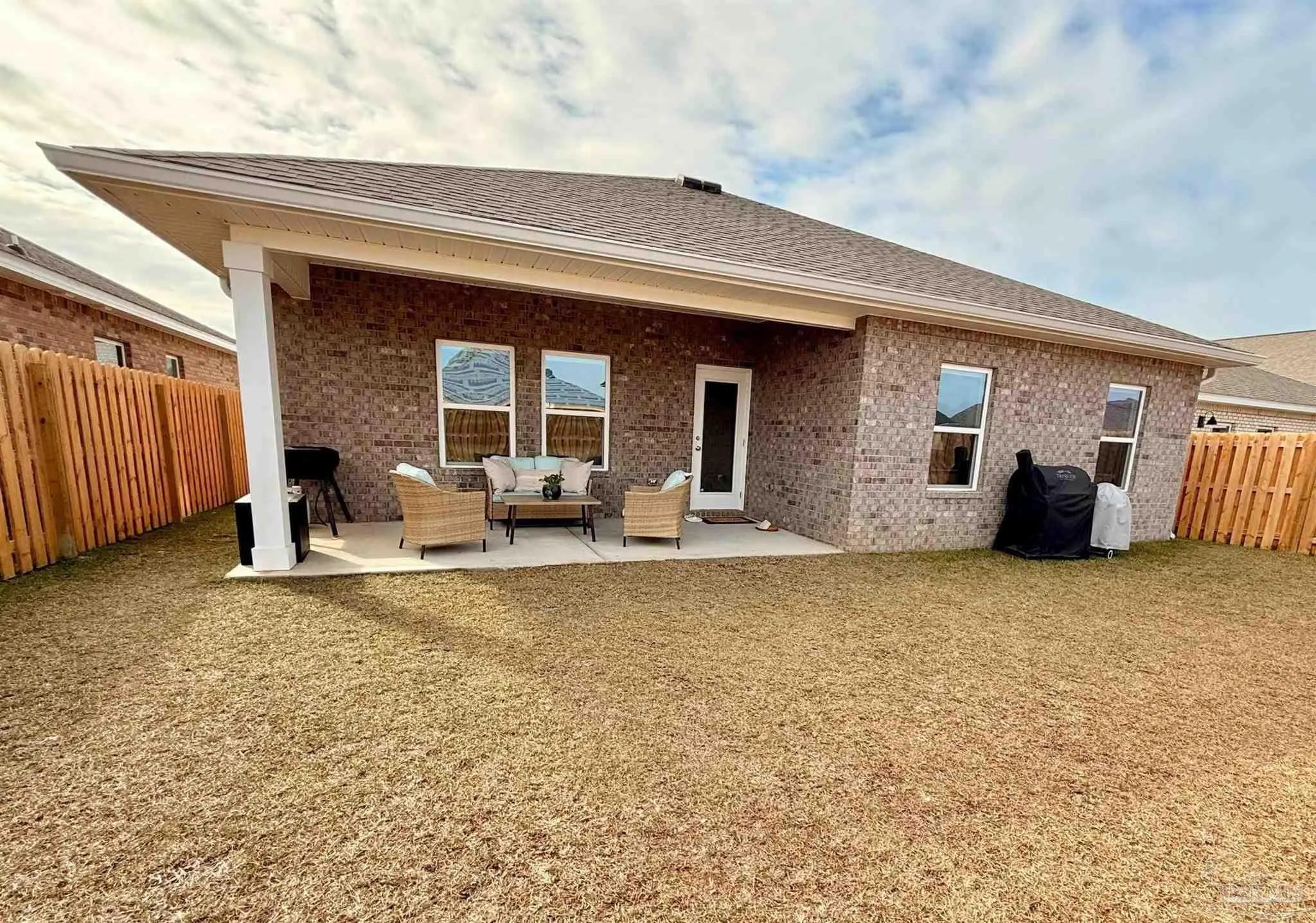 Built in May 2025, this nearly new 4-bedroom, 3-bath home offers over 2,500 sq ft of upgraded, move-in-ready living that stands apart from builder homes. Features include custom dining built-ins, designer kitchen backsplash and hardware, smart home security system, whole-home HVAC scent diffuser, premium $12,000 water softener and conditioning system, reverse osmosis drinking water system, dedicated refrigerator filtration, whole-home light-filtering cellular blinds, gutters, epoxy garage flooring, upgraded loft ceiling fan, enhanced storage, and tasteful landscaping. Enjoy a fully fenced backyard and covered patio. Community amenities include a resort-style pool with a lazy river, pickleball courts, grills, a playground, disc golf, and more.