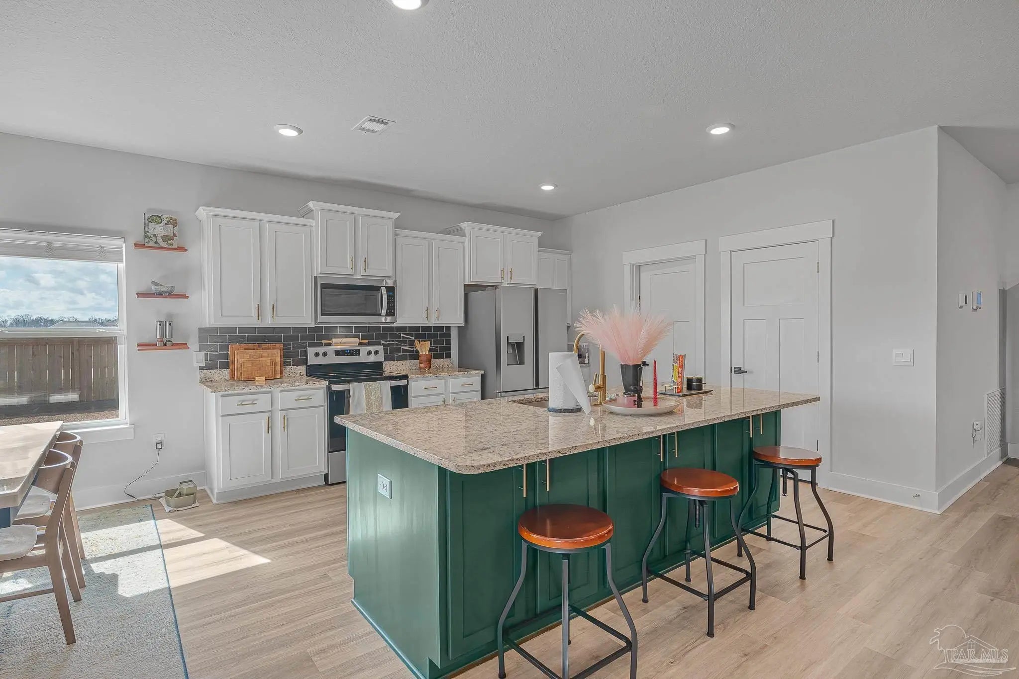 OPEN HOUSE APRIL 25TH 10- 12:30 PM SELLER OFFERING BUYER CREDIT - BUILT IN 2023 - 4 BEDROOMS - 3 BATHS - 1 ACRE CORNER LOT - SADDLEBROOK ESTATES - THREE CAR GARAGE - PRIVACY FENCED BACKYARD Searching for a newer home in Pace, FL with land? This home in Saddlebrook Estates offers the space, layout, and location buyers are looking for in Santa Rosa County. Positioned on a rare 1-acre corner lot, this move-in ready home provides privacy, functionality, and modern design in one of the most desirable areas near Pensacola, Florida. Inside, the OPEN CONCEPT FLOOR PLAN creates a bright, connected living space where the living room, dining area, and kitchen come together seamlessly ideal for both entertaining and everyday living. The KITCHEN features granite countertops, a large breakfast bar, and ample cabinet space, making it a central hub for gatherings and daily use. The PRIMARY SUITE offers a private retreat with a double vanity, garden tub, separate shower, and a spacious walk-in closet. With three additional bedrooms and two full bathrooms, this home offers flexibility for guests, a home office, or multi-generational living—perfect for buyers searching for a 4-bedroom home in Pace FL. Step outside to a FULLY FENCED BACKYARD with room for pets, outdoor activities, or future additions. The COVERED PATIO extends your living space outdoors, while the THREE CAR GARAGE provides extra storage and parking. Located in Pace, Florida, this home is convenient to top-rated Santa Rosa County schools, shopping, dining, parks, and offers an easy commute to Pensacola, NAS Whiting Field, and NAS Pensacola—making it ideal for military relocation buyers and commuters. If you're looking for a home with acreage near Pensacola, a newer construction home in Pace FL, or a move-in ready property with space to grow, this one checks all the boxes. Buyer credit available adds even more value.