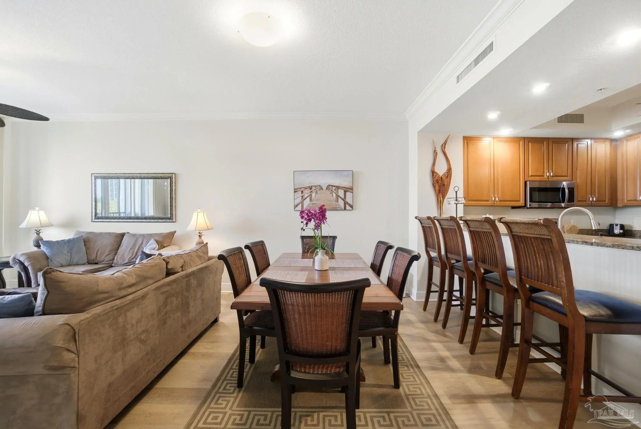 Experience coastal luxury in this beautifully appointed San Andres 2-bedroom, 2-bath residence with a versatile bonus room (without a closet) located in the highly sought-after gated community of Lost Key Golf and Beach Club. This exceptional unit offers some of the most breathtaking sunset views among the Lost Key towers, with Site 18 providing access to outstanding amenities. Designed with entertaining in mind, the residence features a spacious open floor plan with a large living room, dining area, and well-appointed kitchen. The kitchen showcases granite countertops, stainless steel appliances, and ample workspace for both everyday living and hosting guests. The main suite offers a generous bedroom with stunning views of the water and golf course. The luxurious ensuite bath features double vanities, a large stand-up tile shower, an oversized closet, and a relaxing garden tub. Step outside to the screened balcony to enjoy sweeping views across the golf course to the beautiful Intracoastal Waterway. Numerous updates include a water heater replaced in 2025, HVAC system replaced in 2021, newly rescreened balcony in 2025, and a new dehumidifier. Residents enjoy exclusive access to the private Lost Key Beach Club, with convenient shuttle service available and beach access just minutes away. The property also includes a dedicated parking space directly in front of the building and a spacious storage locker. The building allows seven-day minimum rentals, offering excellent investment potential or flexible personal use. This is a rare opportunity to enjoy resort-style living, exceptional amenities, and spectacular views in one of the area’s premier coastal communities. Make this spectacular property yours today!