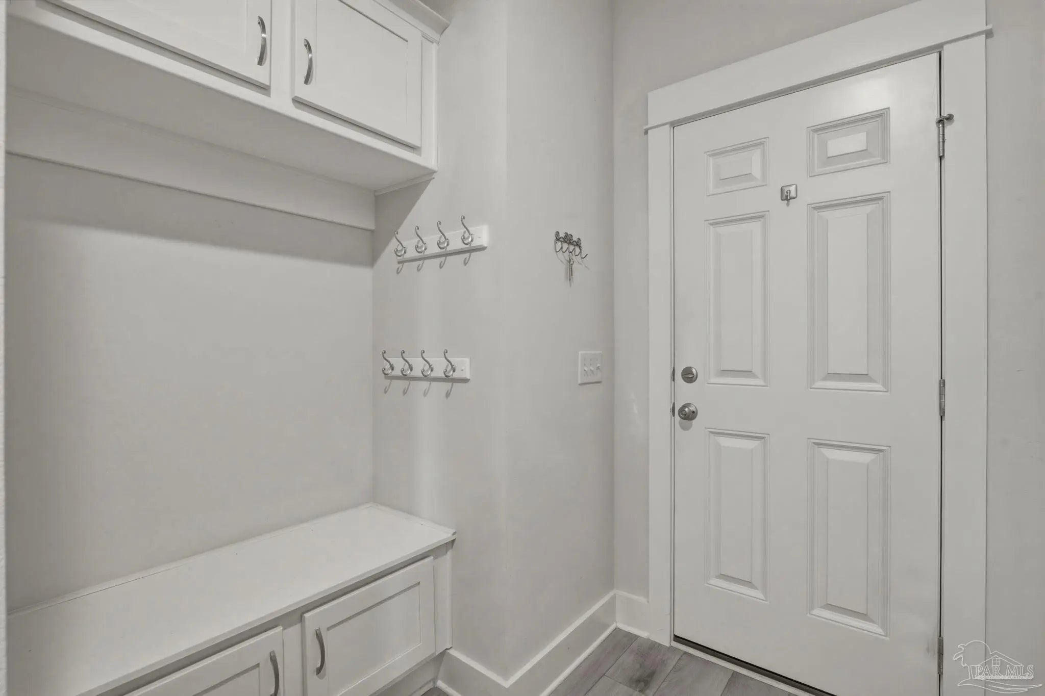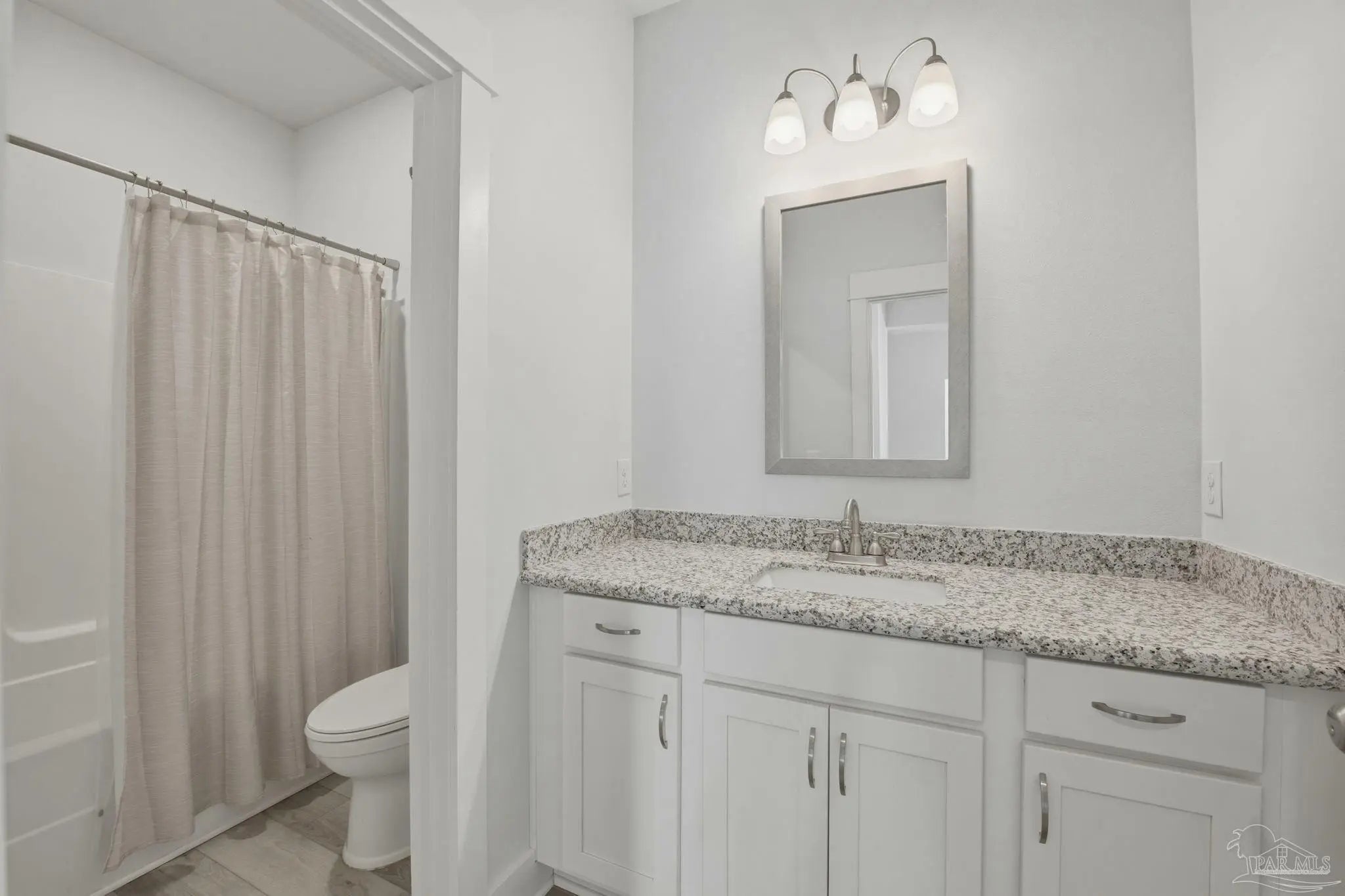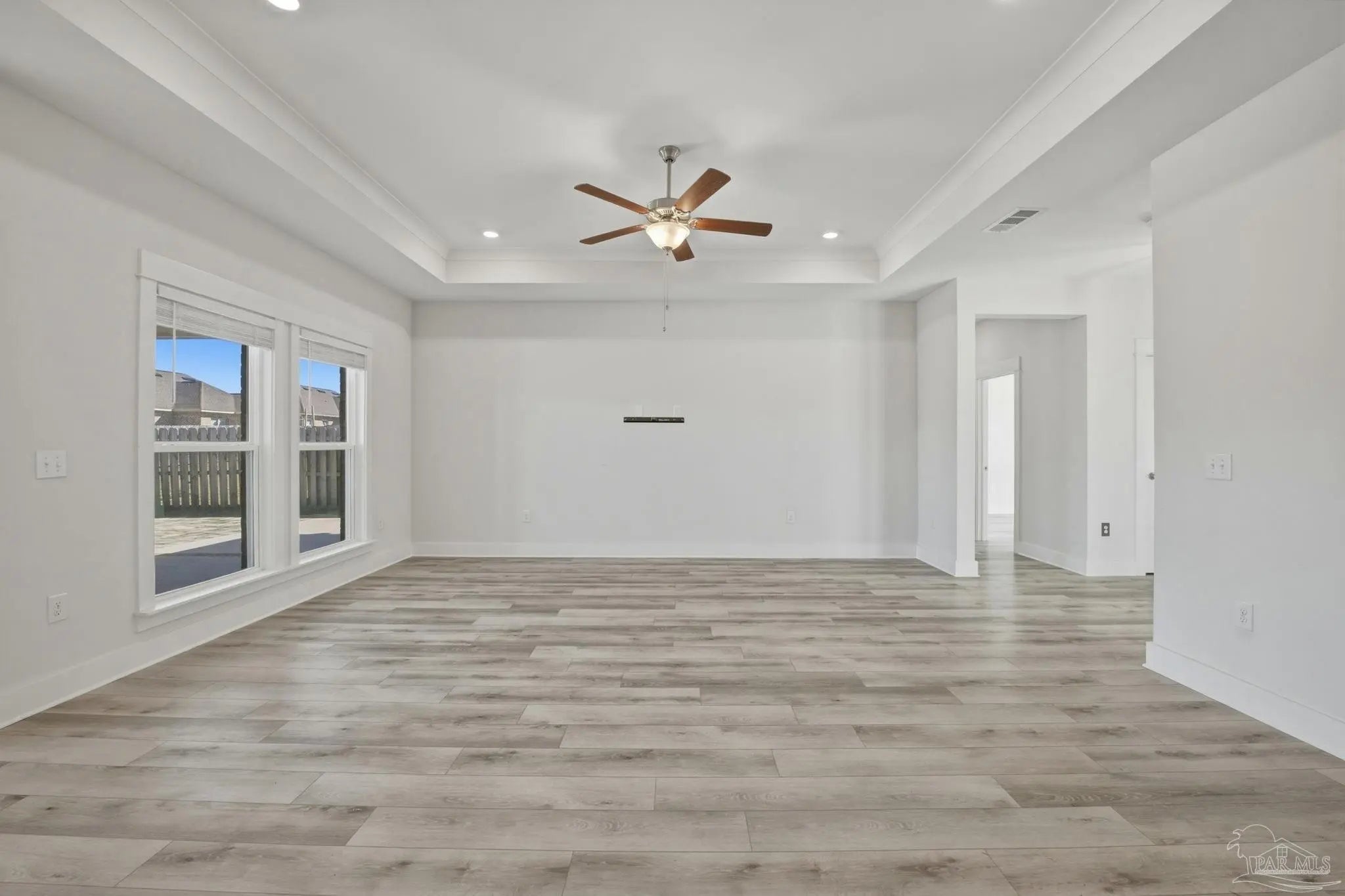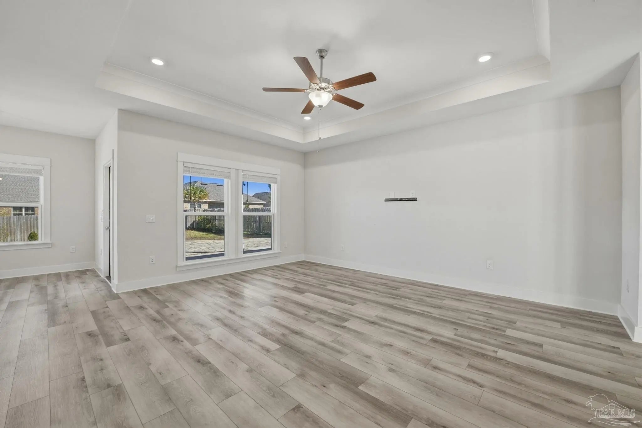 Built in 2021 and thoughtfully elevated beyond standard builds, this 3-bed/2.5-bath Craftsman-style home delivers the advantages of newer construction with a long list of premium upgrades. Offering a smart, split floor plan, the layout provides separation between the primary and secondary bedrooms while maintaining an open living space designed for everyday functionality and entertaining. The kitchen anchors the home with a 7-foot granite island, shaker cabinetry, stainless steel appliances, gas range, built-in microwave, disposal, generous pantry, LED lighting, and bar seating that flows seamlessly into the dining and living areas. Tray ceilings in both the family room and primary suite add architectural interest, while plenty of rear windows overlook the covered patio and paver extension, creating a natural transition to a backyard designed for outdoor gatherings. The well-appointed primary suite includes a custom floor-to-ceiling tiled shower and a layout that prioritizes comfort and privacy. A flex room off the foyer offers versatility for a home office, fitness area, library, media room, or play space. Luxury laminate plank flooring extends through the main living areas, complemented by maintenance-free vinyl trim and brick accents that enhance exterior appeal. Upgrades include: a whole-home Generac generator for uninterrupted power, tankless water heater, epoxy-coated garage flooring, and custom mudroom with bench and cubbies. The covered patio features brick detailing and overlooks a spacious yard ideal for pets, recreation, or future additions. Located in Bentley Oaks, residents enjoy sidewalks, a community park with basketball/pickleball courts, golf cart-friendly streets, biking paths, and regular neighborhood events such as food trucks. With convenient access to I-10, Navy Federal Credit Union campus, and area beaches, this property is an outstanding example of newer construction enhanced with intentional upgrades that truly sets it apart from the crowd.