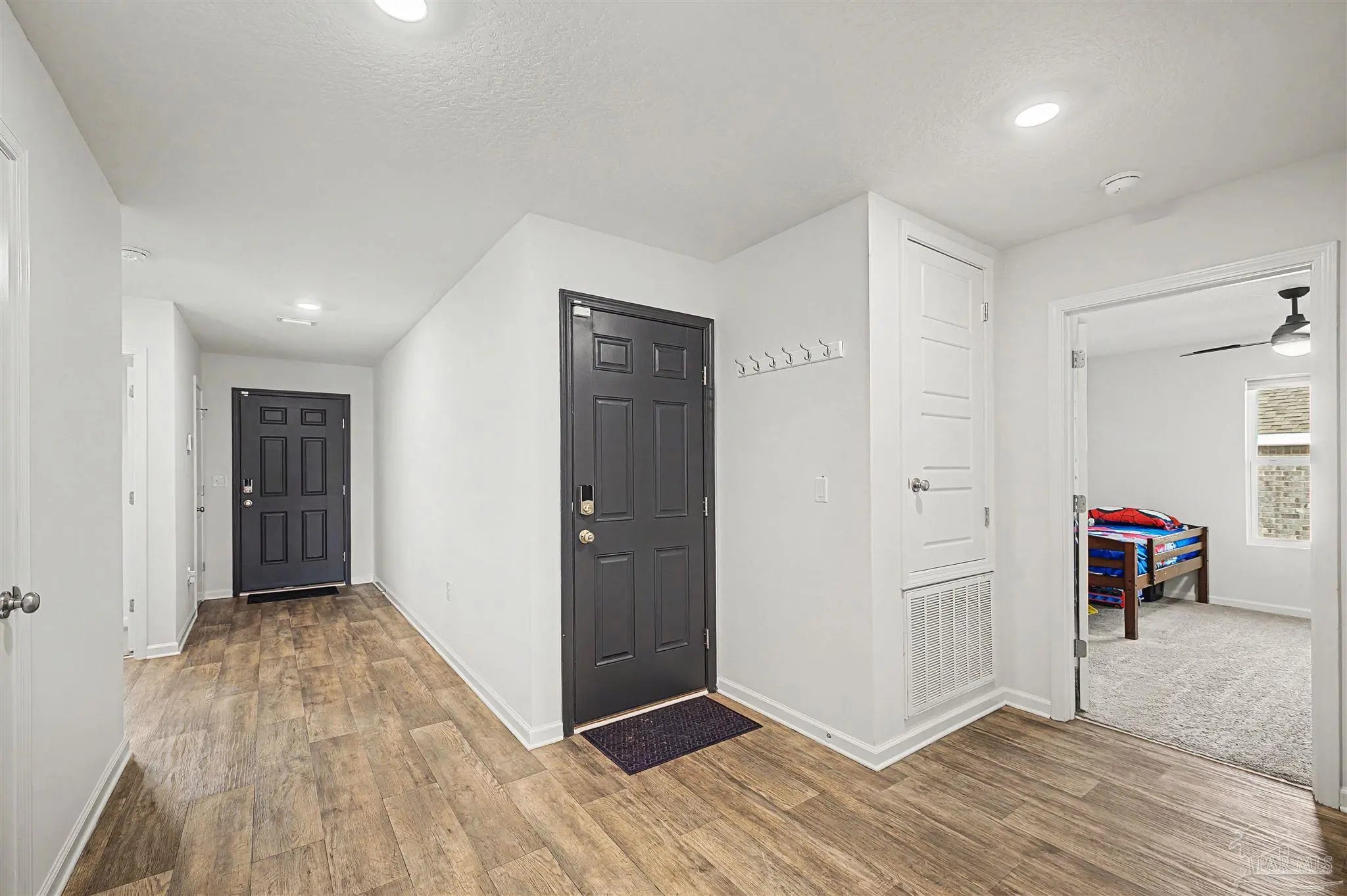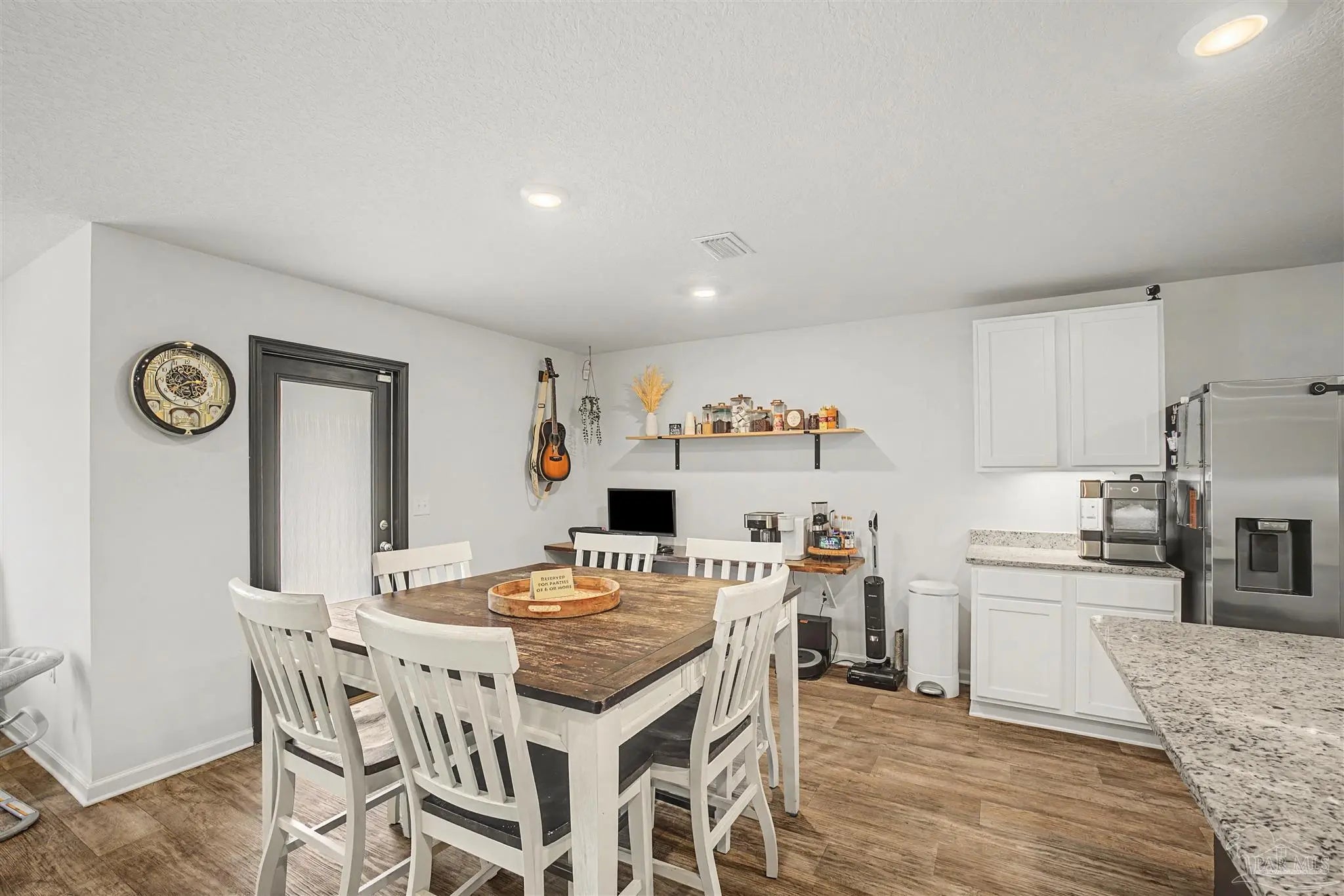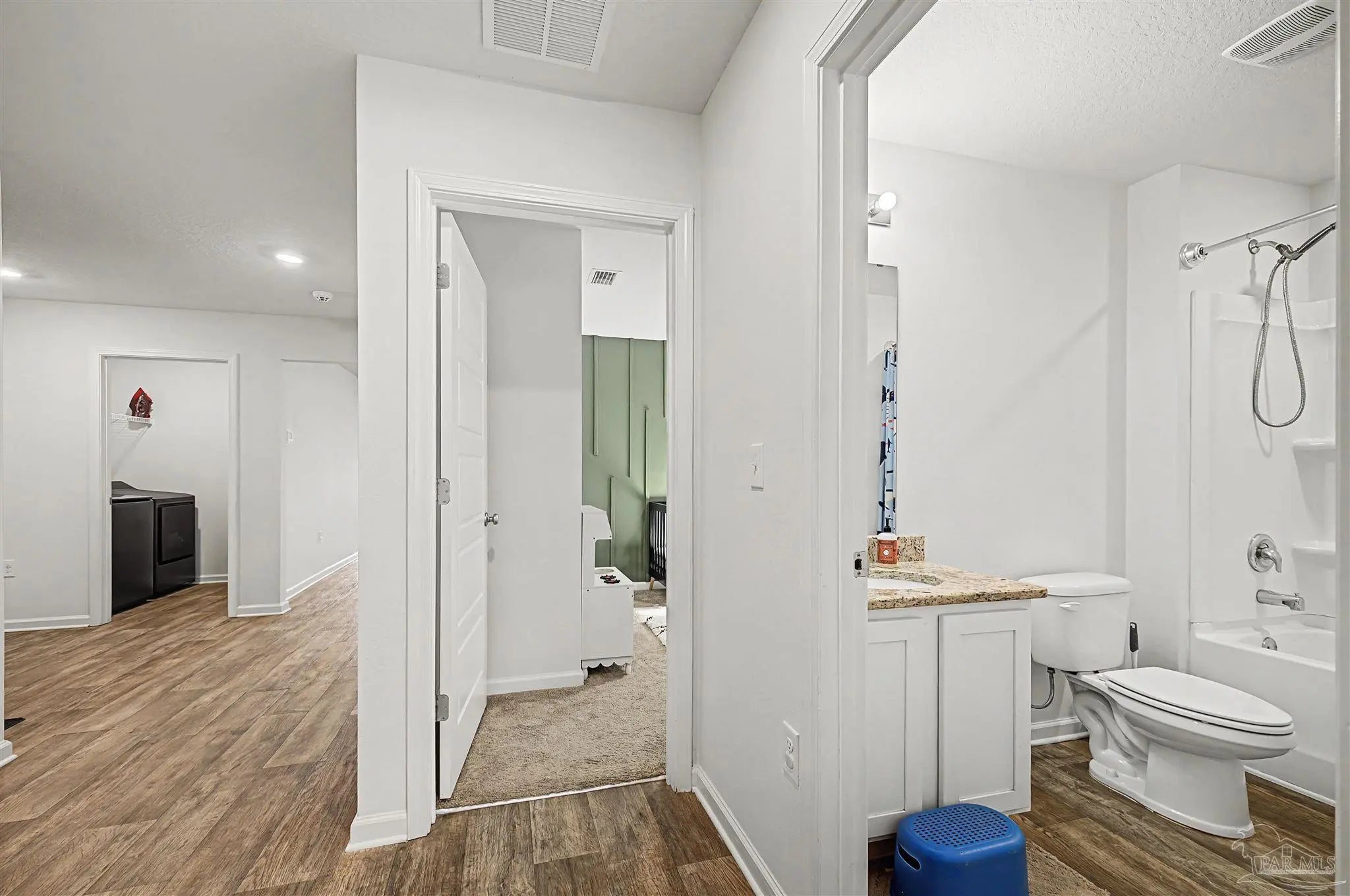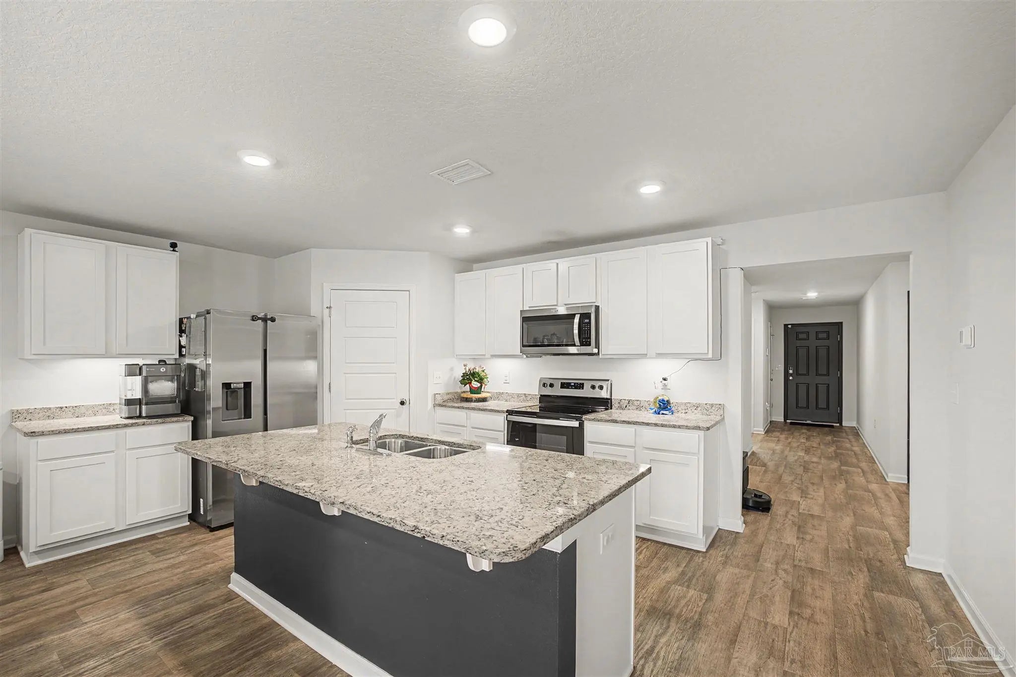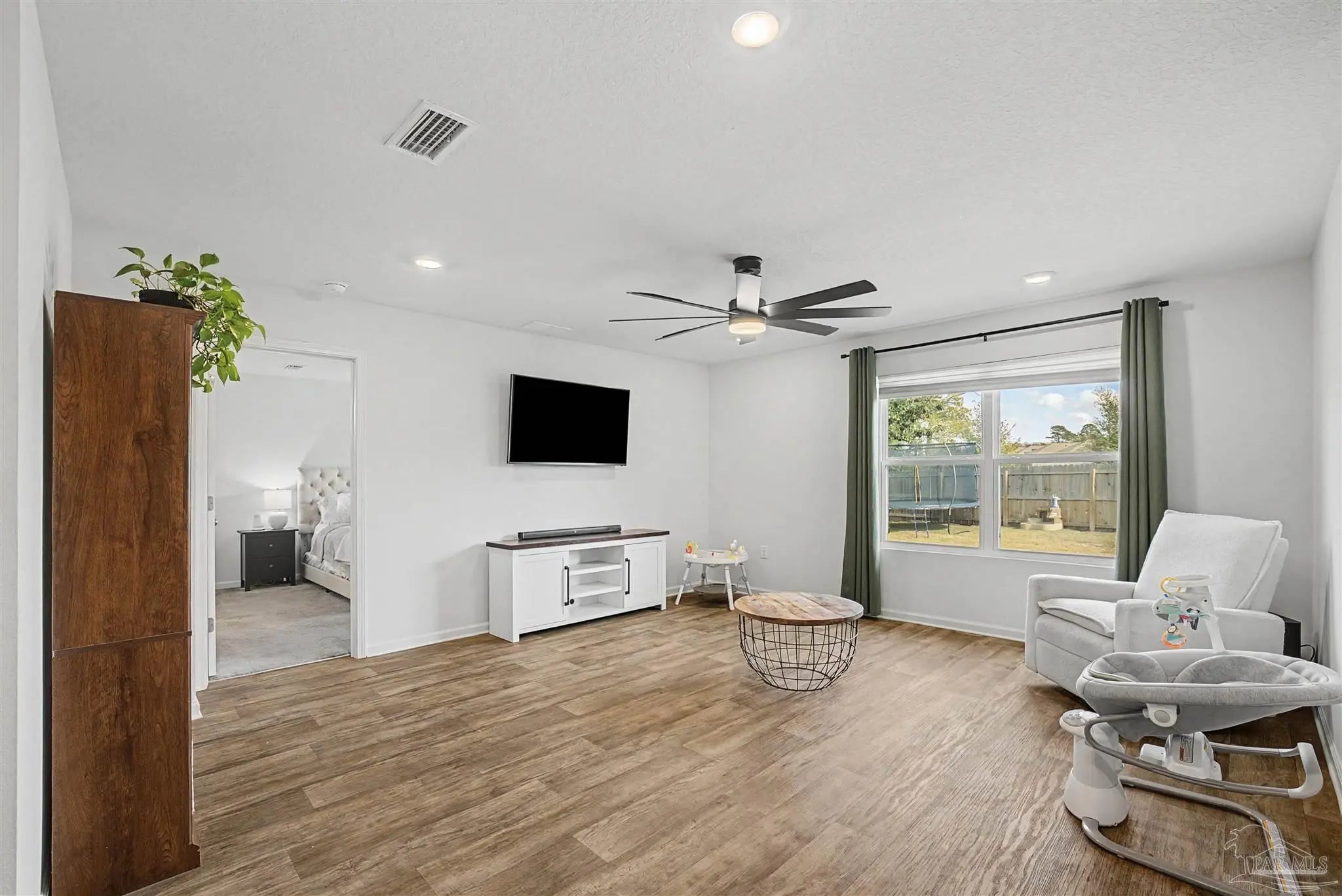 Welcome to Lakeshore Preserve! This refreshed, move-in-ready 4-bed, 2-bath brick home shines with fresh interior paint and a soft-washed exterior. Enjoy an open-concept layout with luxury vinyl plank flooring in main areas and carpet in bedrooms. The spacious kitchen/dining combo features white shaker cabinets, granite countertops, under-cabinet lighting, a large island, walk-in pantry, and stainless steel appliances. The generous living room flows seamlessly. The private primary suite includes a big walk-in closet and luxurious bath with dual granite vanities, separate water closet, and stand-up shower. Two additional bedrooms share a full guest bath, with the third near the laundry room. The fenced backyard offers ample space for entertaining, play, or a future pool, plus an 8’x7.5’ storage shed. The two-car garage has fresh paint, 12’ ceilings, and 3/4” decked attic storage. Steps away: direct lake access to a maintained lake and fishing dock. Neighborhood perks include a dog park, nearby parks, equestrian center, shopping, and dining. Easy commute—7 min to Navy Federal campus (with rec center), ~25 min to Pensacola Beach, 30 min to NAS Pensacola. Comfort, convenience, and community await—make this gem yours today!