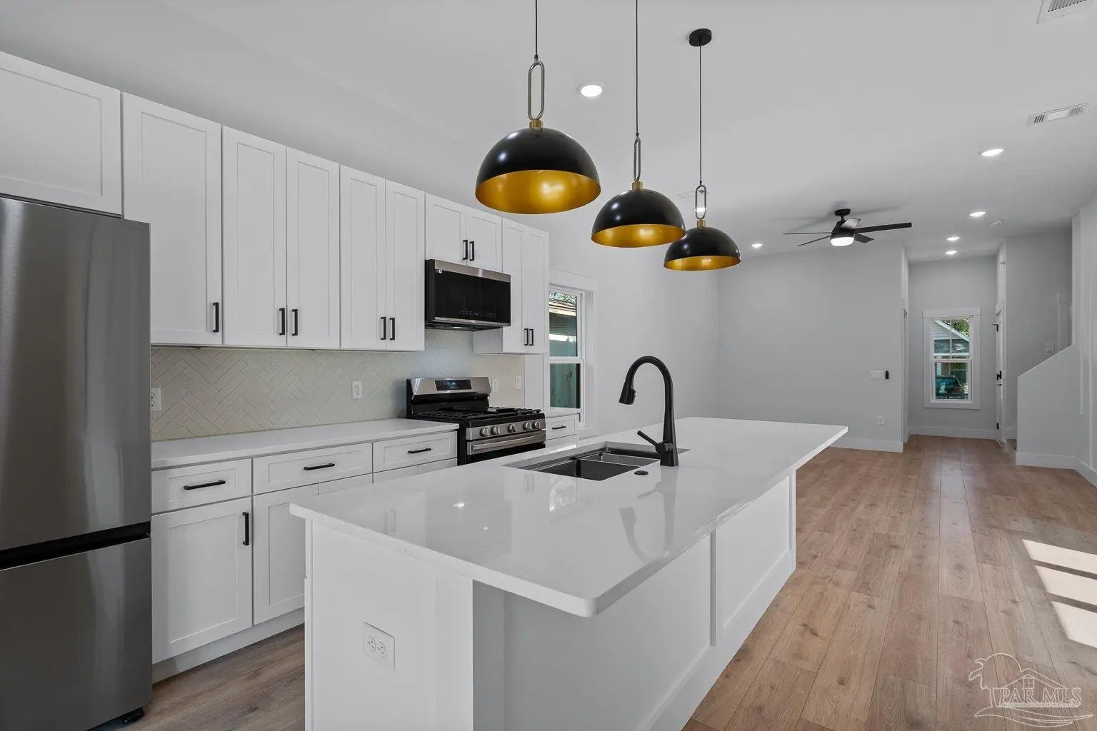 Experience modern living in this brand-new construction home thoughtfully designed with both style and functionality in mind. This beautiful residence features 3 bedrooms and 2.5 bathrooms, along with a dedicated office/study on the main level, offering the perfect blend of comfort and contemporary finishes throughout. The main level boasts impressive 10-foot ceilings, enhancing the home’s open and airy feel. The kitchen serves as the heart of the home, showcasing stainless steel appliances, a gas range, tankless gas water heater, and a stylish herringbone backsplash that adds texture and visual appeal. Durable waterproof plank flooring flows seamlessly throughout, creating a cohesive and low-maintenance living space. Enjoy spa-inspired bathrooms featuring tiled showers, elegant Delta plumbing fixtures, and upgraded vanity lighting that enhance both form and function. Designer accent walls add warmth and character, while the front door keypad entry provides modern convenience and security. Tankless gas water heater. Outside, the property includes a fully irrigated yard, making lawn care simple and efficient. Home offers more storage capacity under the staircase which can be accessed from the exterior side of the home. This newly built home combines quality craftsmanship with today’s most desirable finishes. Move-in ready and designed for effortless living.