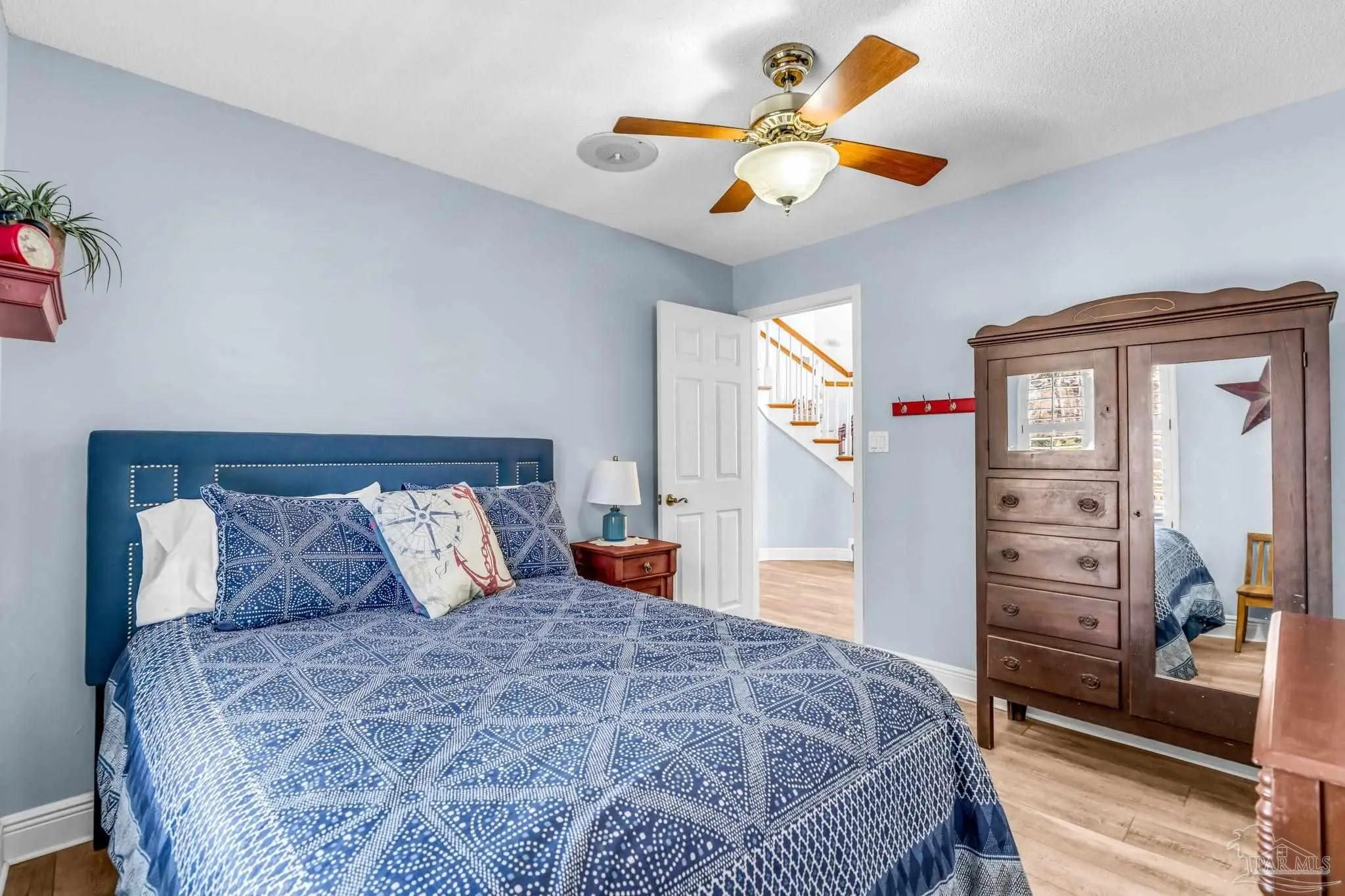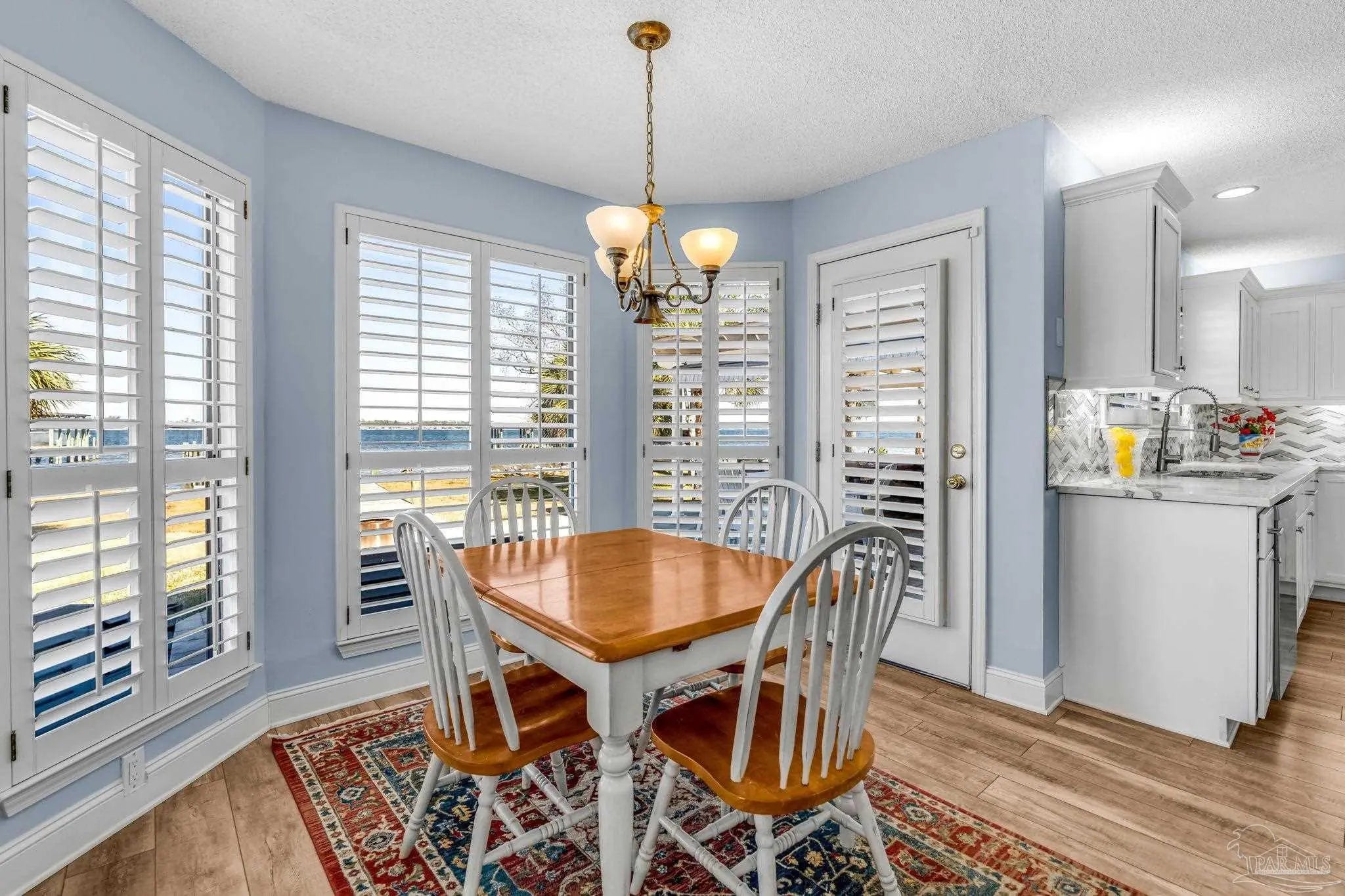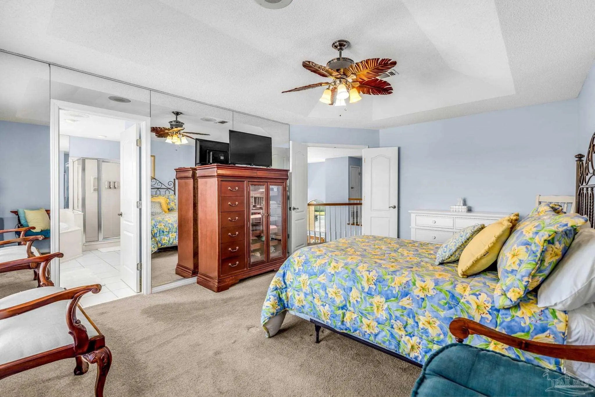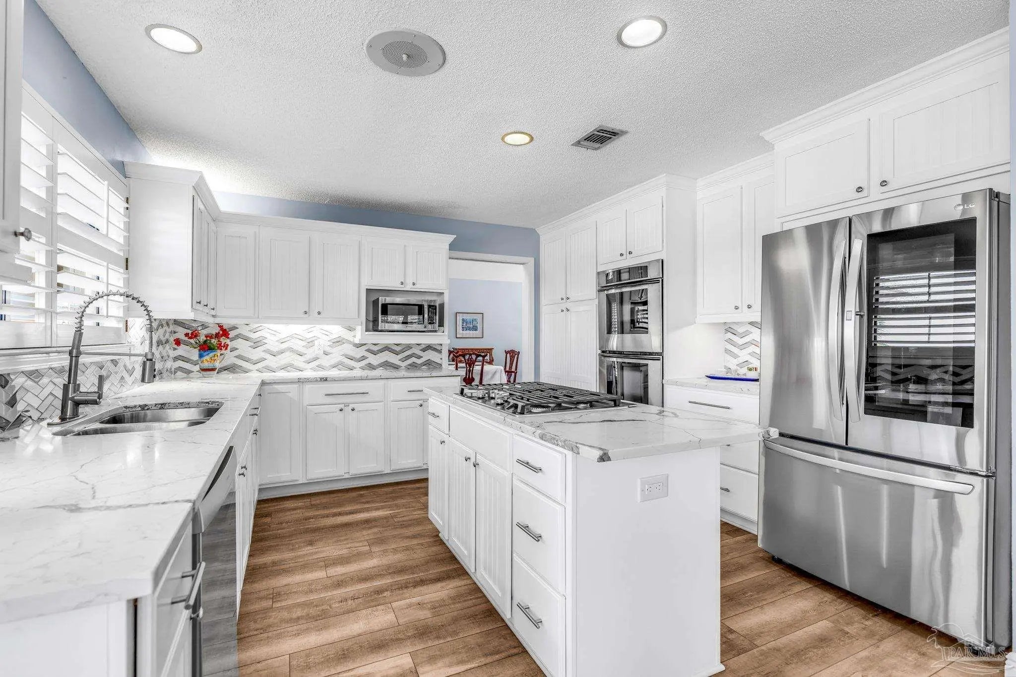 Wake up to wide-open water views and effortless coastal living in this beautifully waterfront home on Perdido Bay. Designed with entertaining in mind, this 4-bedroom, 3-bath residence blends refined interior finishes with resort-style outdoor spaces for a lifestyle that truly embraces the bay. This home has a formal living room and dining room, along with a warm, inviting family room centered around a remote-controlled ventless gas fireplace. The kitchen stands out with crisp quartz countertops, a sleek glass backsplash, and shaker cabinetry with pull-out storage, paired with premium appliances including Thermador double ovens, a Viking gas cooktop, and an LG refrigerator—ideal for both everyday meals and special occasions. The interior showcases luxury vinyl plank flooring installed in 2021, classic plantation shutters, and sweeping curved staircase. Outside, the home transforms into a private waterfront escape. A covered outdoor kitchen features a Big Green Egg, Jenn-Air grill, refrigerator, sink, poured concrete bar, and a remote-controlled powered sunshade—creating a comfortable setting for year-round gatherings. The private dock and covered boathouse offer lift, power, and water, providing direct access to the bay and unforgettable sunset views. Set on approximately 0.38 acres, the property also includes a metal roof installed in 2021, refreshed stucco in 2020, and an irrigation system to maintain the lush coastal landscaping.