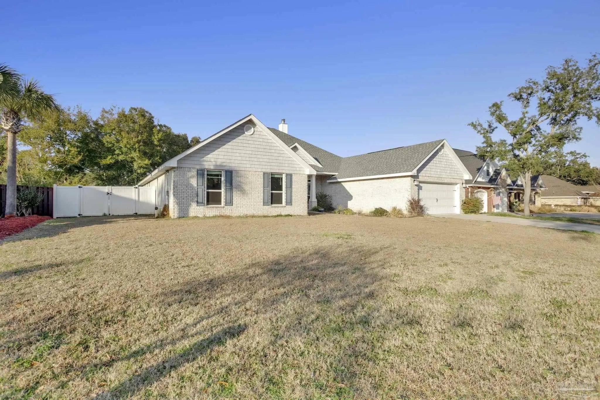 The wait is over! Welcome to the home you’ve been searching for in the highly desirable Holley by the Sea neighborhood, and yes, it’s all-brick! From the moment you arrive, you’ll notice the inviting front entrance and spacious two-car garage. Step inside the foyer and you’re greeted with a formal dining room to the right and a private office to the left, ideal for working from home or creating your own flex space. The living room features high ceilings and a cozy fireplace, making it the perfect place to relax and unwind. The kitchen checks all the boxes: white cabinetry, granite countertops, stainless steel appliances, a center island, a breakfast nook, a pantry, and ample storage. Just off the kitchen, you’ll find the laundry room with convenient access to the garage. The primary suite offers generous space for a king-sized bed and features LVP flooring. The ensuite bath is a retreat, featuring a tiled walk-in shower, a soaking tub, double granite vanities, and a private water closet. Three additional bedrooms share a full bath, complete with granite countertops and a tub/shower combination. Out back, the screened patio allows you to enjoy Florida living year-round. The spacious backyard is ready for memory-making plenty of room to entertain, relax, and roast marshmallows with your favorite people. This home is ready for you to make it your own!