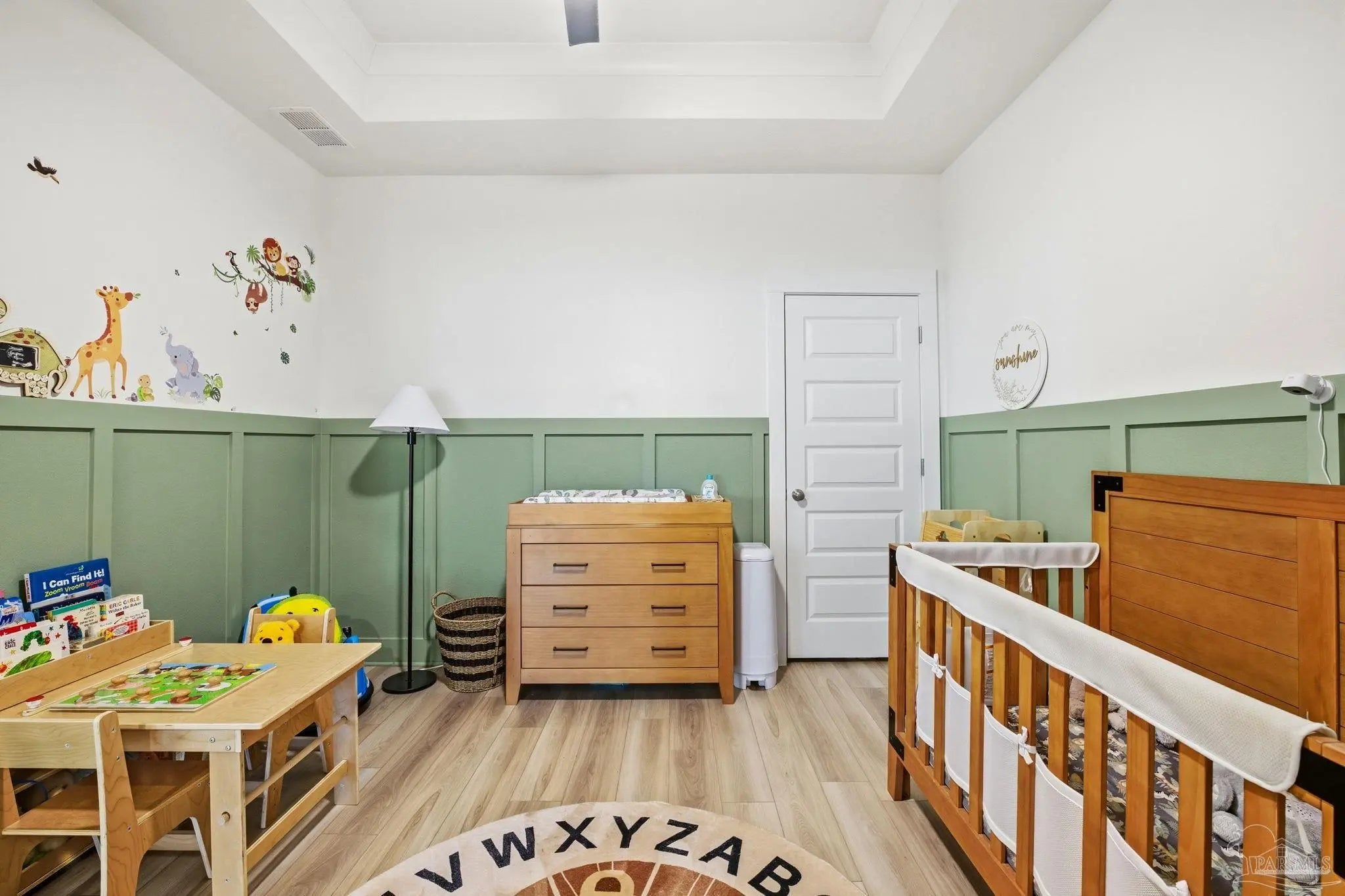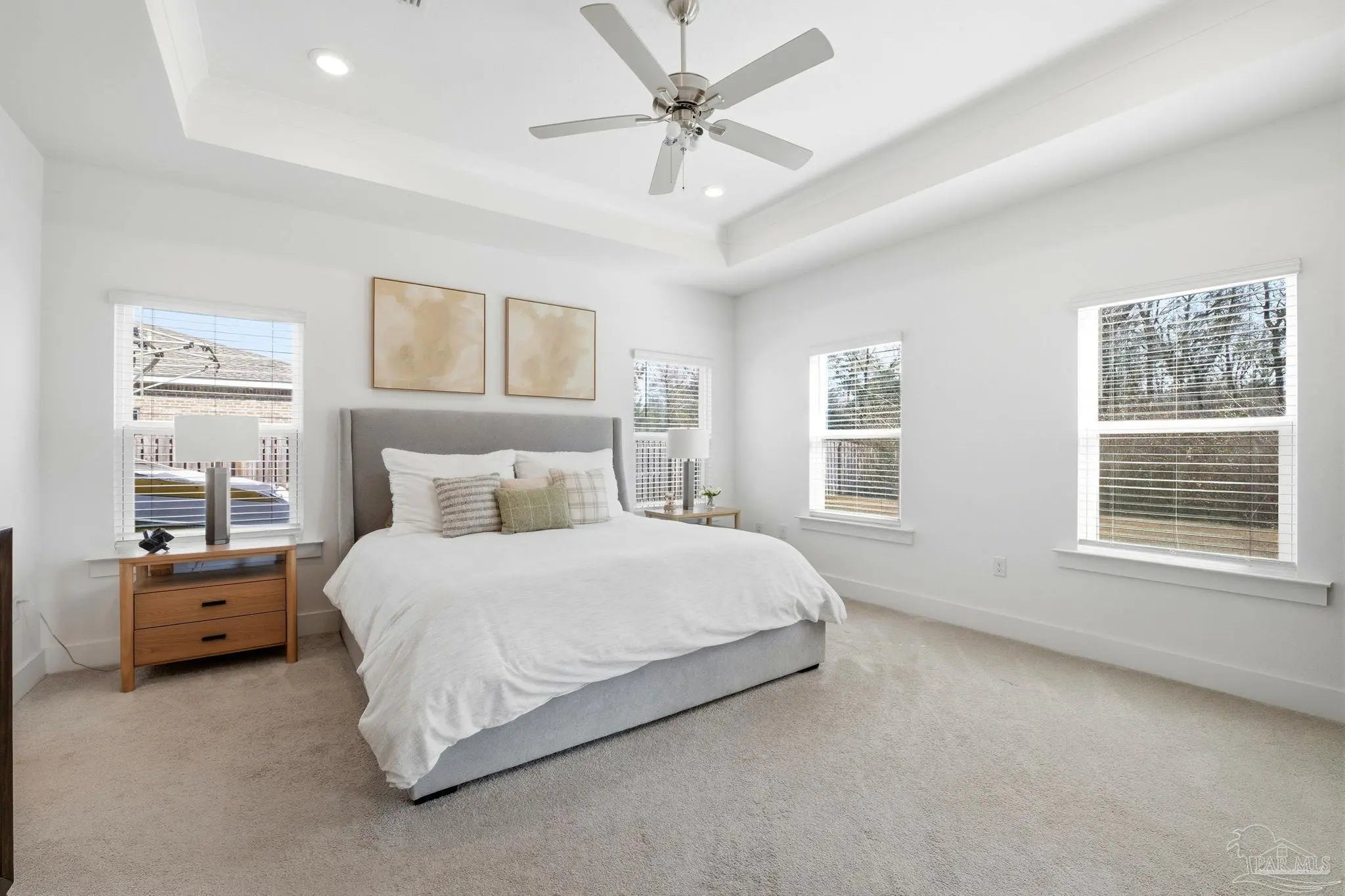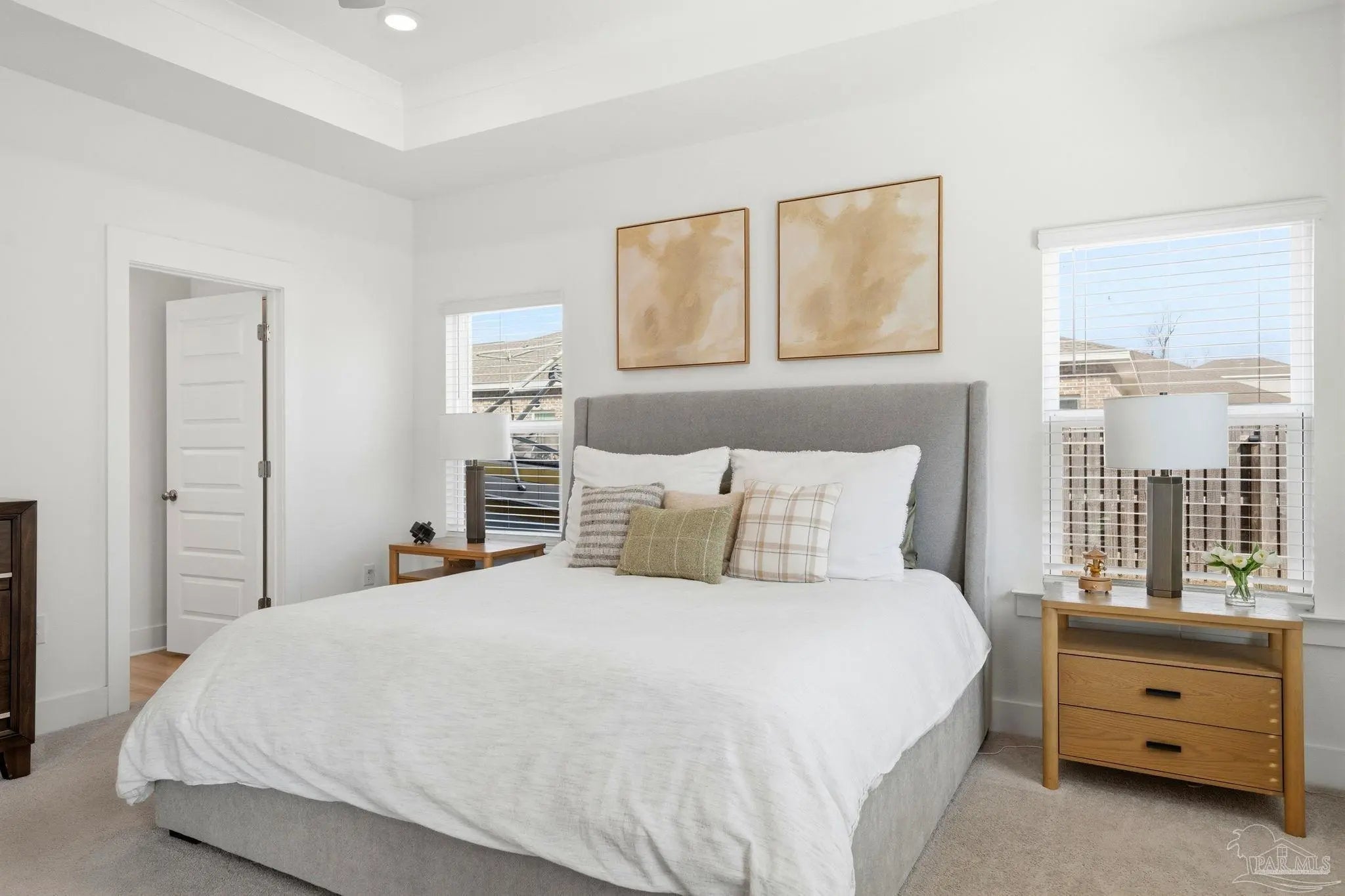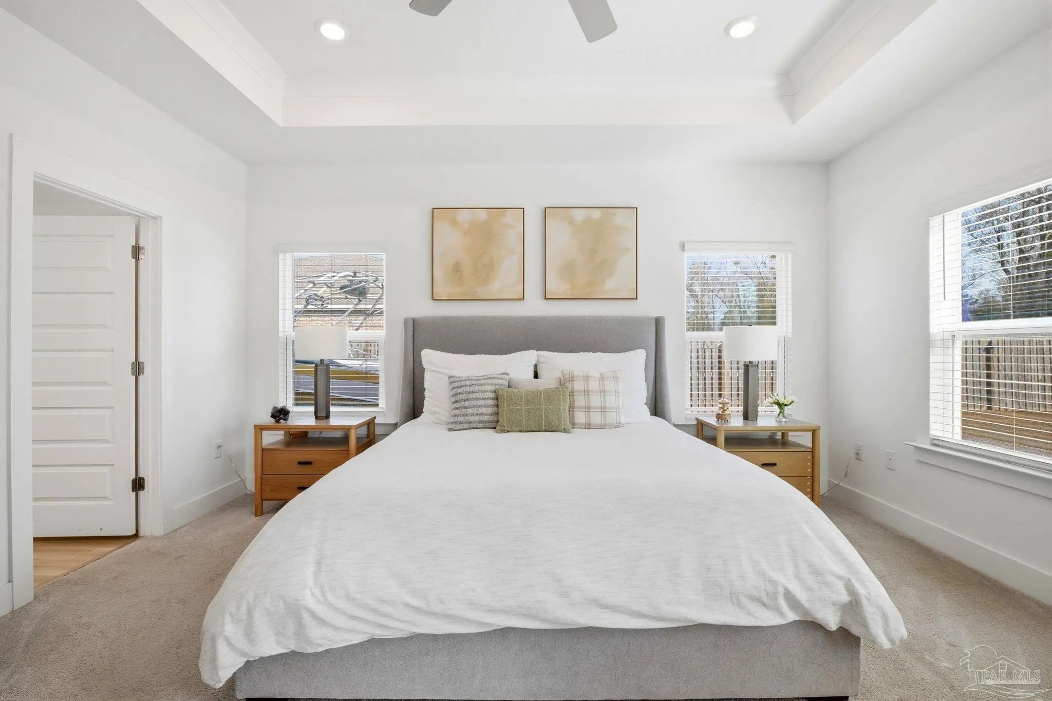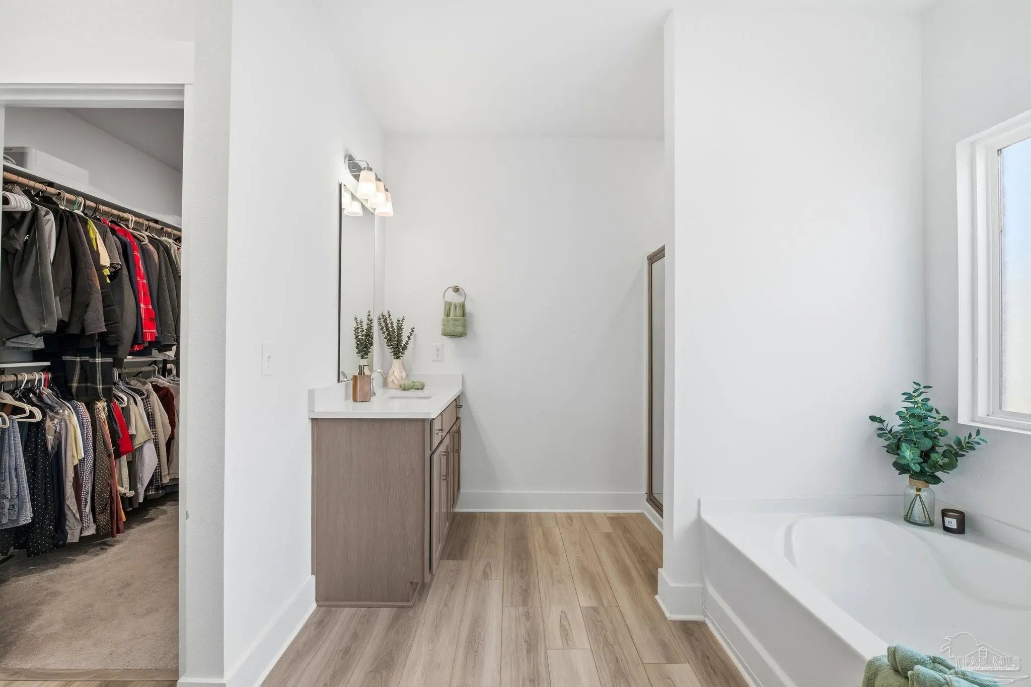 Come take a look at this thoughtfully designed 4-bedroom (+ FLEX room), 3.5-bath home featuring an ATTACHED GUEST SUITE with its own entrance and a recreational garage! In the main home, the foyer welcomes you with a hop-up ceiling and bead board detail. Just off the foyer, a hallway to the left leads to a private office with custom shelving and a half bath featuring board and batten walls. A hallway to the right leads to two bedrooms, a full bath, and a convenient linen closet. Continuing into the main living area, the family room showcases a modern electric fireplace, built-in shelving, recessed lighting, and double doors leading to the covered back patio. Just off the family room is a flex room with double-door entry and board and batten walls. The stunning kitchen offers quartz countertops, a large island, a single-bowl stainless sink, soft-close cabinetry, a pantry, built-in microwave, and more! A dining area connects seamlessly and provides direct patio access, making it ideal for entertaining. The secluded primary suite features tray ceilings and private access to the lanai. The ensuite bath includes double vanities, a linen closet, garden tub, separate shower, water closet, and a spacious walk-in closet! The attached guest suite includes a kitchenette with quartz countertops, a built-in microwave, dishwasher, pantry closet, refrigerator space, and sink. The suite's hallway provides access to a full bath, laundry closet with stackable washer/dryer, additional hallway closets, and a bedroom with a walk-in closet. This suite is perfect for multigenerational living, caregiver quarters, game/media/workout, luxury work-from-home space, etc! Outdoor features include gutters, a sprinkler system, double gate on the left side of the home, single gate on the opposite side, and a fully fenced backyard (yard is not fully cleared). Don't miss out on this incredible move-in-ready home and don't forget to check-out the virtual tour!