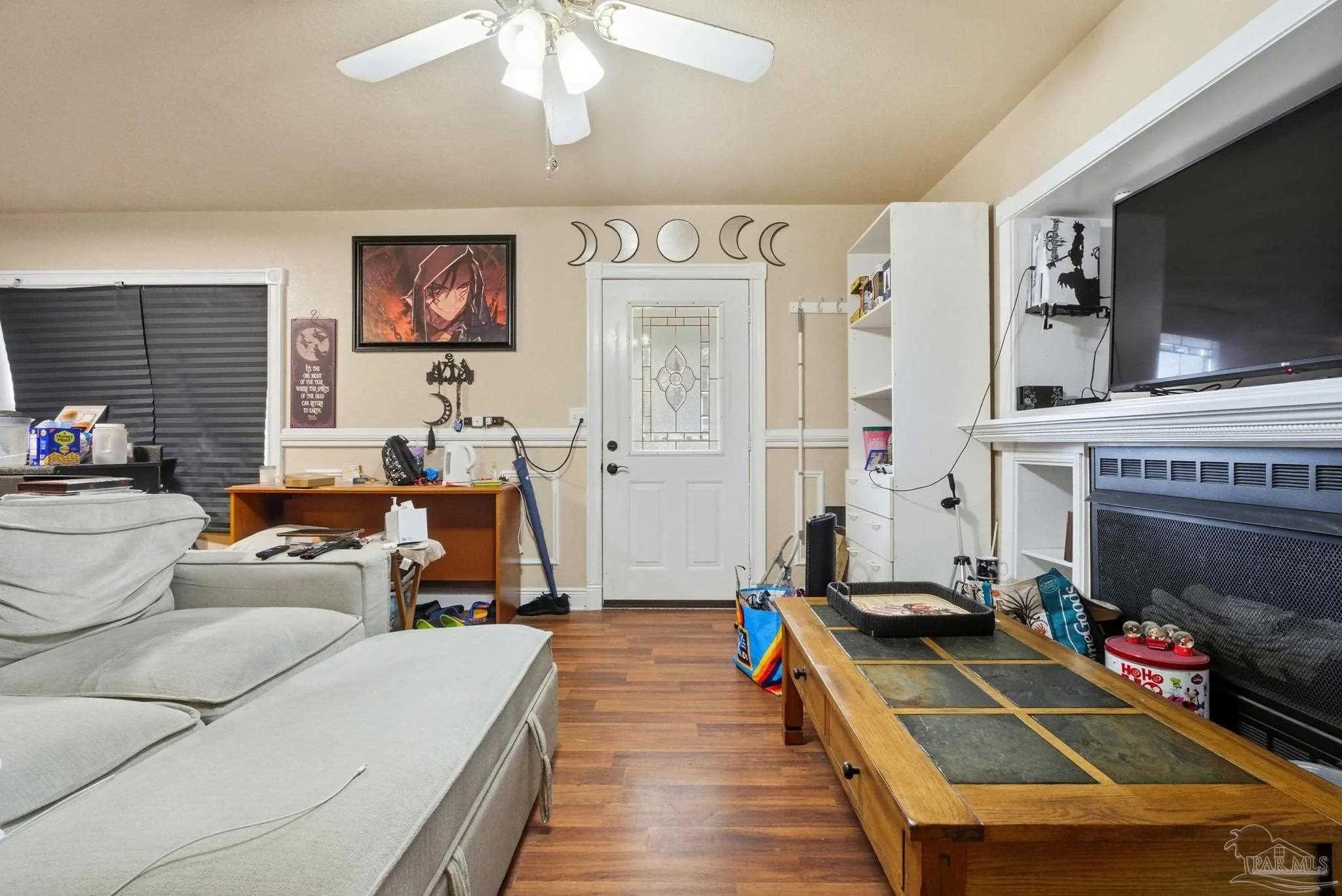 Move-in ready and beautifully remodeled, this 3-bedroom, 2 full bath home with an additional bonus room is priced to sell quickly. Roof to be replaced at closing!!! As you arrive, you’ll immediately notice this charming home, creating both curb appeal and a welcoming sense of privacy. Inside, the home features crown molding and durable laminate flooring throughout. The main living area is generously sized, complete with a built-in fireplace and plenty of space for a large flat-screen TV — perfect for relaxing or entertaining. The galley-style kitchen offers ample counter space and cabinetry, along with an electric range and a family-sized refrigerator, conveniently located just off the living area for easy flow. The versatile bonus room can serve as a playroom, office, or potential fourth bedroom, with a well-positioned second full bathroom for added convenience. The remaining three bedrooms are all comfortably sized, filled with natural light, and offer excellent storage. This is a wonderful opportunity for first-time homebuyers, downsizers, or anyone looking for a well-updated home at an attractive price point.