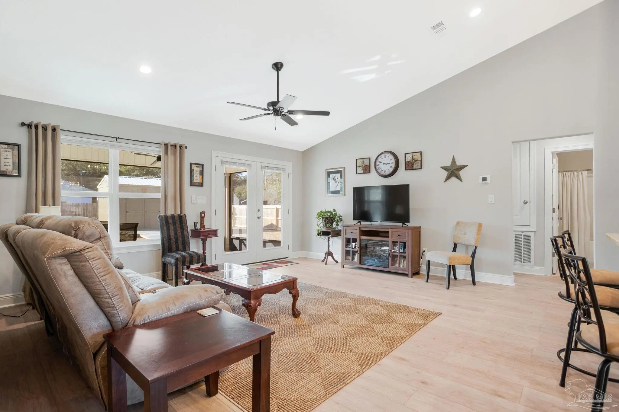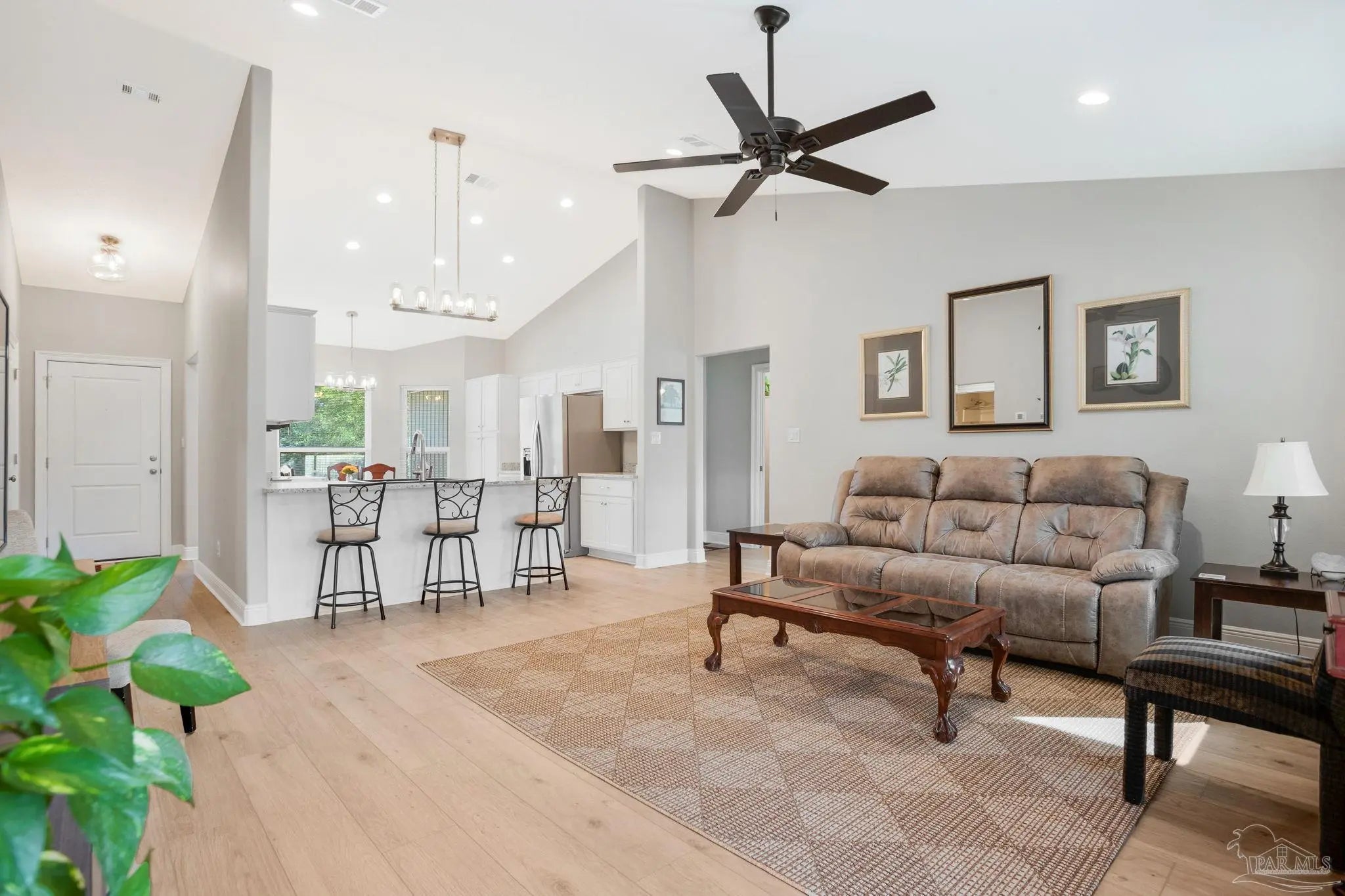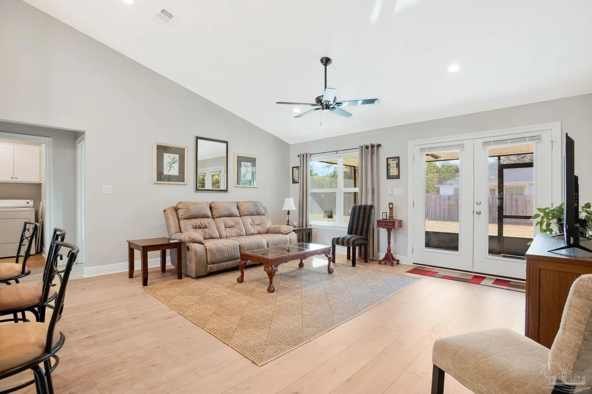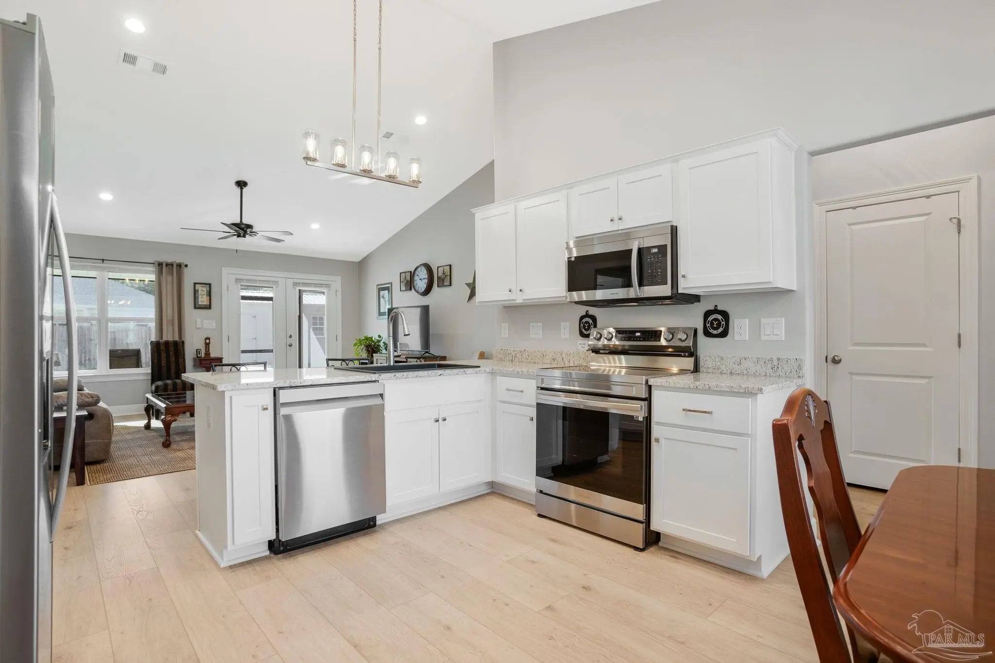 When you walk through the front door, you immediately feel it. Bright, open, and airy with high ceilings and natural light pouring in, this nearly new 3 bedroom, 2 bath home feels fresh and inviting from the start. The main living space flows effortlessly and overlooks a large, private backyard, giving you that open concept feel without sacrificing privacy. Built in October 2024 and only lived in for 8 months, it truly feels better than new. The bedrooms are generously oversized, offering room to breathe, work, or unwind. The finishes throughout are elevated, including thicker baseboards and clean, modern touches that make the home feel polished and thoughtfully designed. The kitchen is the heart of the home with granite countertops, a quartz single bowl sink, ENERGY STAR Samsung Smart appliances, and an ENERGY STAR Whirlpool refrigerator. It is perfect for everyday living and entertaining alike. Luxury Vinyl Plank flooring runs throughout with tile in the bathrooms for durability and style. The primary suite feels like a retreat with a spacious bedroom, oversized walk-in closet, double vanities, and a stunning spa-like tiled shower that feels straight out of a magazine. Outside, the upgrades continue. A newly screened patio with upgraded door and screen creates the perfect spot for morning coffee. The premium privacy fence includes a 10 foot gate for easy RV or boat access. There is even a 10 x 20 man cave with an L shaped workbench ready for hobbies or projects. Washer and dryer convey. Termite bond in place. Hurricane fabric shields for all windows and doors help reduce homeowners insurance. Owners are relocating, creating an opportunity to own a beautifully upgraded, lightly lived in home close to shopping, restaurants, hospitals, and NAS Whiting Field, priced to sell fast with added upgrades, do not wait! Schedule your showing before it's gone.