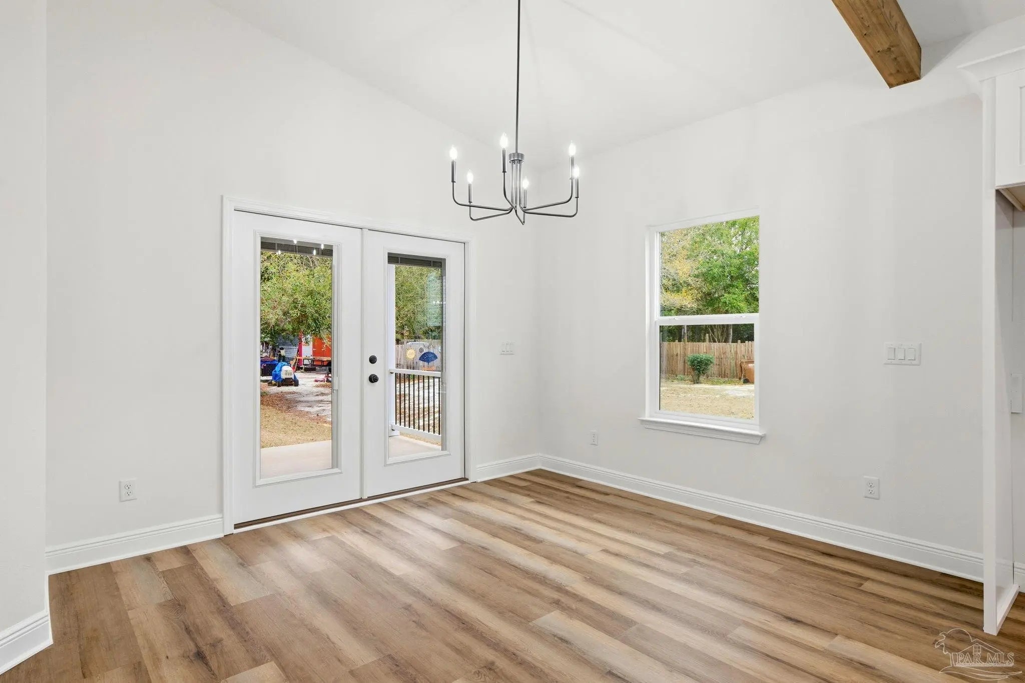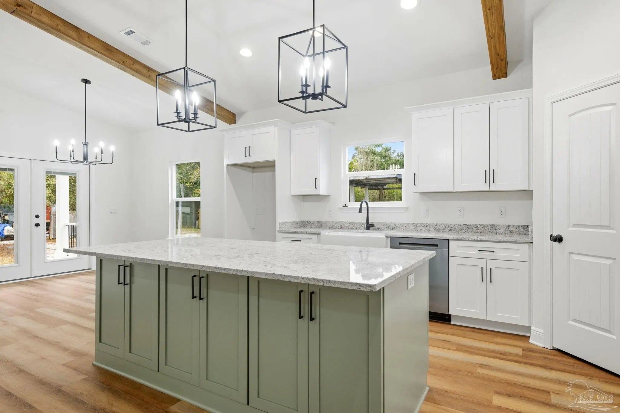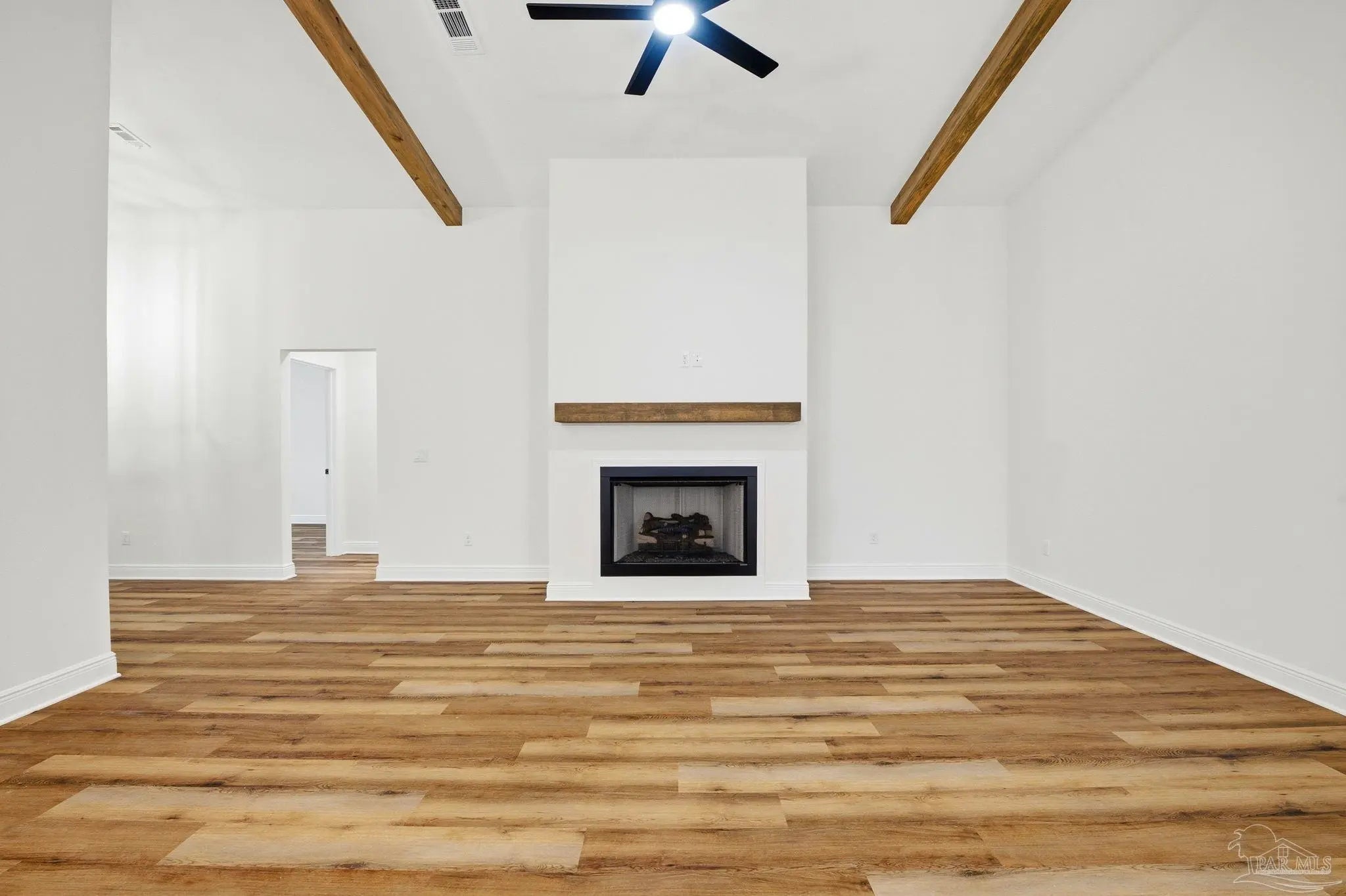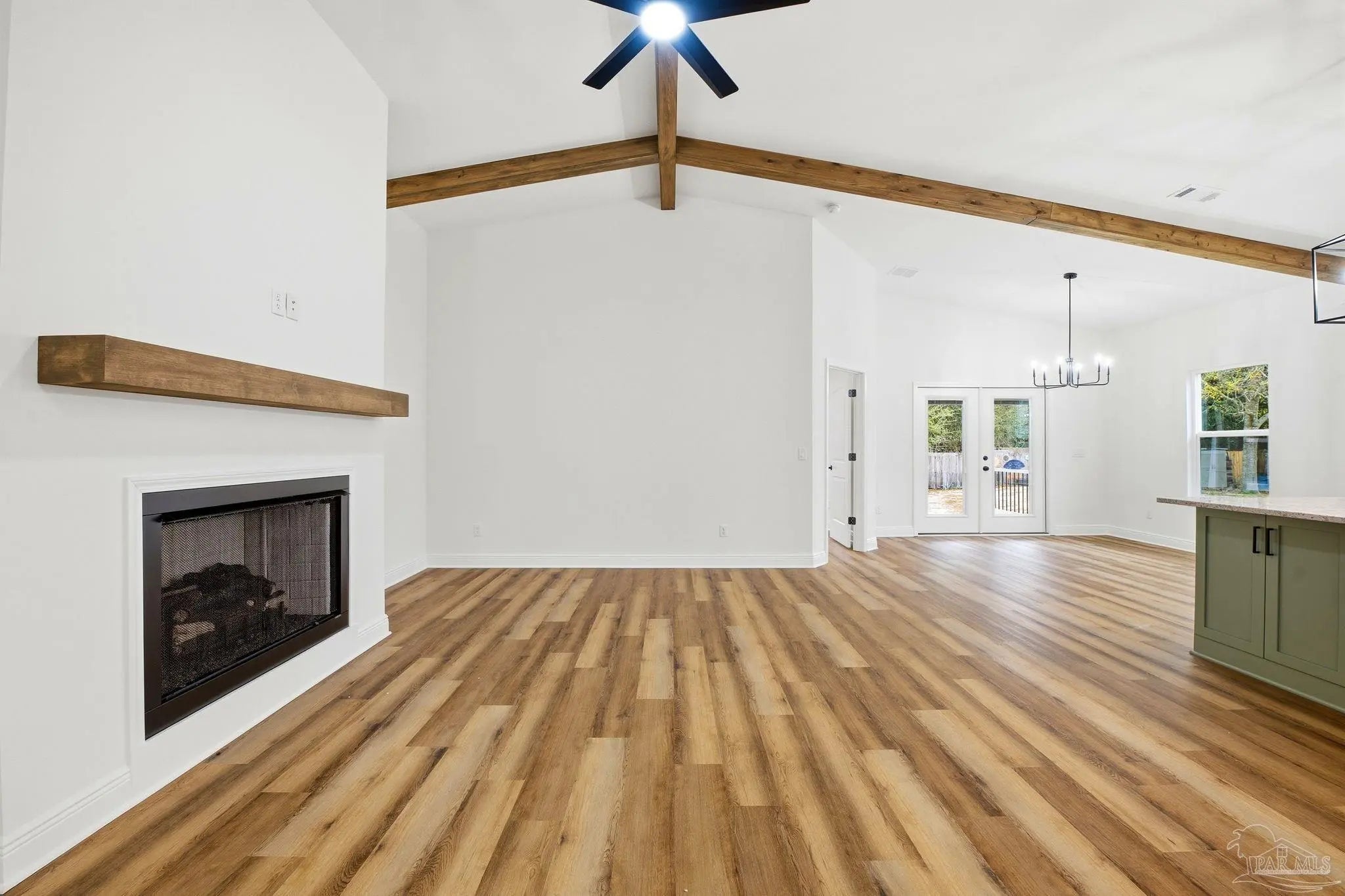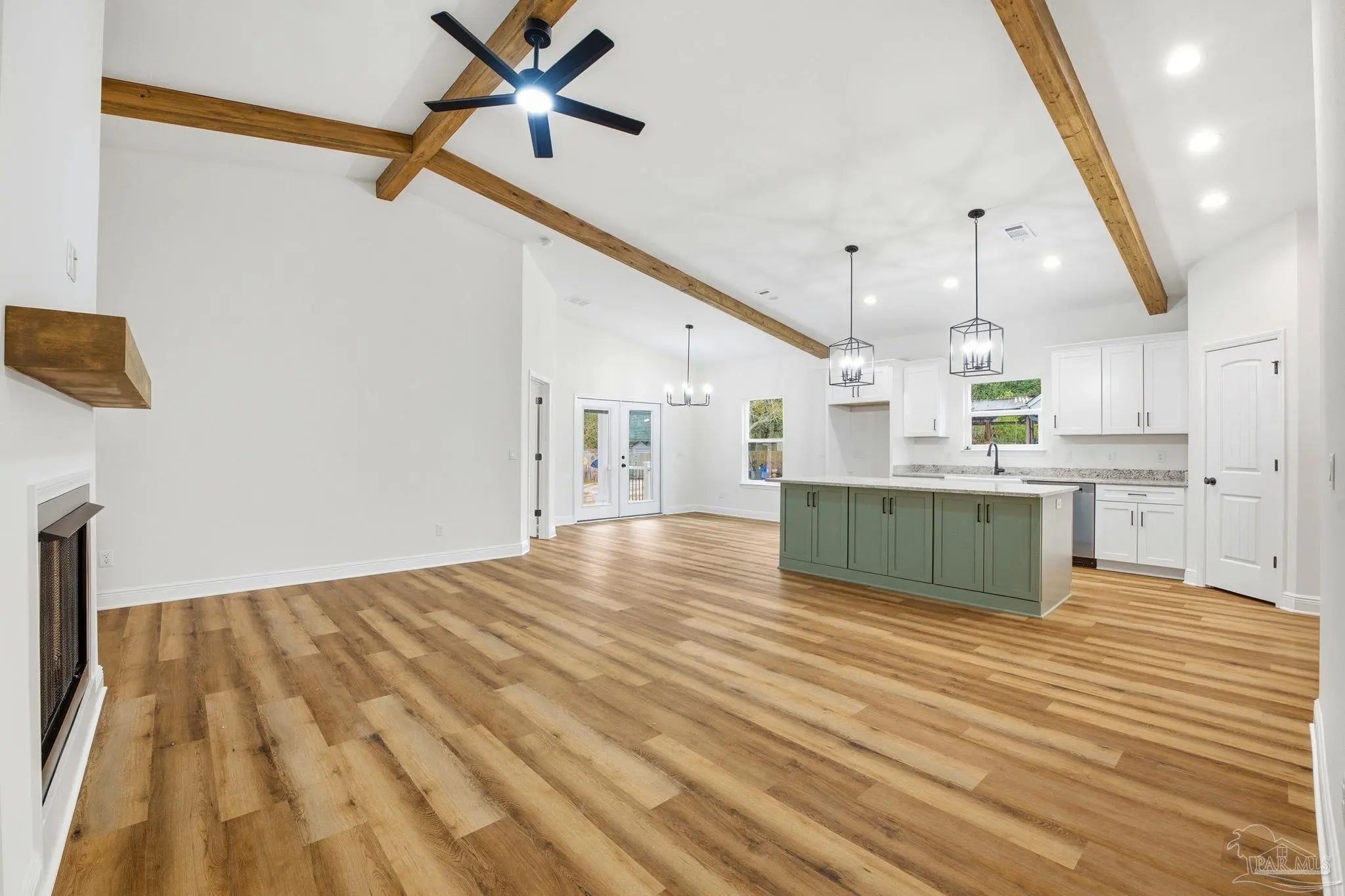 Completed in 2026 by FD Builds, this move-in ready 4-bedroom, 2.5-bath home offers 1,965 heated and cooled square feet of thoughtfully designed living space perfectly situated just minutes from Pensacola and Navarre, approximately 15 minutes to the beach. Vaulted ceilings with exposed wood beams create an impressive open living area anchored by a gas fireplace. The gourmet kitchen features a gas range, oversized island, custom cabinetry, and abundant natural light — ideal for both everyday living and entertaining. The primary suite includes a freestanding soaking tub, separate walk-in tiled shower, and spacious double vanity. Additional highlights include a gas tankless water heater, Hardie board siding, dimensional shingle roof, attached 2-car garage, and a transferable 2-10 builder warranty. Situated on an oversized 0.6-acre lot with no HOA restrictions, the property offers space to add a workshop, or expanded outdoor living area. Located within highly regarded Santa Rosa County school zones and convenient to military bases, shopping, and Gulf Coast beaches. New construction. Move-in ready. Priced at $485,000.