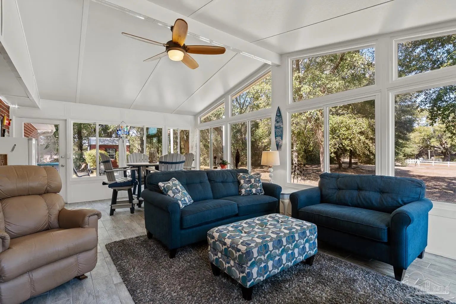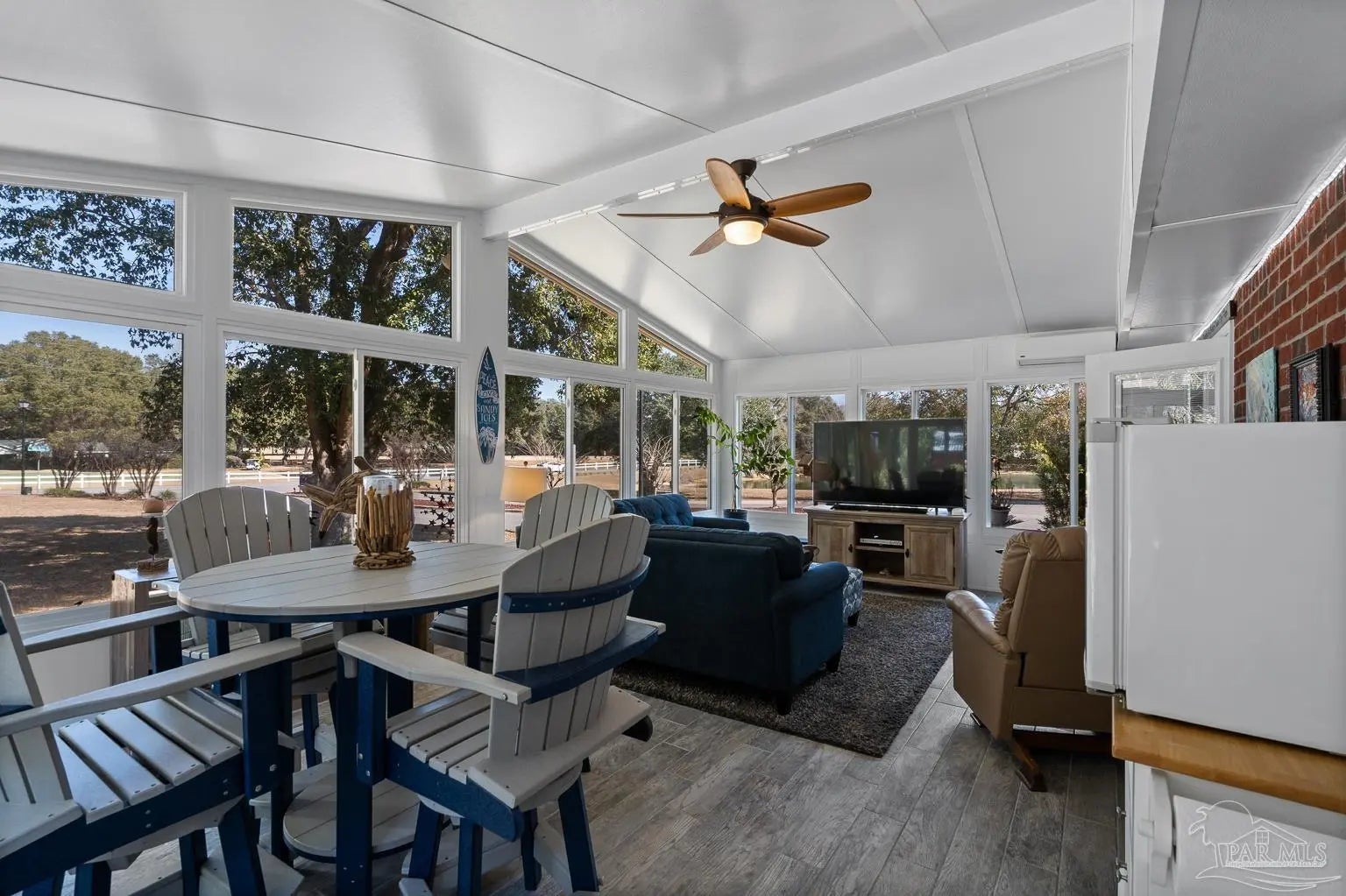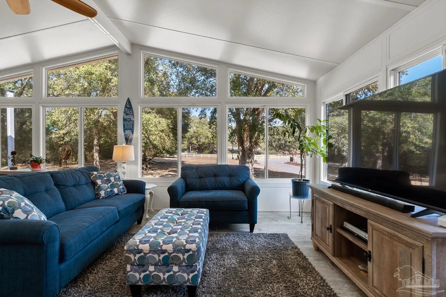 - Baseboards, Cathedral Ceiling(s), Ceiling Fan(s), High Ceilings, Recessed Lighting, Office/Study, Sun Room