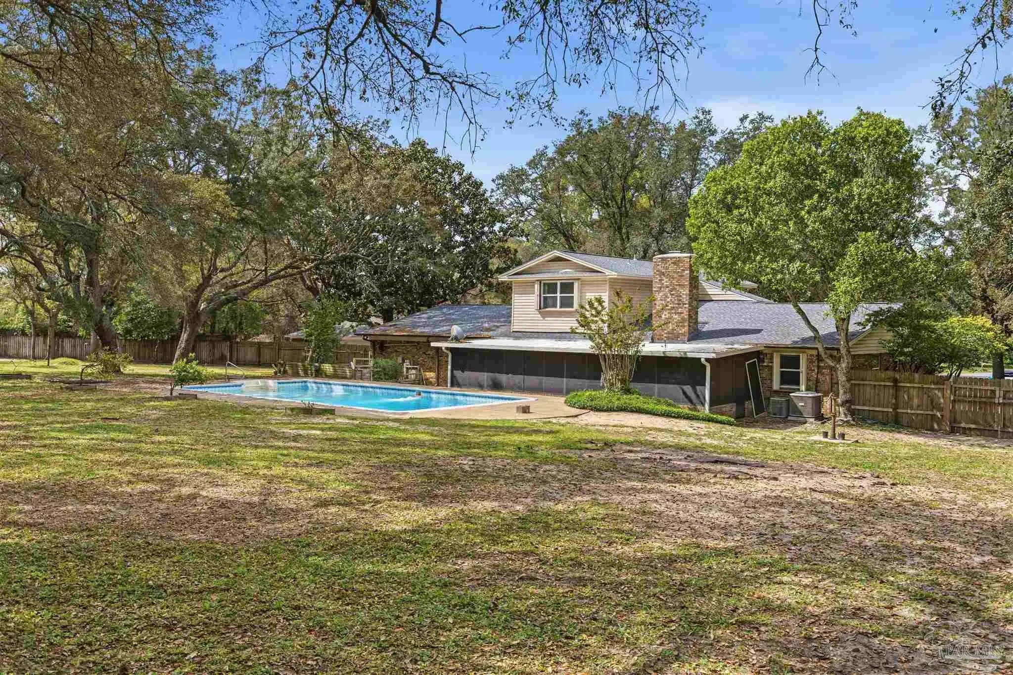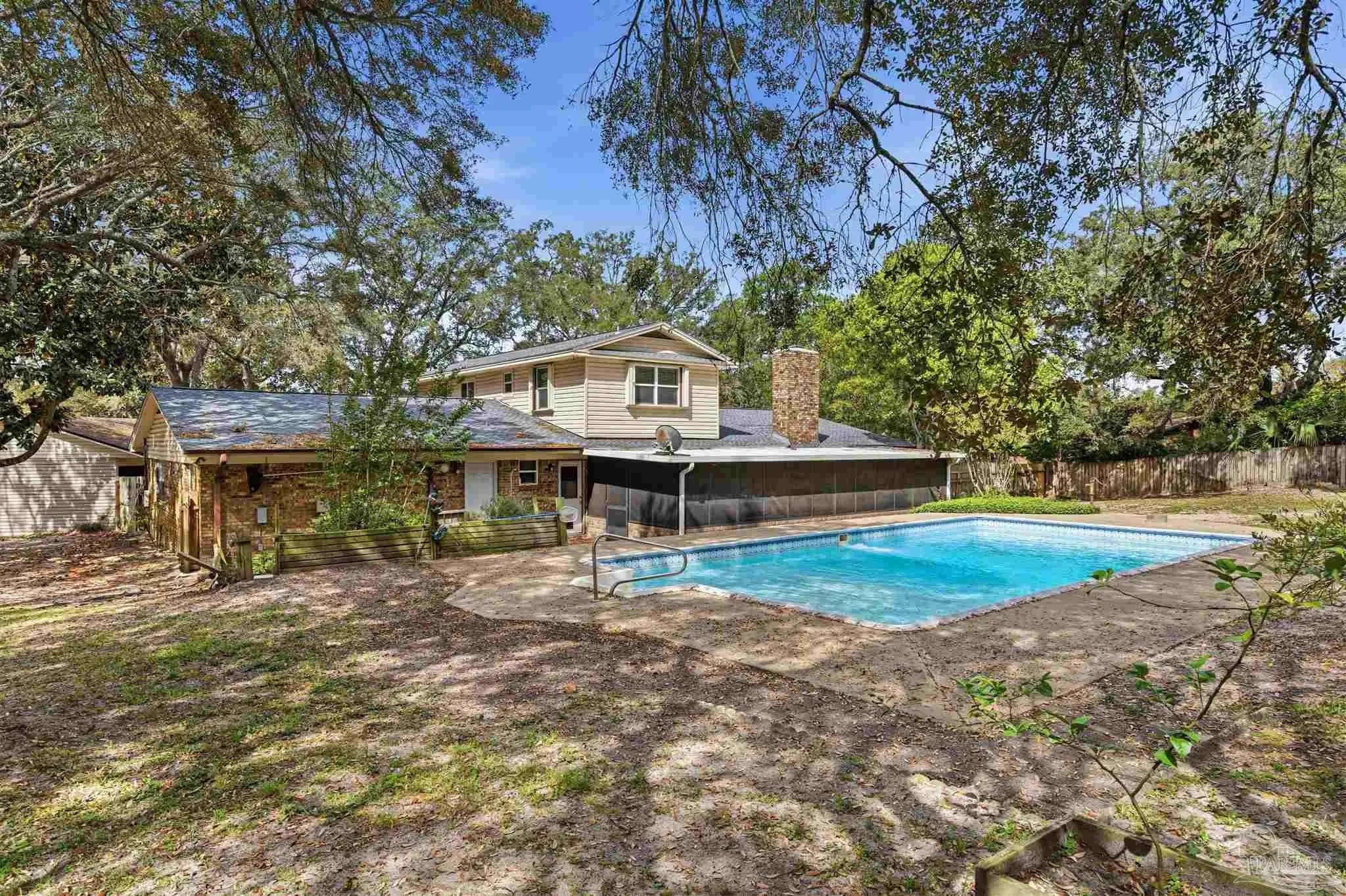Welcome to your slice of Florida Paradise, a rare Gulf Breeze offering situated on a fully fenced 1.08-acre cul-de-sac lot in the desirable Santa Rosa Ranchettes area. This spacious home offers approximately 2,820 square feet with 6 bedrooms and 3 bathrooms, providing exceptional flexibility for large households, multi-generational living, or home office needs. The functional layout features generous living areas ideal for everyday living and entertaining, durable wood-look tile and luxury plank vinyl flooring, a well-equipped kitchen with ample cabinetry and stainless steel appliances, and a private primary suite with ensuite bath and ample closet space. Enjoy Florida living outdoors with a private in-ground saltwater pool, screened porch, mature trees, and expansive yard space with room for pets, recreation, and boat or RV parking. Additional features include a metal roof, multiple garage spaces with added storage, sprinkler system, public water, and septic. Conveniently located near top-rated schools, shopping, dining, boat ramps, and Pensacola Beach, this property offers privacy, space, and a prime coastal location. Don't miss this one!