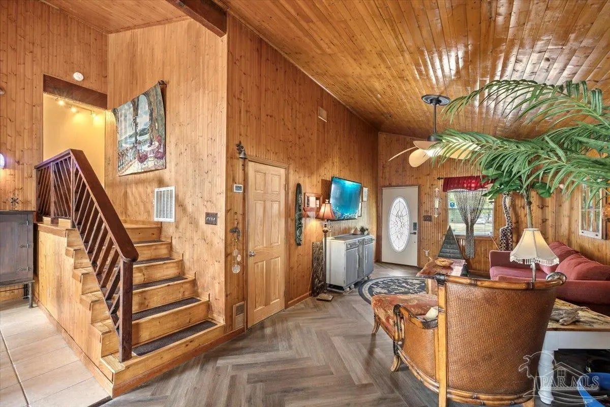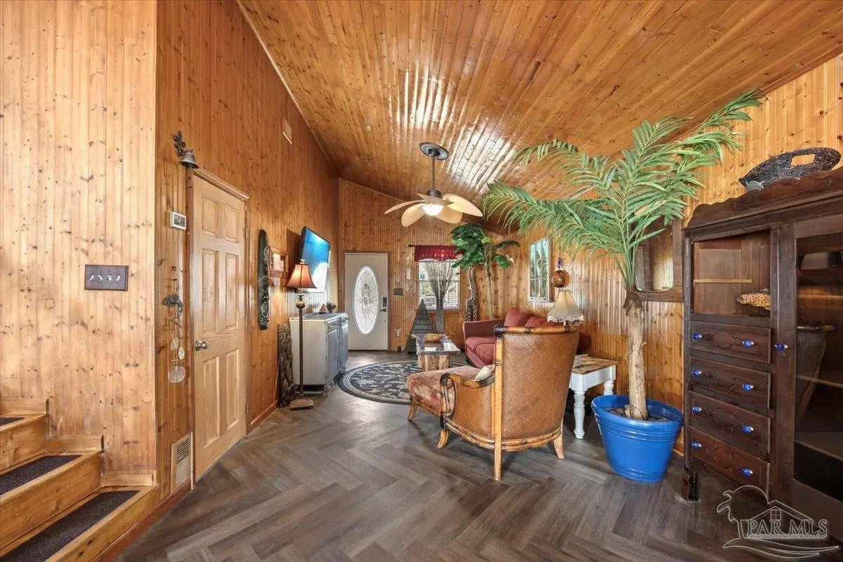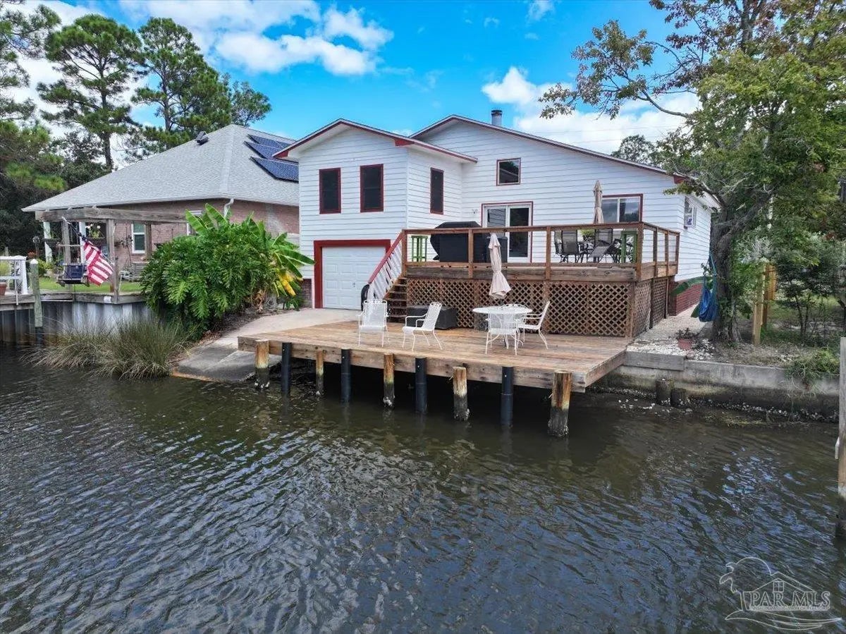 Open Sat Feb 28 from 10:30 to Noon. Experience refined waterfront living in Gulf Breeze. This custom specialty artisan craftsman home showcases soaring ceilings with exposed beams anda dramatic floor-to-ceiling stone fireplace, blending character with comfort. Updates in the last few years include a new roof, HVAC, insulation, flooring,paint, remodeled baths, and a smart security system. Outdoors, a reinforced concrete seawall, rebuilt dock, and drive-through garage with private boatlaunch make life on the water effortless. Enjoy sweeping views and relaxed vibes from two spacious decks, rinse off in the outdoor shower after a dayon the water, and unwind in the massive primary suite. It is more than a residence—it’s a rare opportunity to own a turnkey coastal lifestyle in one ofGulf Breeze’s most coveted locations.