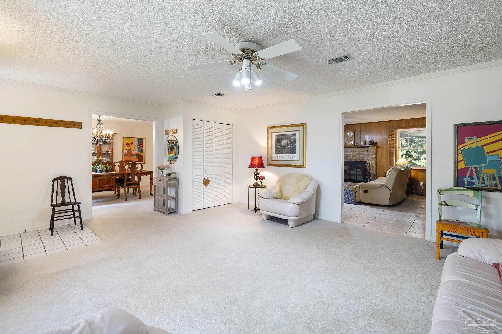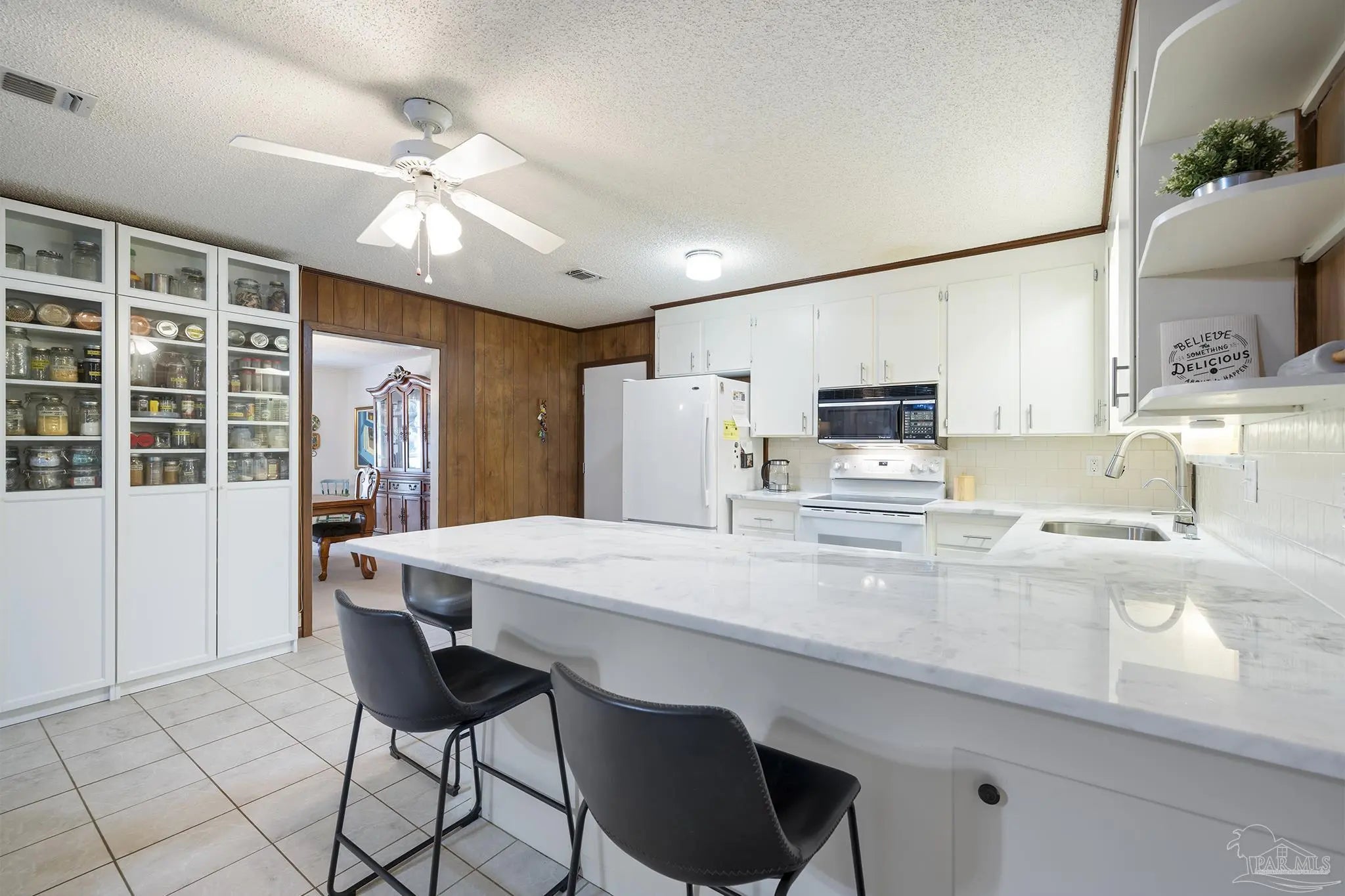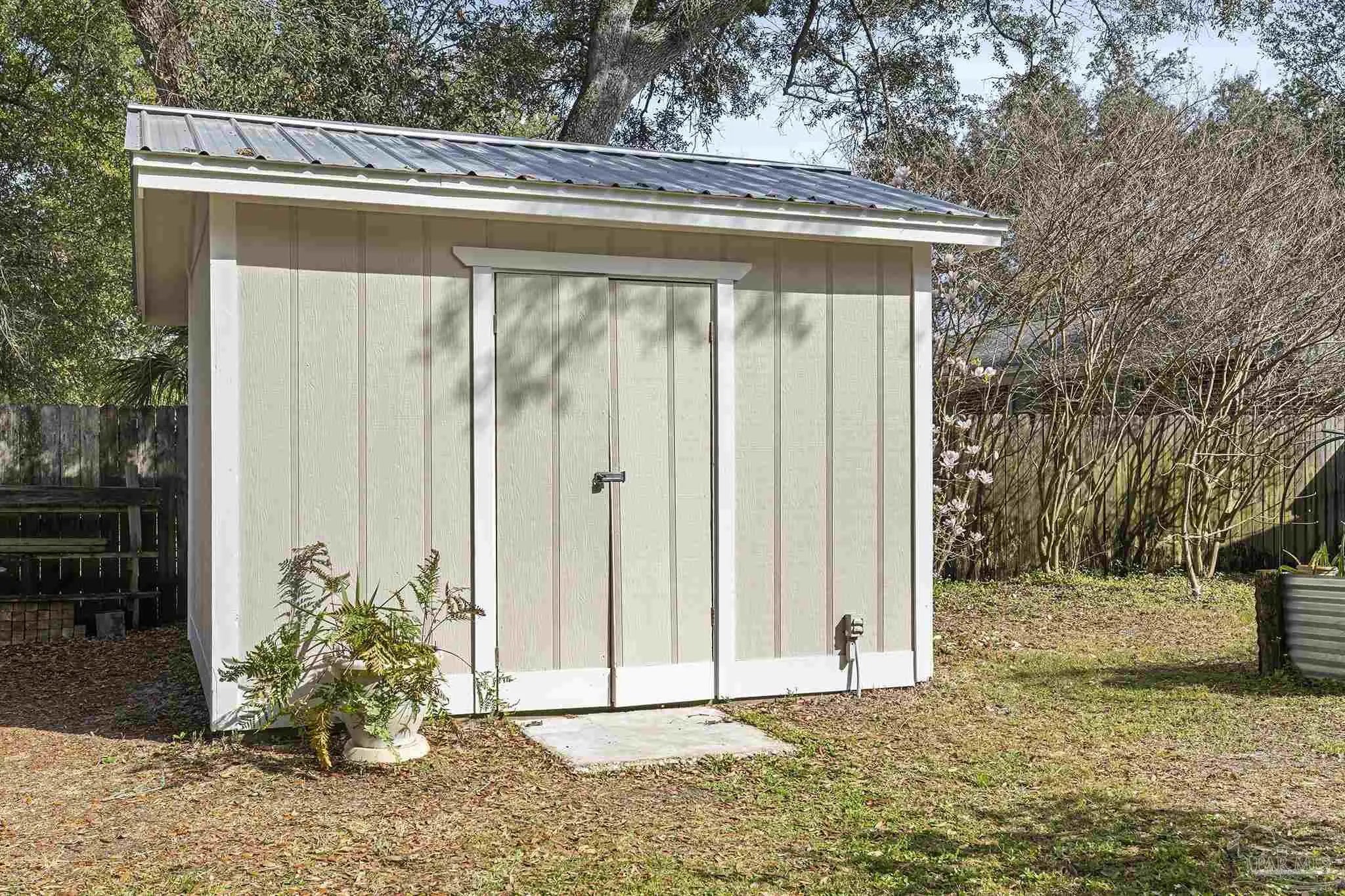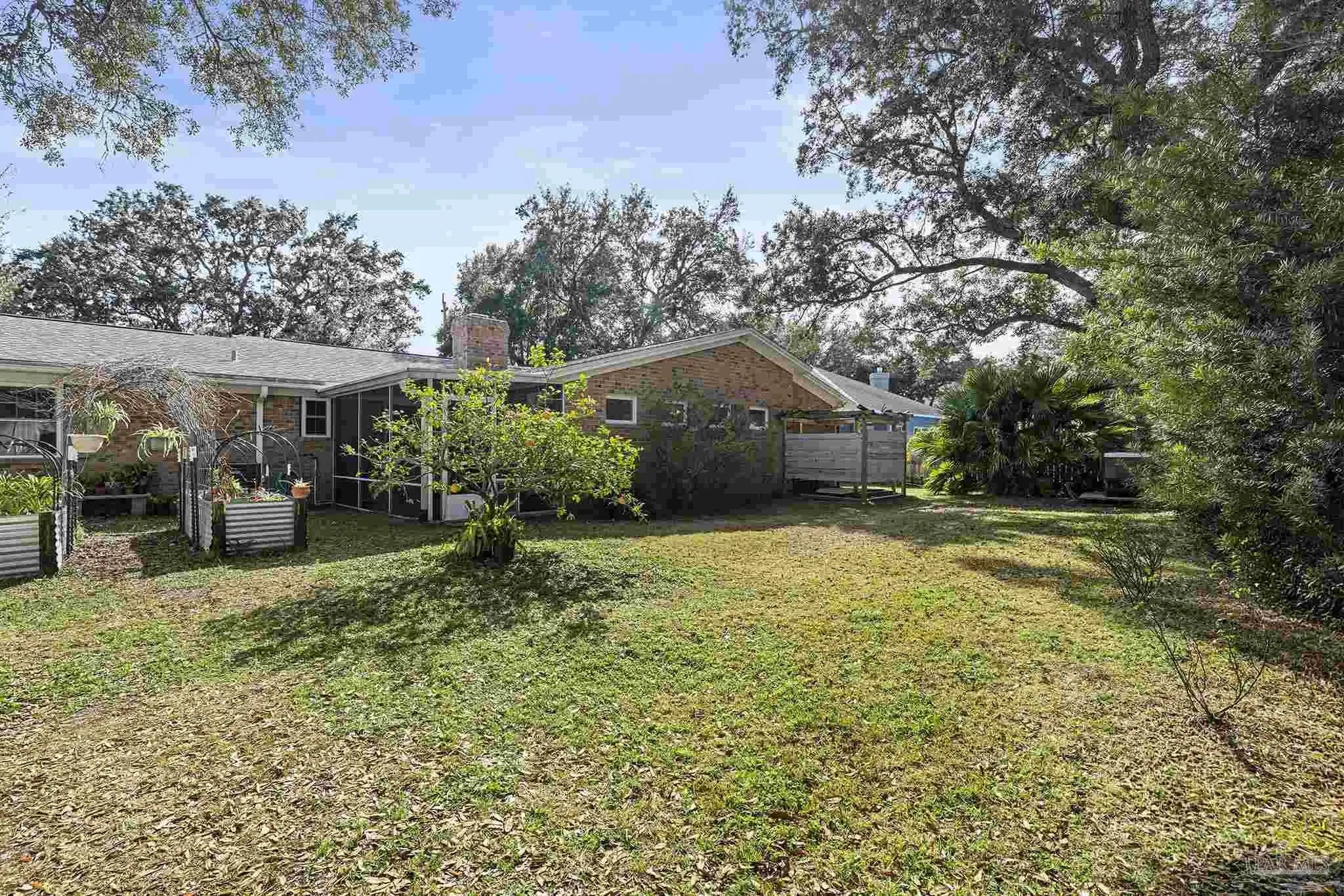 506 Fairpoint Drive | Gulf Breeze Proper. This home is gracefully positioned beneath a canopy of majestic live oaks in the heart of Gulf Breeze Proper, this cherished residence blends timeless character with thoughtful modern updates. Set on a beautiful, maturely landscaped homesite, the property offers both privacy and understated elegance. Inside, warm architectural details and expansive living room create an inviting yet sophisticated atmosphere. A welcoming foyer leads to a formal dining room ideal for intimate gatherings, while the open-concept kitchen and family room serve as the heart of the home. Also in the kitchen a reverse osmosis water purification system enhances the kitchen’s functionality. The kitchen features bar seating and seamless flow into the den, anchored by a cozy fireplace and custom built-in bookcases. Generously proportioned rooms define the home, including a dedicated office with private exterior entrance perfect for professionals or guests. A substantial third bedroom presents exceptional flexibility and could easily be transformed into a luxurious primary suite. The hall bath has been fully renovated with tasteful finishes. Impact-resistant double-hung windows and doors provide both beauty and peace of mind. An oversized laundry room offers abundant storage. Outdoors, the expansive fenced backyard is a private retreat with ample room for a pool. Enjoy a hot tub, outdoor shower, large garden shed, and irrigation system on well water. The covered front porch overlooks natural Florida landscaping and a stately live oak, creating a serene welcome home. A single-car garage completes this exceptional offering in one of Gulf Breeze’s most desirable neighborhoods.
