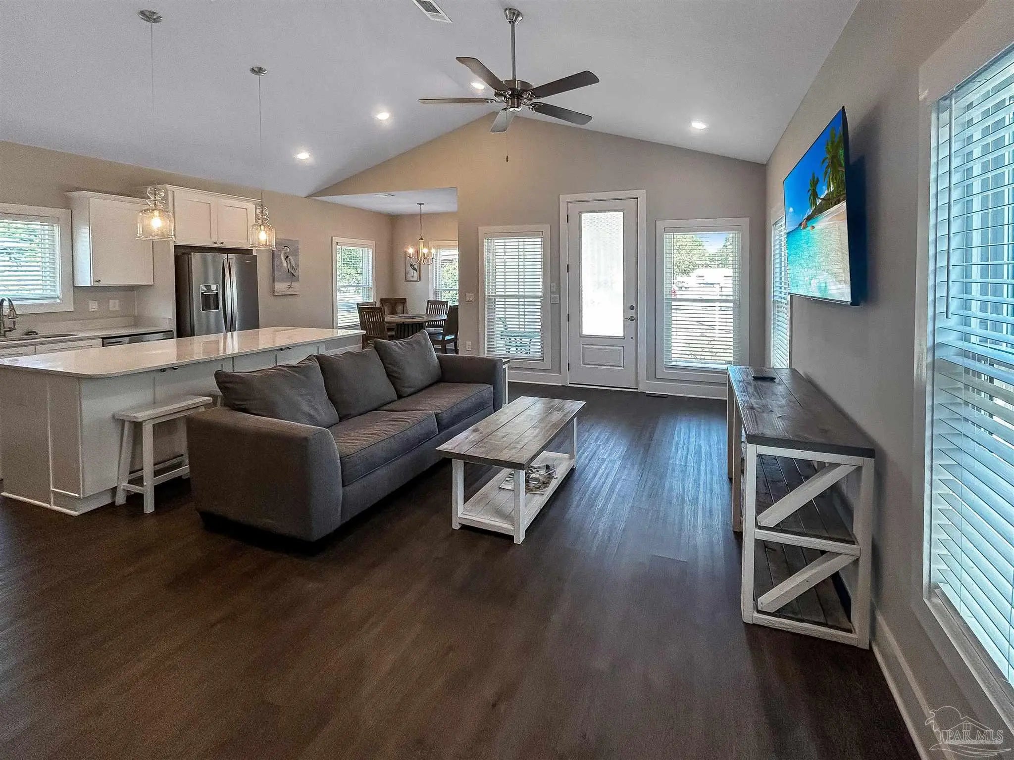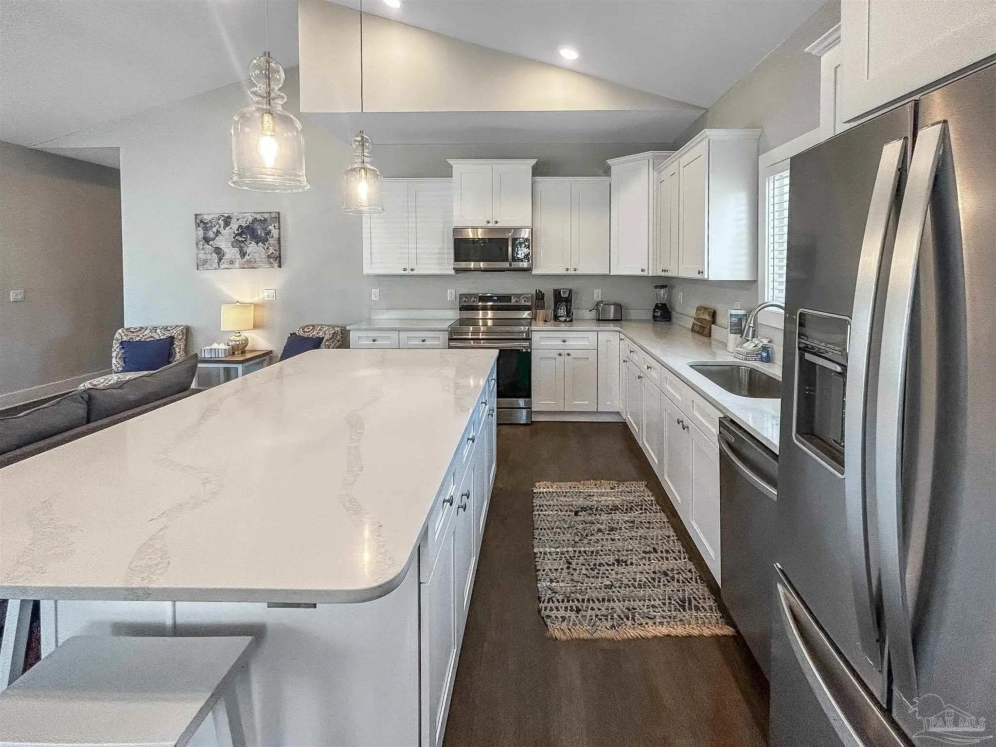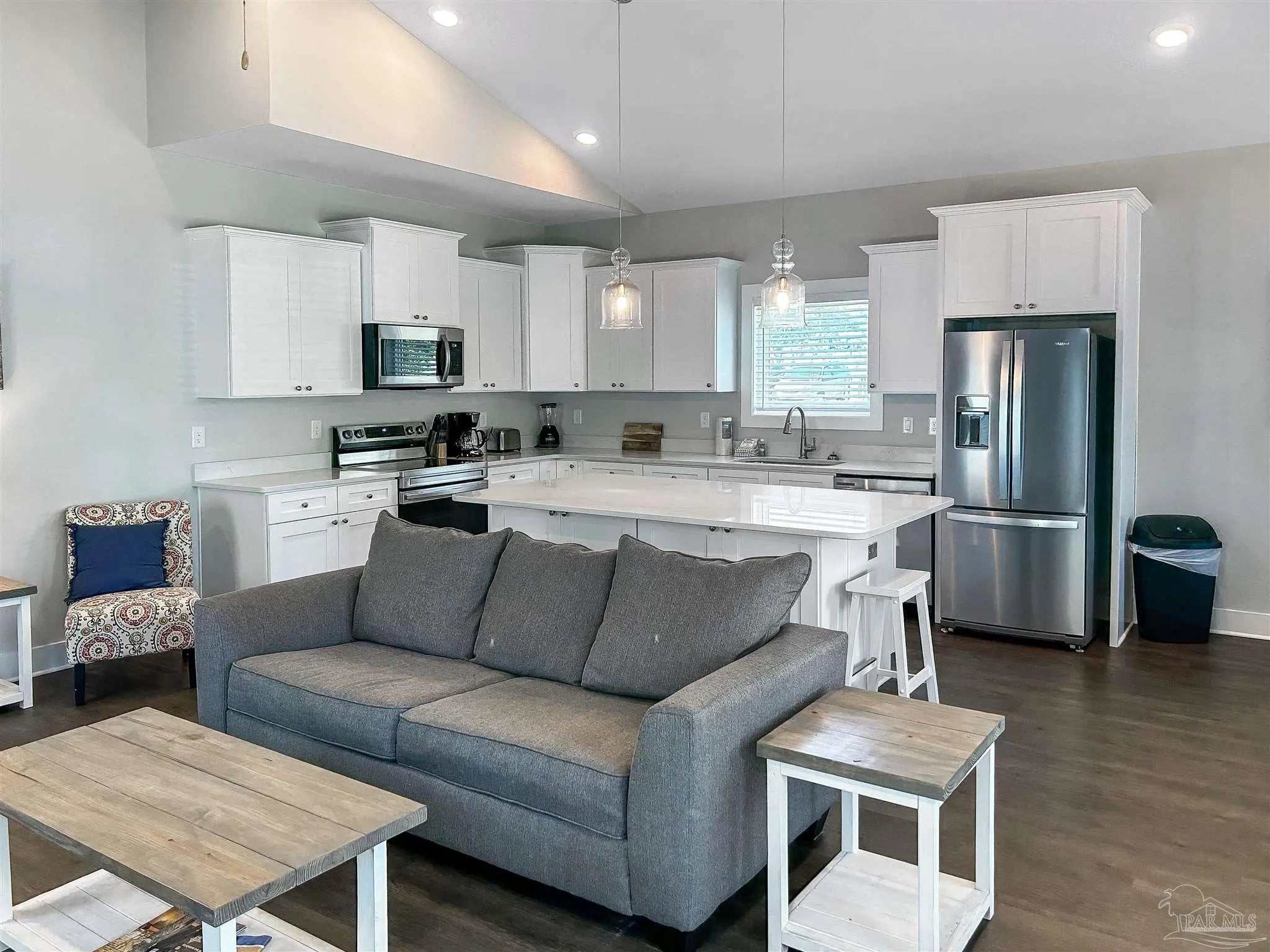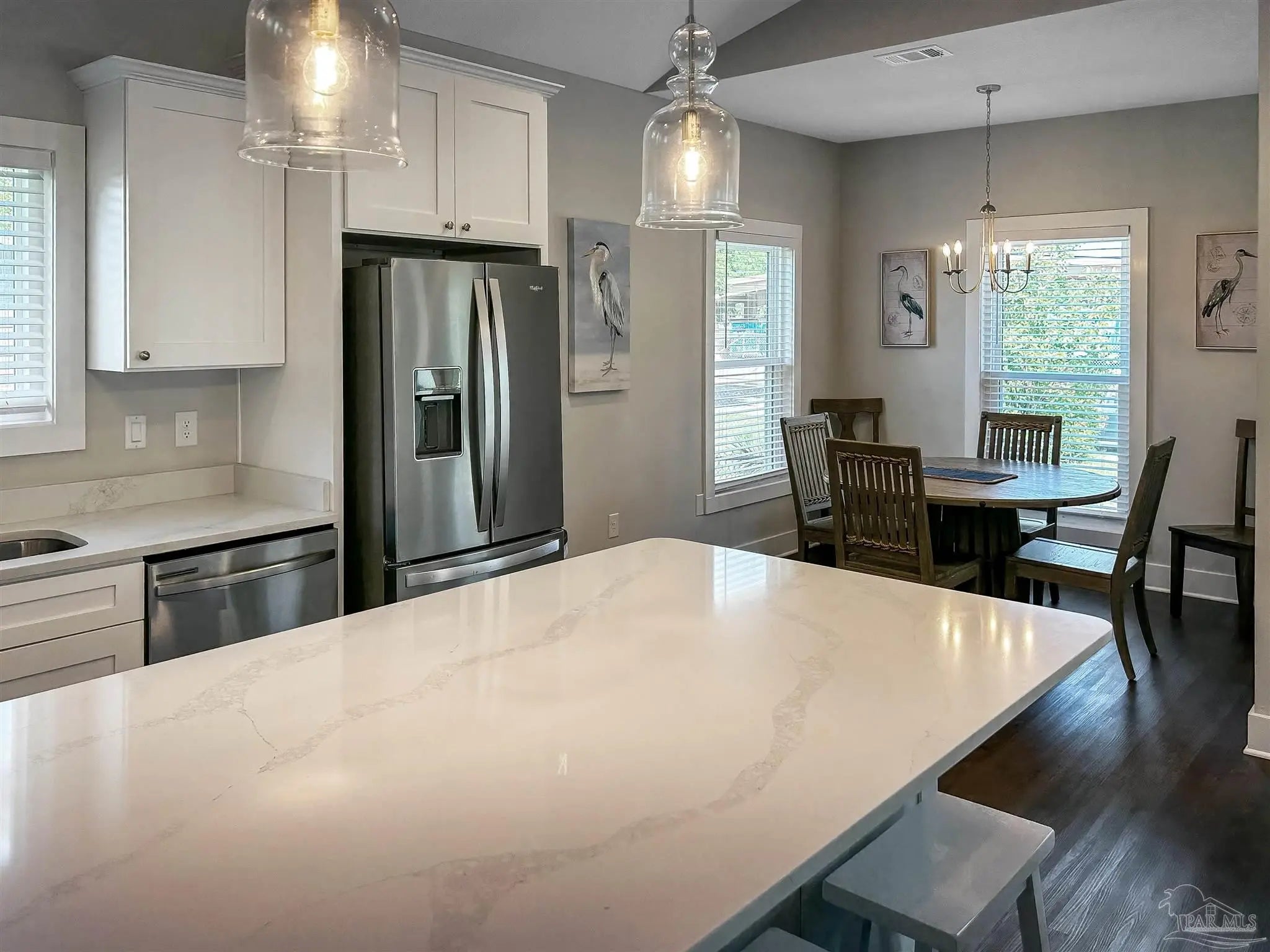 Welcome home to this stunning Coastal Cottage located in the heart of the highly desirable Garden District — one of downtown Pensacola’s fastest-growing neighborhoods. Just minutes from the energy of downtown, a short walk or bike ride connects you to everything that makes Pensacola downtown living so special — from dining and shopping to year-round community events. This charming Craftsman-style home features 3 bedrooms and 2.5 baths with an open-concept layout designed for modern living and effortless entertaining. The kitchen serves as the true centerpiece, showcasing quartz countertops, quality soft-close cabinetry with crown molding, a spacious island, and upscale finishes that elevate the space. All three bedrooms are thoughtfully situated toward the rear of the home in classic shotgun style, offering added privacy. The primary suite is a peaceful retreat complete with a trey ceiling, generous walk-in closet, and a spa-like en-suite bath featuring dual vanities with quartz countertops and a beautifully tiled walk-in shower. Two oversized guest bedrooms provide ample closet space and share a well-appointed full bath with double vanities, quartz counters, and a separate linen closet for extra storage. Luxury vinyl plank flooring flows seamlessly throughout the entire home, combining durability with timeless style. Step outside to a full-width rear porch — perfect for relaxing evenings or entertaining guests. The inviting front porch offers the ideal setting for morning coffee or unwinding with a glass of wine while enjoying the charm of the neighborhood. Embrace the downtown lifestyle and schedule your private tour today.