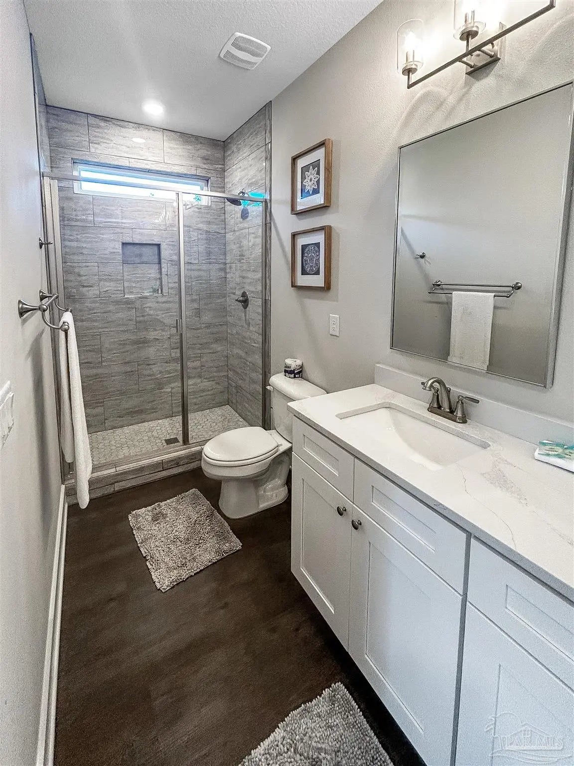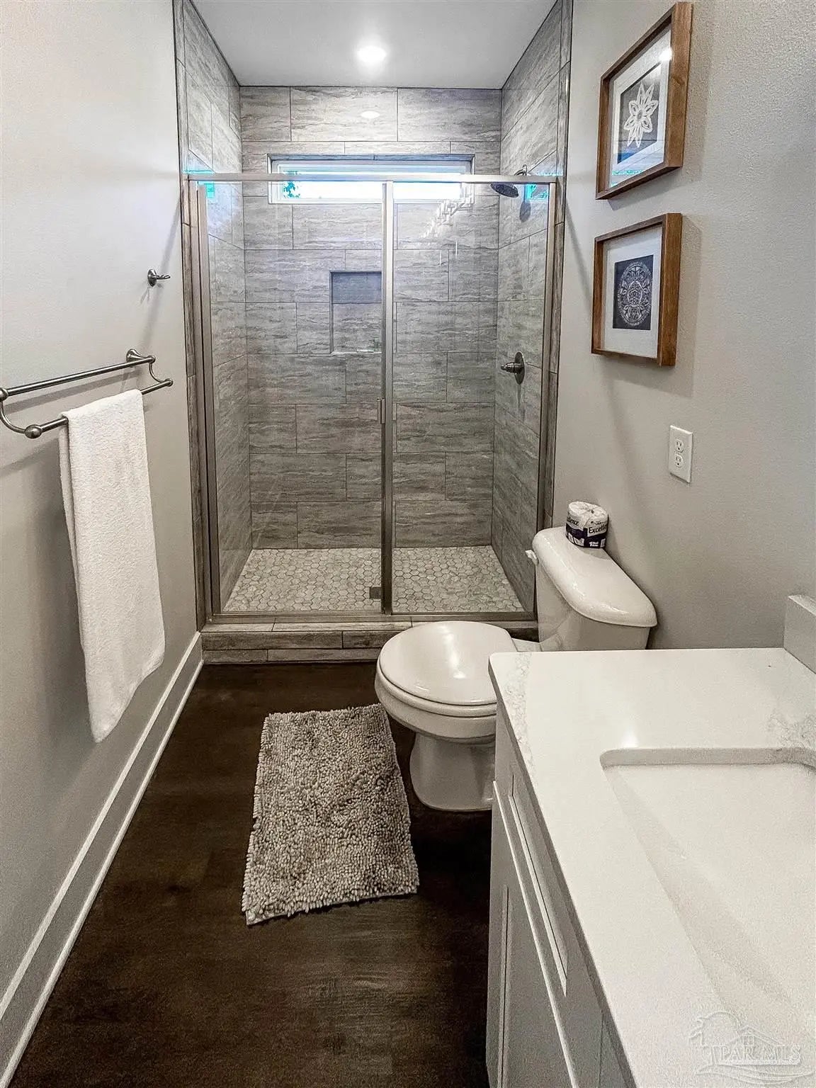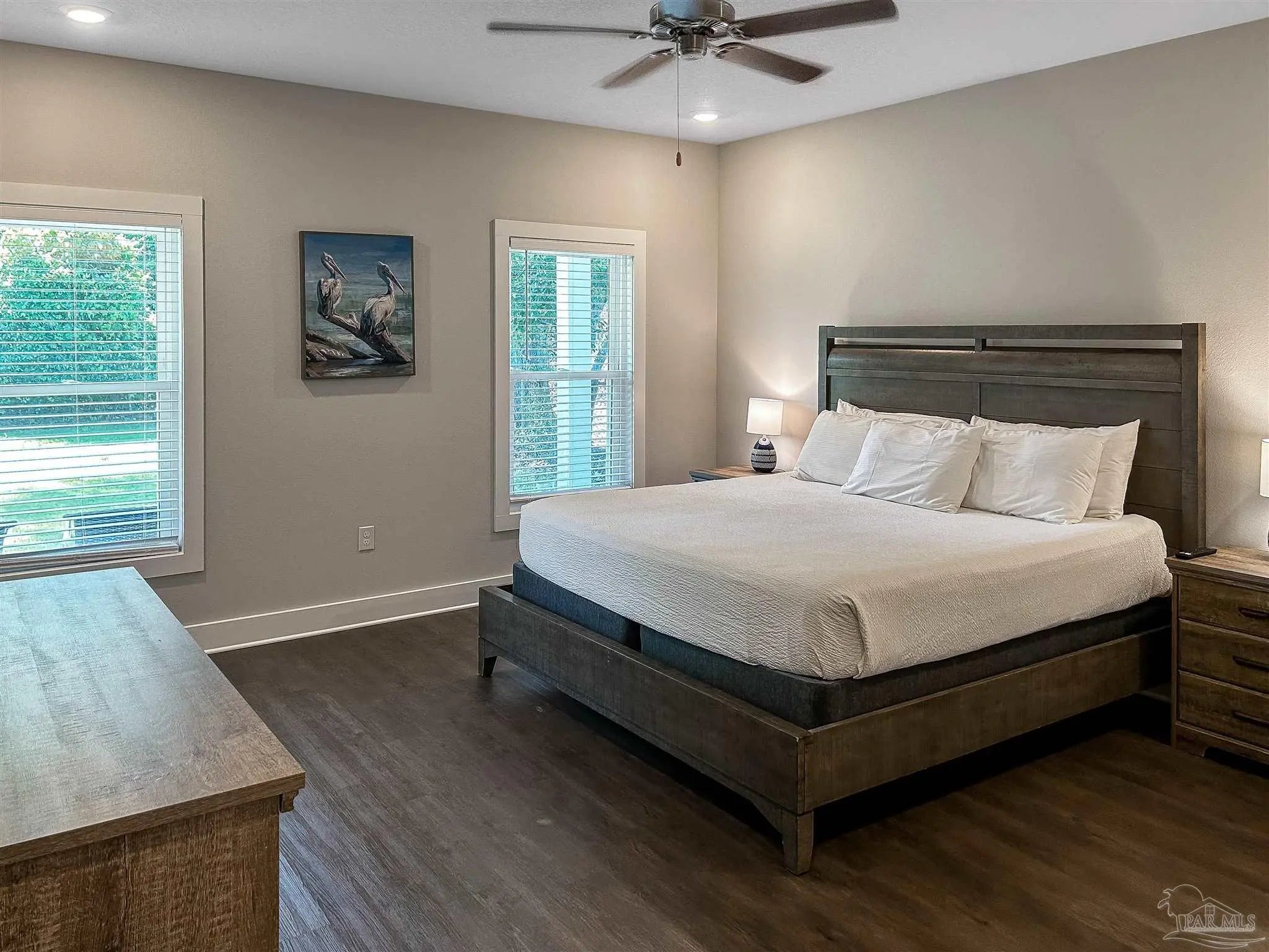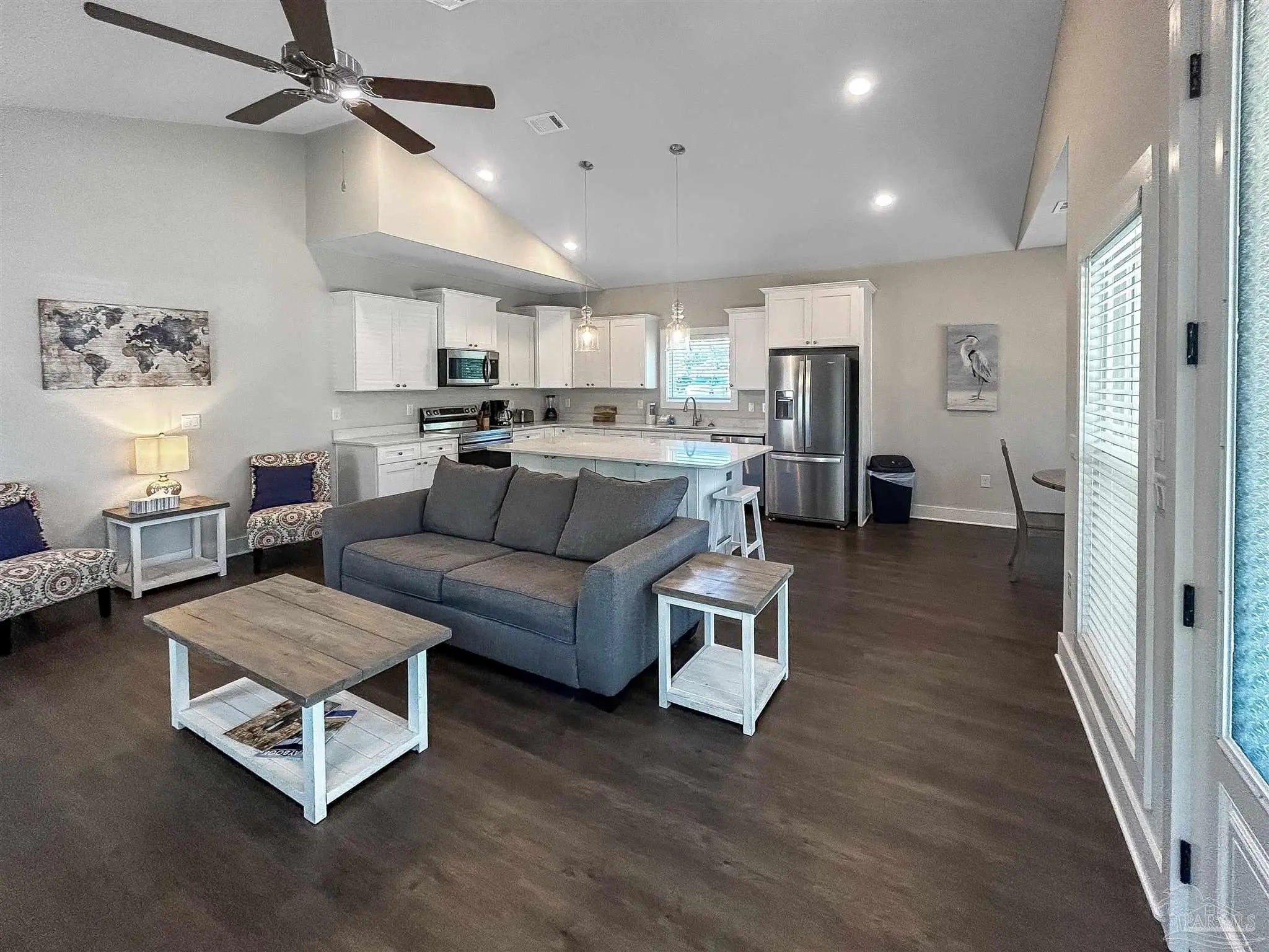 Welcome home to this stunning Coastal Cottage located in the heart of the highly desirable Garden District — one of downtown Pensacola’s fastest-growing neighborhoods. Just minutes from the energy of downtown, a short walk or bike ride connects you to everything that makes Pensacola downtown living so special — from dining and shopping to year-round community events. This charming Craftsman-style home features 3 bedrooms and 2.5 baths with an open-concept layout designed for modern living and effortless entertaining. The kitchen serves as the true centerpiece, showcasing quartz countertops, quality soft-close cabinetry with crown molding, a spacious island, and upscale finishes that elevate the space. All three bedrooms are thoughtfully situated toward the rear of the home in classic shotgun style, offering added privacy. The primary suite is a peaceful retreat complete with a trey ceiling, generous walk-in closet, and a spa-like en-suite bath featuring dual vanities with quartz countertops and a beautifully tiled walk-in shower. Two oversized guest bedrooms provide ample closet space and share a well-appointed full bath with double vanities, quartz counters, and a separate linen closet for extra storage. Luxury vinyl plank flooring flows seamlessly throughout the entire home, combining durability with timeless style. Step outside to a full-width rear porch — perfect for relaxing evenings or entertaining guests. The inviting front porch offers the ideal setting for morning coffee or unwinding with a glass of wine while enjoying the charm of the neighborhood. Embrace the downtown lifestyle and schedule your private tour today.