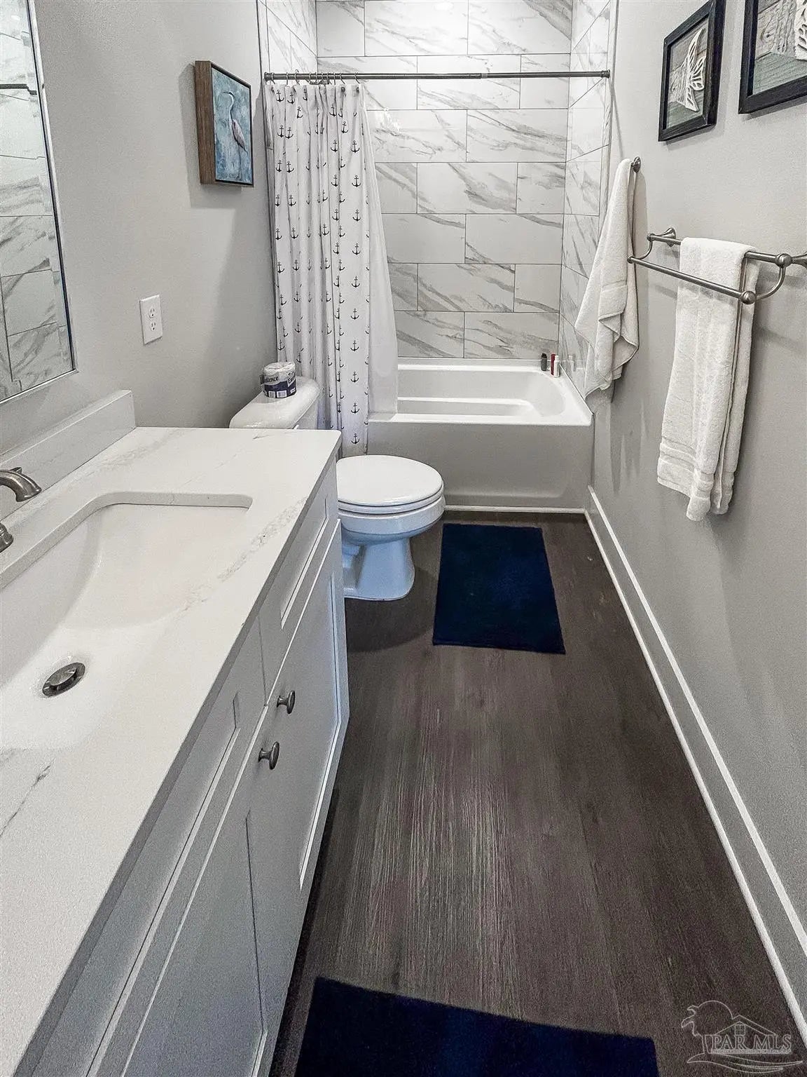 Welcome home to this stunning Coastal Cottage located in the heart of the highly desirable Garden District — one of downtown Pensacola’s fastest-growing neighborhoods. Just minutes from the energy of downtown, a short walk or bike ride connects you to everything that makes Pensacola downtown living so special — from dining and shopping to year-round community events. This charming Craftsman-style home features 3 bedrooms and 2.5 baths with an open-concept layout designed for modern living and effortless entertaining. The kitchen serves as the true centerpiece, showcasing quartz countertops, quality soft-close cabinetry with crown molding, a spacious island, and upscale finishes that elevate the space. All three bedrooms are thoughtfully situated toward the rear of the home in classic shotgun style, offering added privacy. The primary suite is a peaceful retreat complete with a trey ceiling, generous walk-in closet, and a spa-like en-suite bath featuring dual vanities with quartz countertops and a beautifully tiled walk-in shower. Two oversized guest bedrooms provide ample closet space and share a well-appointed full bath with double vanities, quartz counters, and a separate linen closet for extra storage. Luxury vinyl plank flooring flows seamlessly throughout the entire home, combining durability with timeless style. Step outside to a full-width rear porch — perfect for relaxing evenings or entertaining guests. The inviting front porch offers the ideal setting for morning coffee or unwinding with a glass of wine while enjoying the charm of the neighborhood. Embrace the downtown lifestyle and schedule your private tour today.