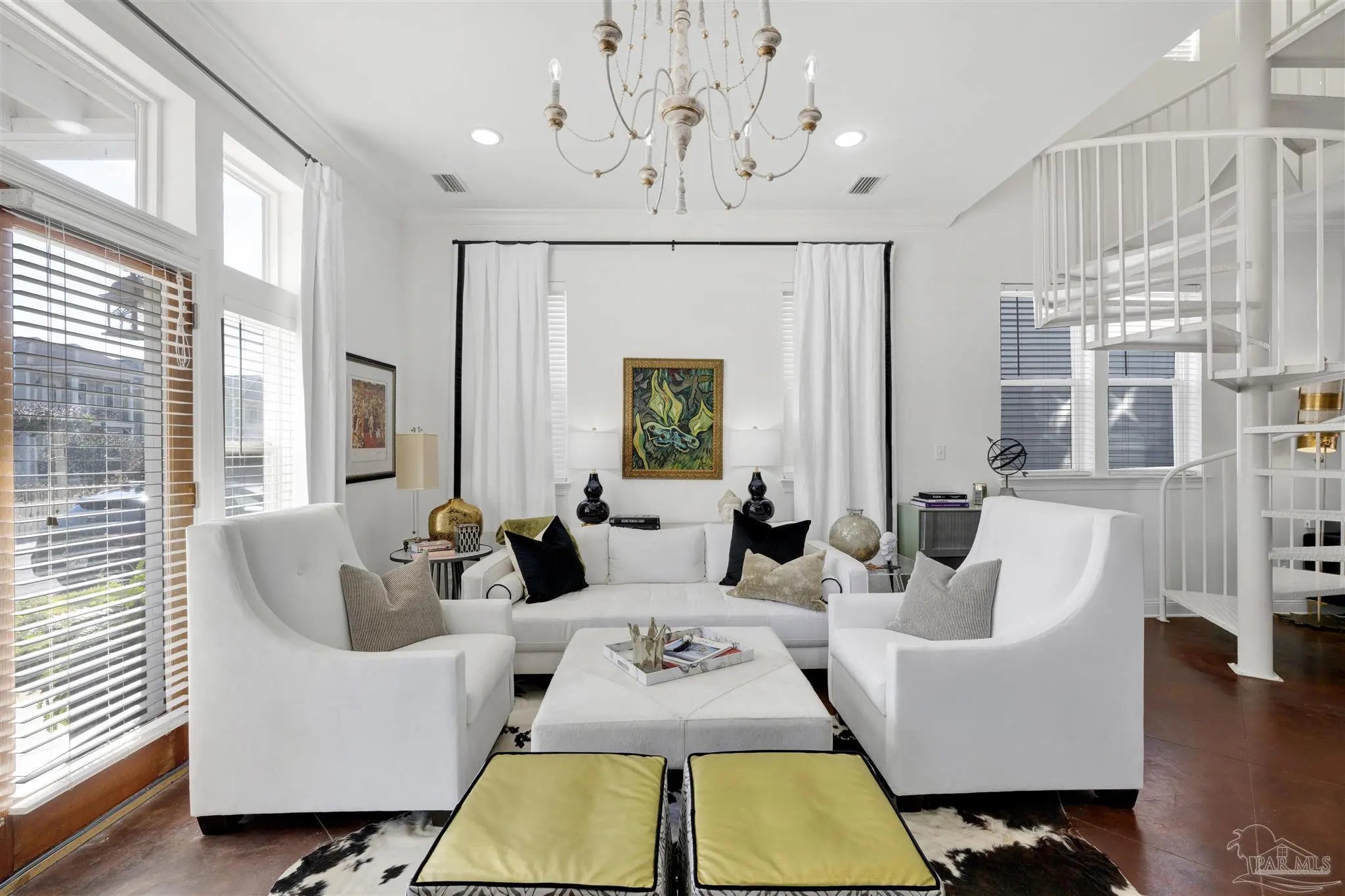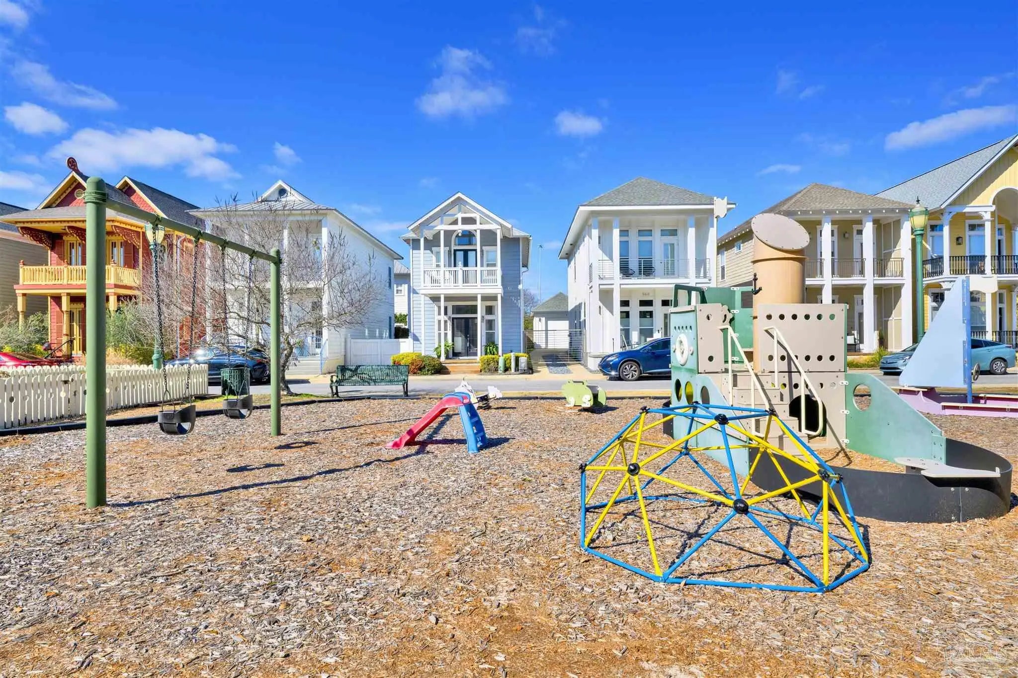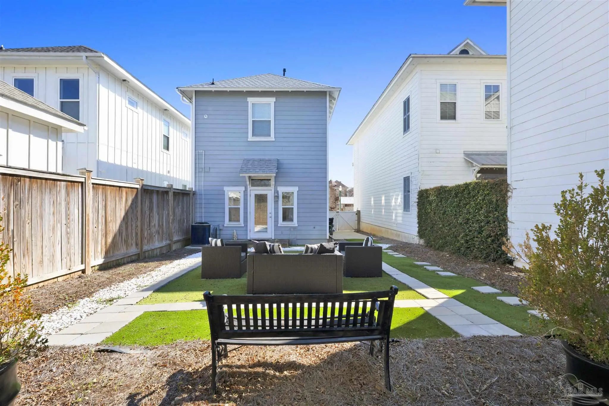 Live the vibrant downtown lifestyle in this beautifully designed 2 bedroom home located in the highly sought-after Aragon neighborhood of Pensacola. Nestled on quiet, charming streets and within walking distance to all that downtown has to offer, this home also provides a short drive to Pensacola Beach and quick access to the interstate for easy commuting. Major updates provide peace of mind, including all new appliances, a newer HVAC system, newer water heater, and a 2023 roof—making this home truly move-in ready. The lower level welcomes you with stunning stained concrete flooring and soaring high ceilings that create a modern, open feel. The living area is filled with natural light from oversized windows and features a stylish accent wall—perfect for showcasing artwork. The adjacent dining space flows seamlessly into the kitchen, where you’ll find abundant cabinetry, sleek concrete countertops, and stainless steel appliances. A convenient half bath completes the main level. Up the eye-catching spiral staircase, the primary bedroom offers wood laminate flooring, a spacious walk-in closet, and a private balcony overlooking the beautiful park just across the street—an ideal spot for morning coffee or evening relaxation. The additional bedroom, also featuring its own walk-in closet, is perfect for guests or a home office. The generously sized bathroom services both bedrooms and includes tile flooring, double vanities, a jetted tub, and a conveniently located laundry closet. Step outside to a thoughtfully designed, privacy-fenced backyard featuring pavers and low-maintenance artificial grass—creating a peaceful outdoor retreat in the heart of the city. Enjoy style, comfort, and convenience all in one exceptional downtown home!