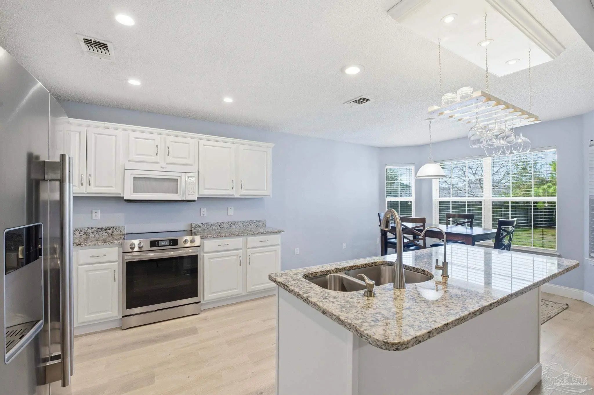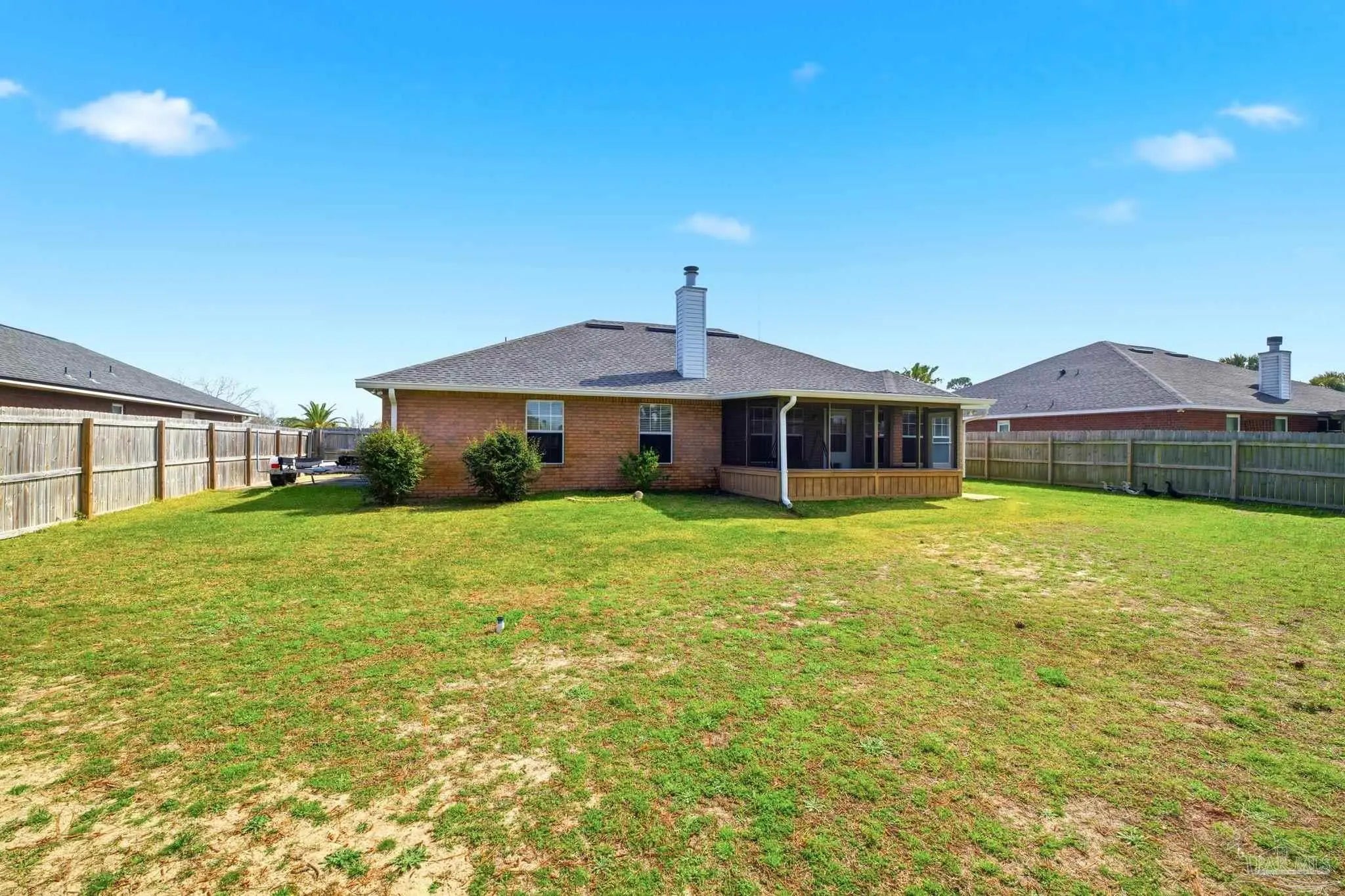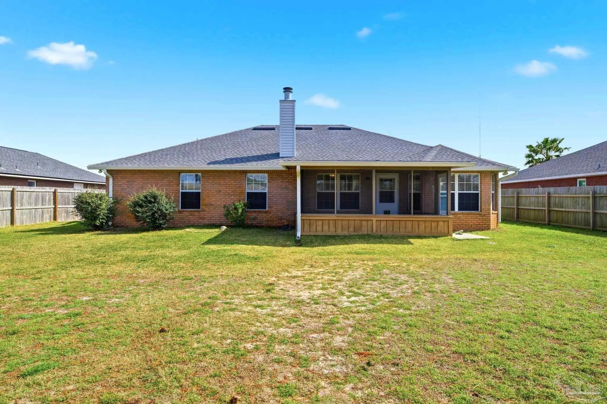 Located in an established neighborhood near the new Soundside High School currently under construction, this 3-bedroom, 2-bath home offers comfort and convenience in desirable Gulf Breeze. The open floor plan provides a spacious flow between the living, dining, and kitchen areas—perfect for everyday living and entertaining. The kitchen features updated countertops, refrigerator, stove and dishwasher giving the heart of the home a fresh, modern feel. Step outside to enjoy a large backyard and covered porch, ideal for relaxing evenings or weekend gatherings. Durable brick siding, upgraded garage door, and a two-car garage with an additional parking area add both curb appeal and functionality. Sidewalks and underground utilities are added neighborhood features. A fantastic opportunity to own in desirable Gulf Breeze.