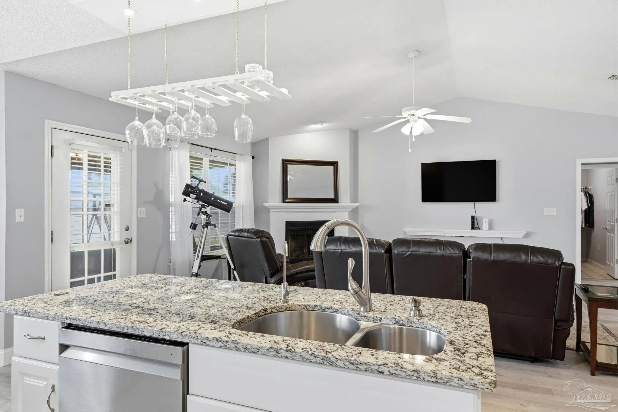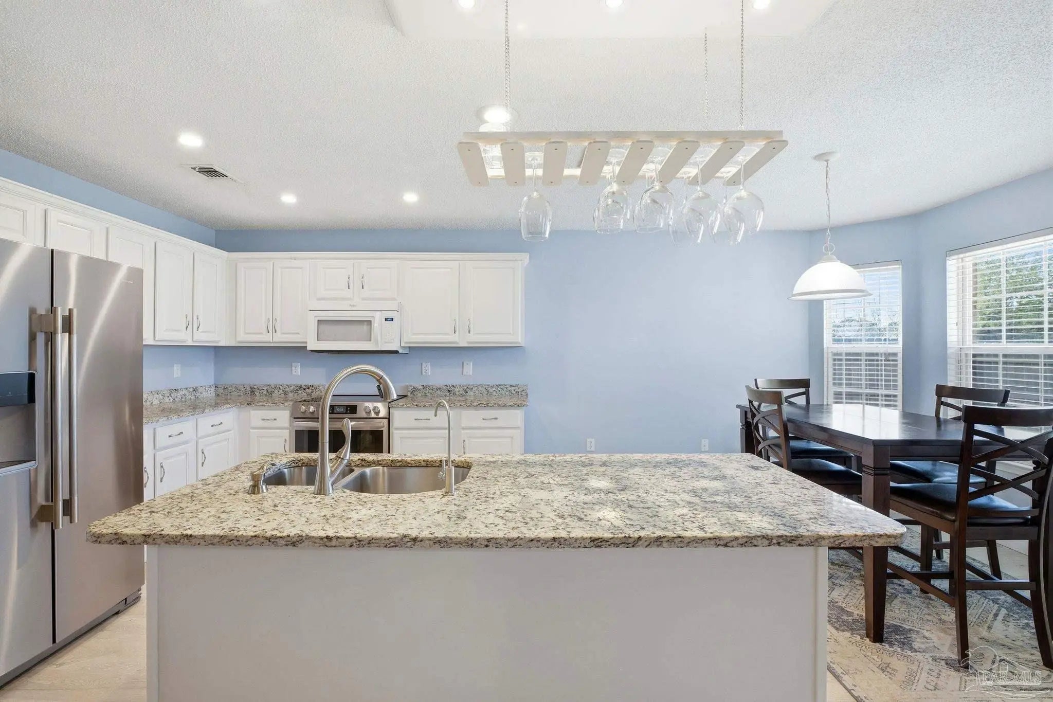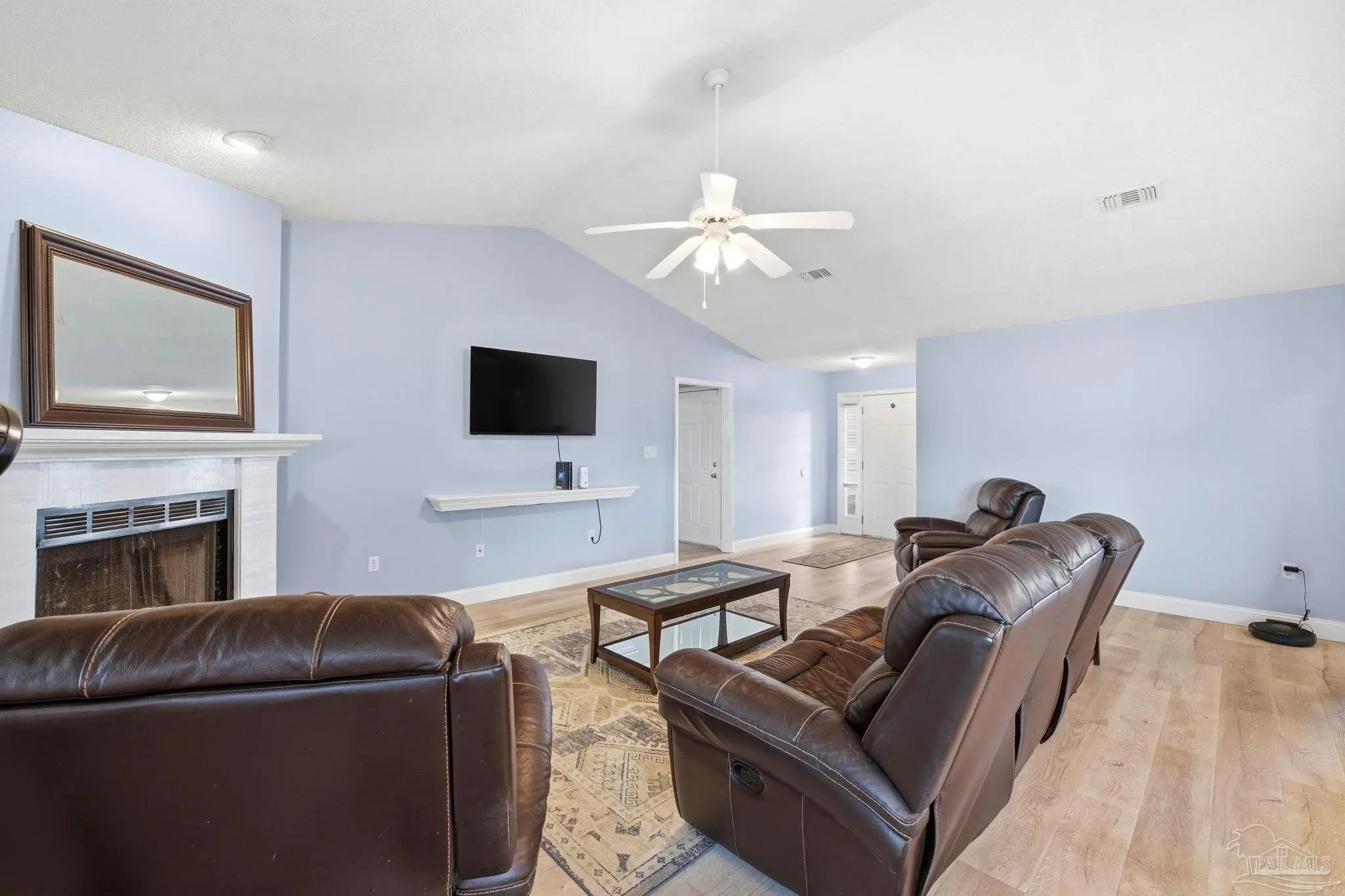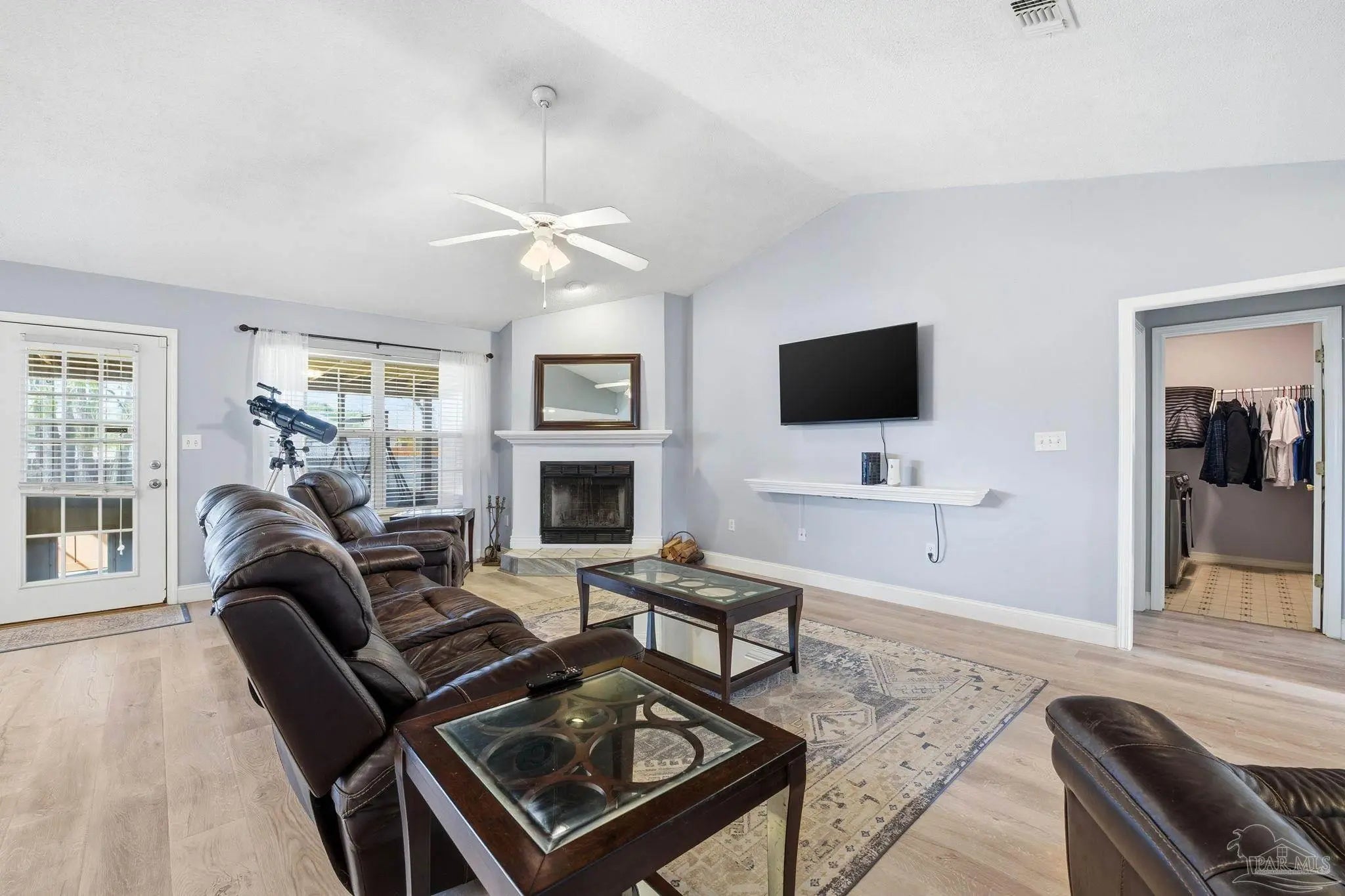 Located in an established neighborhood near the new Soundside High School currently under construction, this 3-bedroom, 2-bath home offers comfort and convenience in desirable Gulf Breeze. The open floor plan provides a spacious flow between the living, dining, and kitchen areas—perfect for everyday living and entertaining. The kitchen features updated countertops, refrigerator, stove and dishwasher giving the heart of the home a fresh, modern feel. Step outside to enjoy a large backyard and covered porch, ideal for relaxing evenings or weekend gatherings. Durable brick siding, upgraded garage door, and a two-car garage with an additional parking area add both curb appeal and functionality. Sidewalks and underground utilities are added neighborhood features. A fantastic opportunity to own in desirable Gulf Breeze.