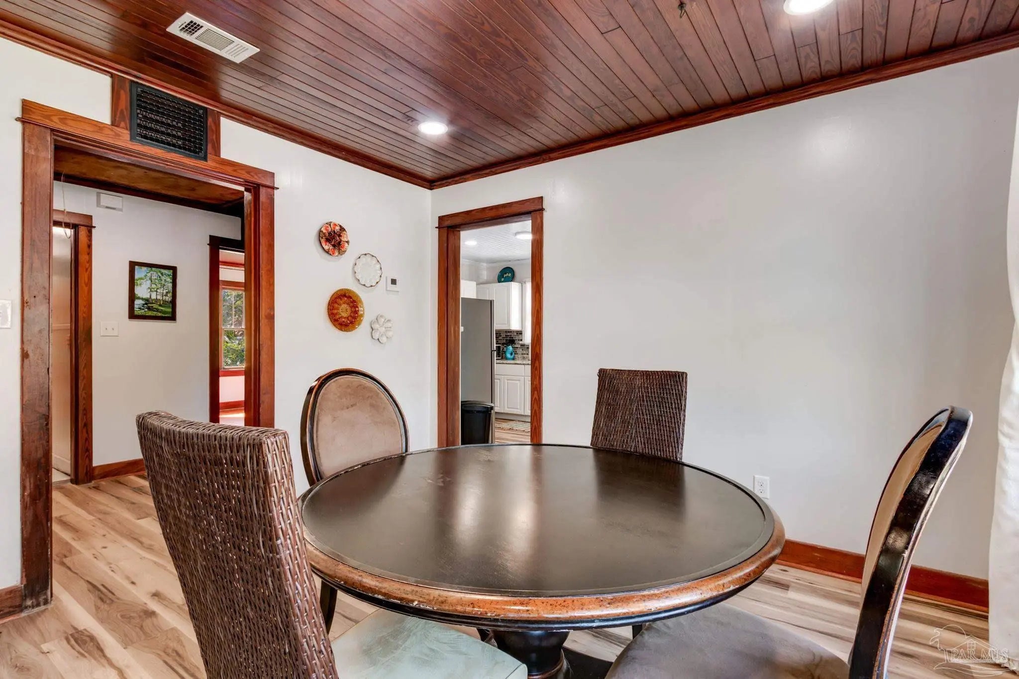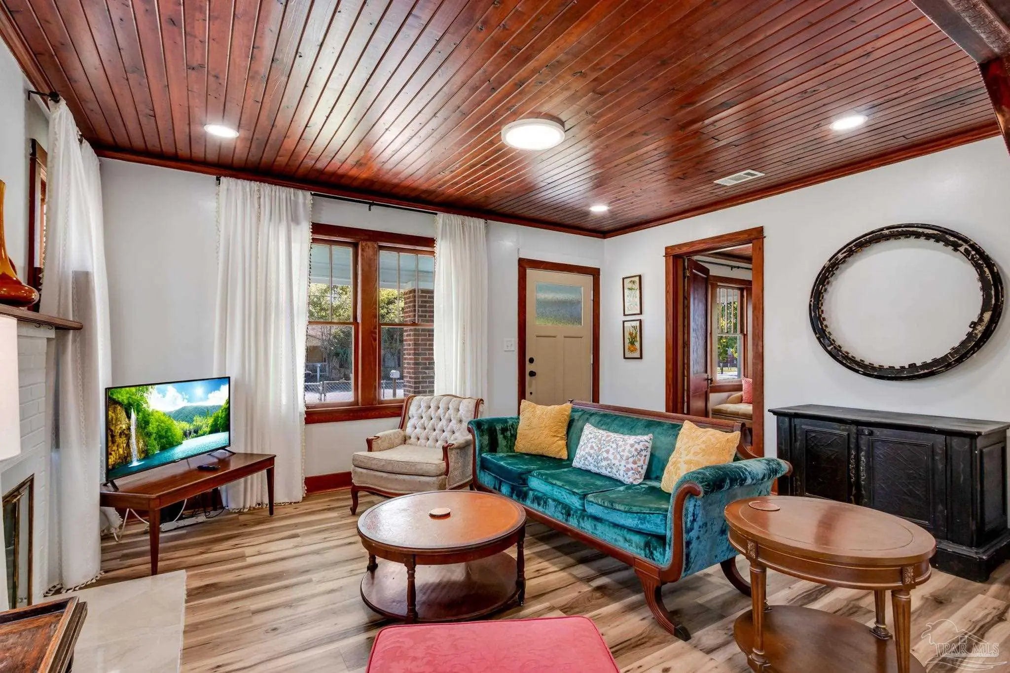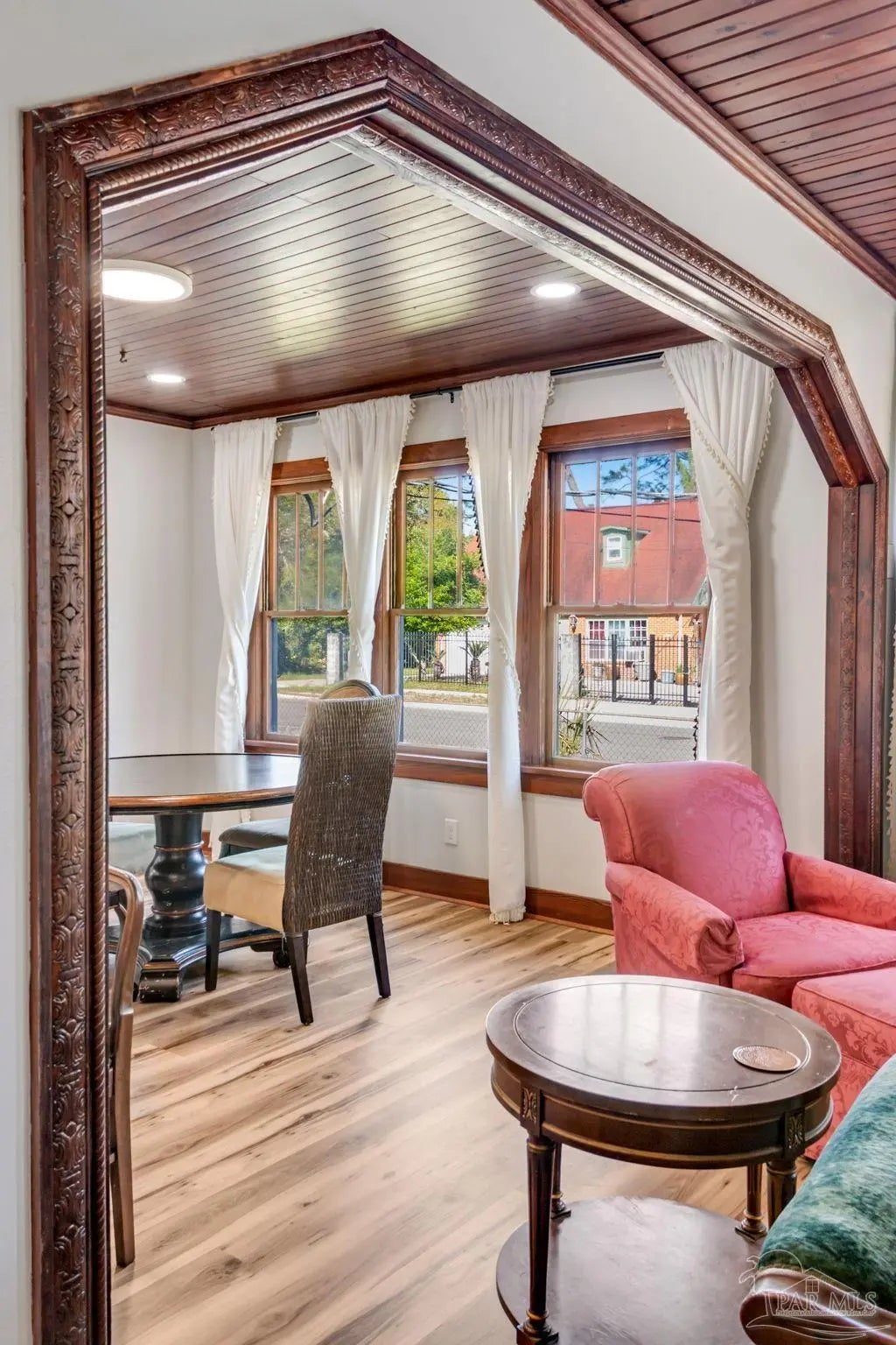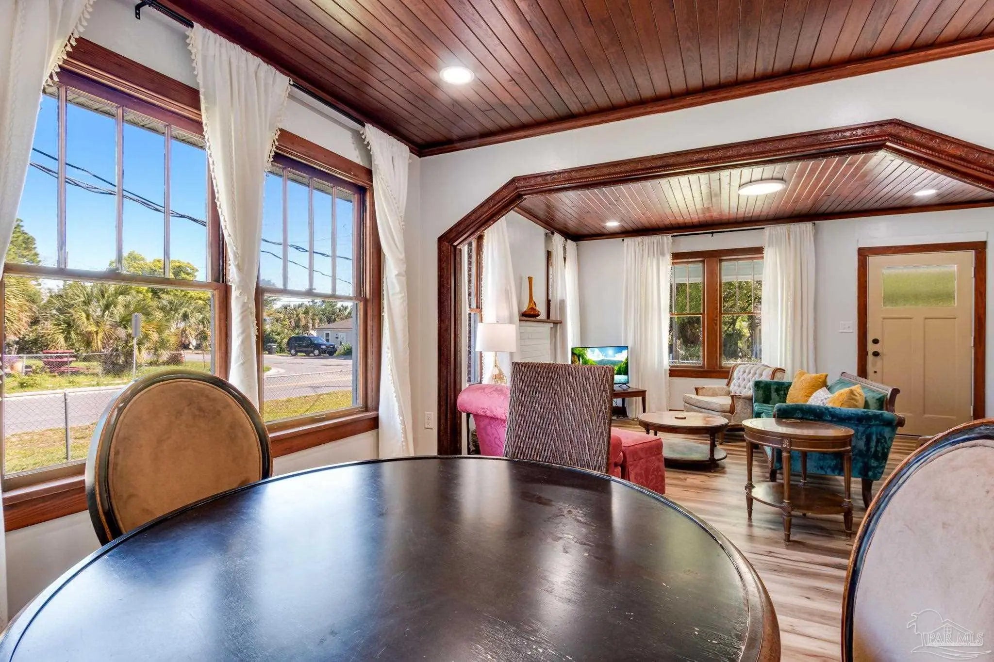 BACK ON THE MARKET! This beautifully maintained home blends historic charm with thoughtful updates throughout. Rich wood trim, original architectural details, and stunning wood plank ceilings create an inviting atmosphere you don’t often find. The spacious living and dining areas feature gorgeous millwork, wide cased openings, and abundant natural light pouring through oversized windows. Hardwood floors and detailed trim work add warmth and elegance, while recessed lighting provides a modern touch. The bedroom showcases beautiful hardwood flooring and large windows that flood the space with natural light, creating a bright and airy retreat. The updated kitchen offers white cabinetry, a stylish tile backsplash, stainless steel appliances, and a double-basin sink overlooking the yard. Modern finishes blend seamlessly with the home’s classic style. If you appreciate craftsmanship, character, and a home that stands apart from cookie-cutter construction, this one is a must-see. Schedule your showing today! MOTIVATED SELLER! Property is on a rental program. Small desk and game table does not convey...