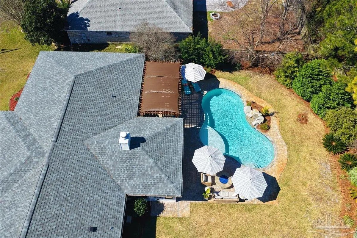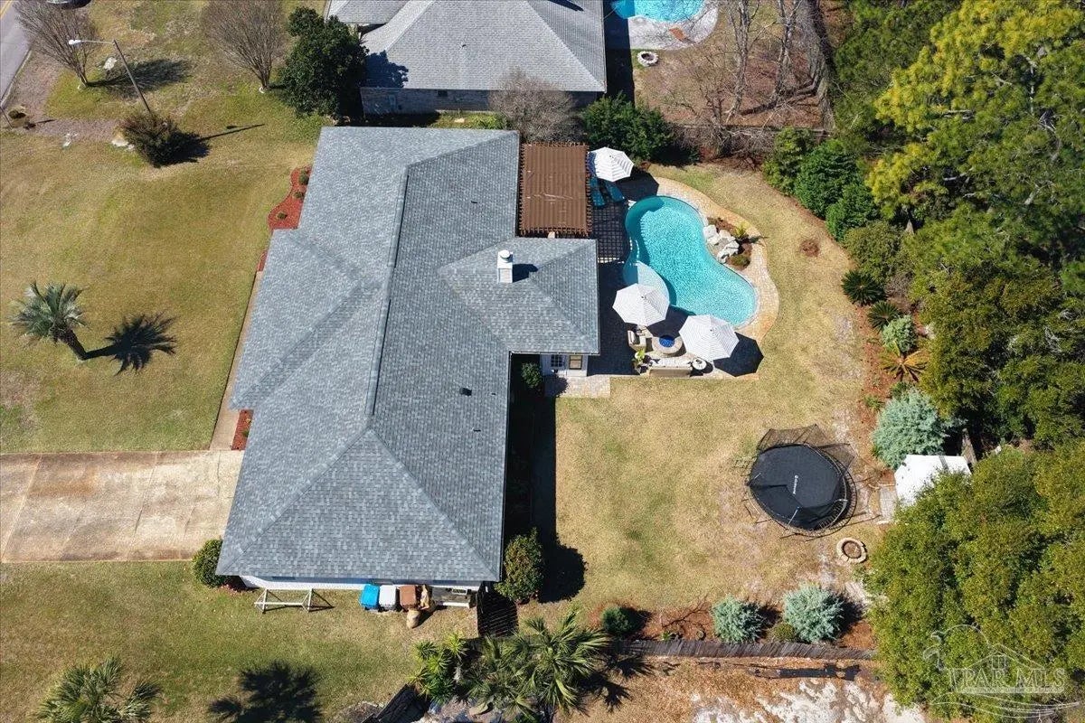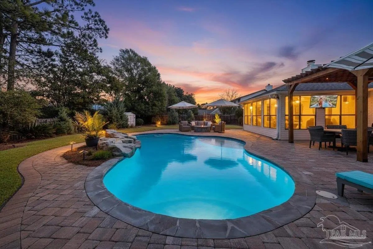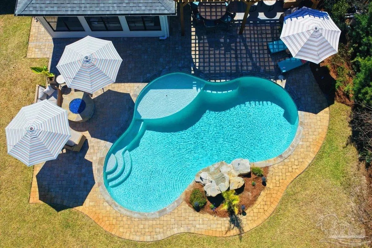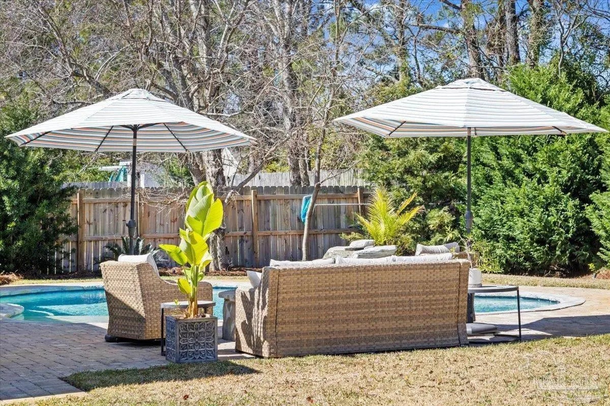 **Open House Saturday February 28th and Sunday March 1st, 11 AM - 2 PM**. Freshly updated, upgraded and move-in ready, this solidly constructed BRICK 4-bed, 3-bath POOL home on 0.34 acres in Tiger Point combines modern systems with an entertainer’s backyard. Recent improvements: new roof (2020), HVAC (2021), water heater (2024), salt cell (2024) and new pool pumps (2025), plus remodeled master bath and updated guest baths with new vanities, fixtures and tiled showers. A welcoming front porch greets all and opens into bright, light-filled formal living and dining rooms; the kitchen features a breakfast bar, oversized built-in pantry and flows into the large den for easy daily living. The den is highlighted with a high beamed ceiling and a gas fireplace. The spacious master suite has a large bay window overlooking the patio and pool and a recently renovated bath with a large tiled shower and updated vanity. One bedroom and full bath are separately located and ideal as a guest suite. The backyard is a private resort-style oasis: salt-water gunite pool with sun shelf and waterfall, covered patio for outdoor dining, natural-gas built in fire pit, and low-maintenance custom landscaping served by a well and irrigation system — perfect for entertaining or relaxed living. Located in desirable, golf-cart-friendly Tiger Point with quick access to the famed Pointe Restaurant and Bar, Tiger Point Park, Publix, Lowe’s and other shopping and dining. Zoned for TOP RATED SCHOOLS: Oriole Beach Elementary, Gulf Breeze Middle and High School, and just 9 miles to Pensacola Beach with easy access to shopping, hospitals and downtown Pensacola.