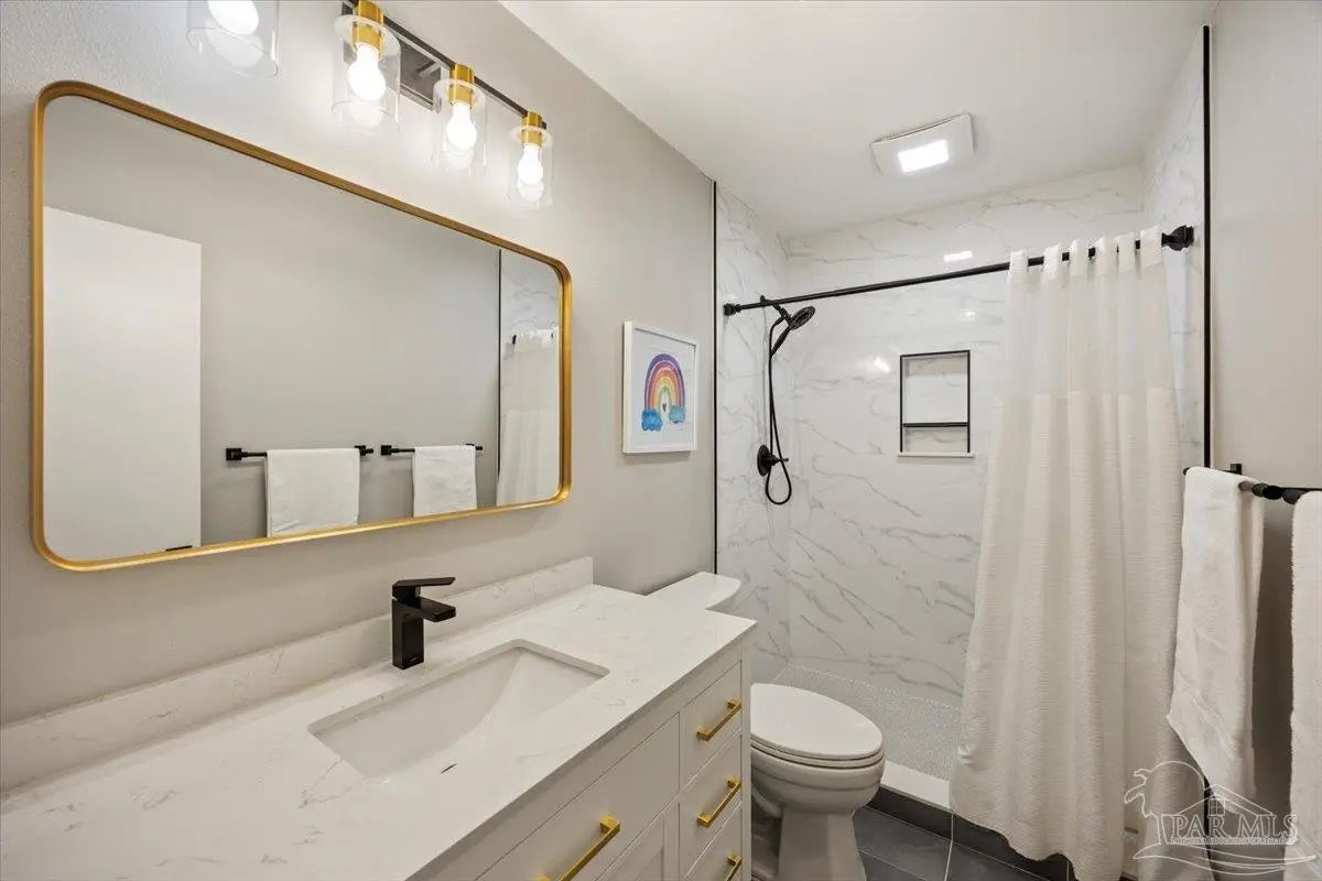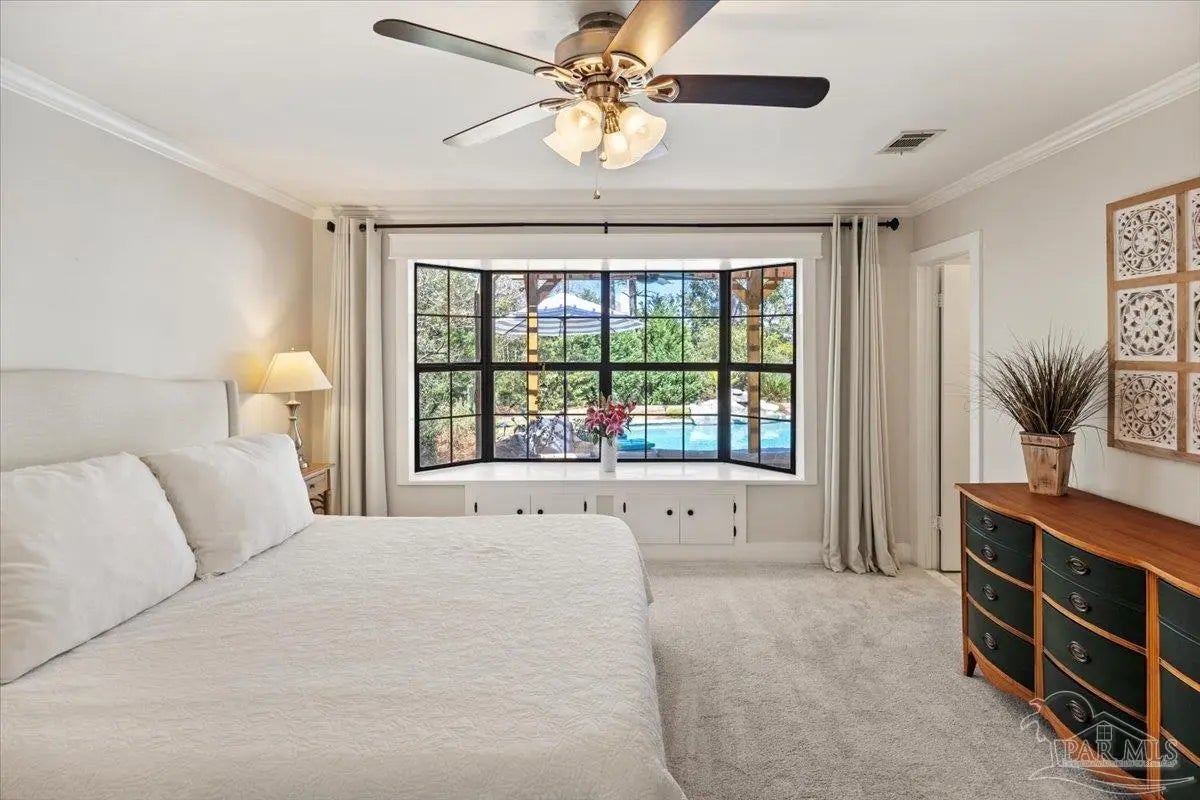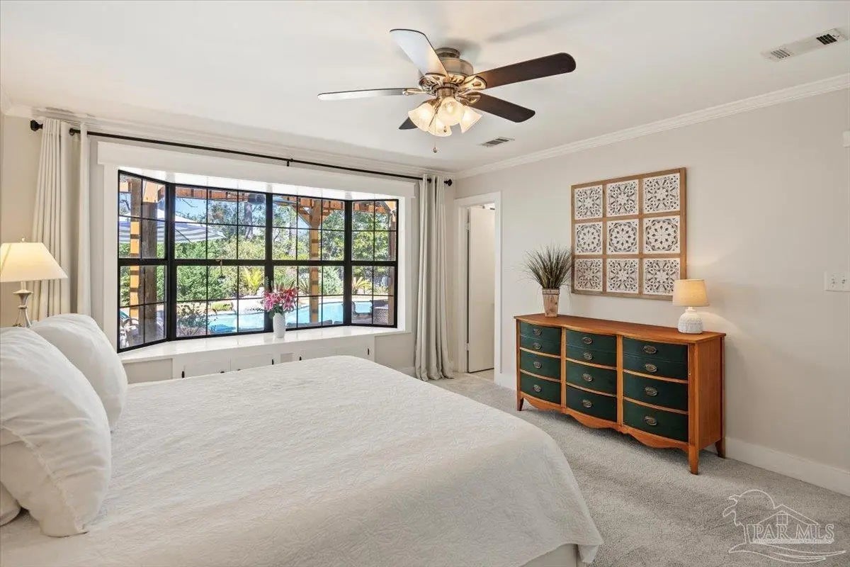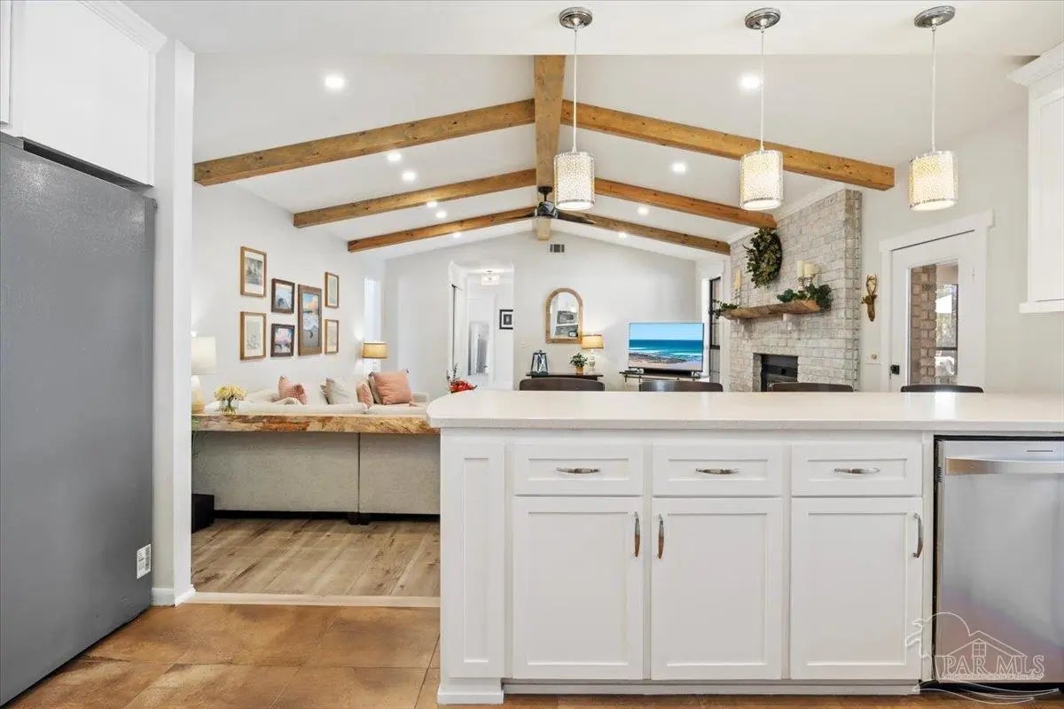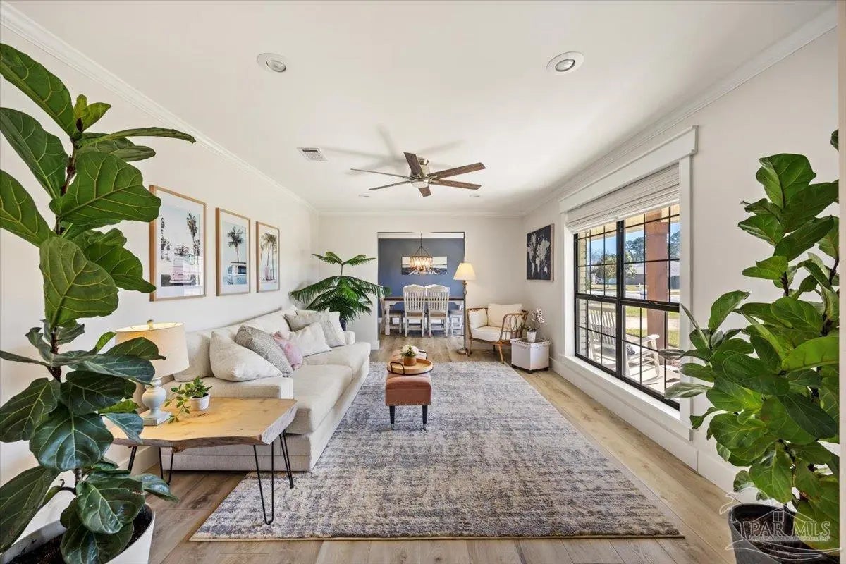 **Open House Saturday February 28th and Sunday March 1st, 11 AM - 2 PM**. Freshly updated, upgraded and move-in ready, this solidly constructed BRICK 4-bed, 3-bath POOL home on 0.34 acres in Tiger Point combines modern systems with an entertainer’s backyard. Recent improvements: new roof (2020), HVAC (2021), water heater (2024), salt cell (2024) and new pool pumps (2025), plus remodeled master bath and updated guest baths with new vanities, fixtures and tiled showers. A welcoming front porch greets all and opens into bright, light-filled formal living and dining rooms; the kitchen features a breakfast bar, oversized built-in pantry and flows into the large den for easy daily living. The den is highlighted with a high beamed ceiling and a gas fireplace. The spacious master suite has a large bay window overlooking the patio and pool and a recently renovated bath with a large tiled shower and updated vanity. One bedroom and full bath are separately located and ideal as a guest suite. The backyard is a private resort-style oasis: salt-water gunite pool with sun shelf and waterfall, covered patio for outdoor dining, natural-gas built in fire pit, and low-maintenance custom landscaping served by a well and irrigation system — perfect for entertaining or relaxed living. Located in desirable, golf-cart-friendly Tiger Point with quick access to the famed Pointe Restaurant and Bar, Tiger Point Park, Publix, Lowe’s and other shopping and dining. Zoned for TOP RATED SCHOOLS: Oriole Beach Elementary, Gulf Breeze Middle and High School, and just 9 miles to Pensacola Beach with easy access to shopping, hospitals and downtown Pensacola.