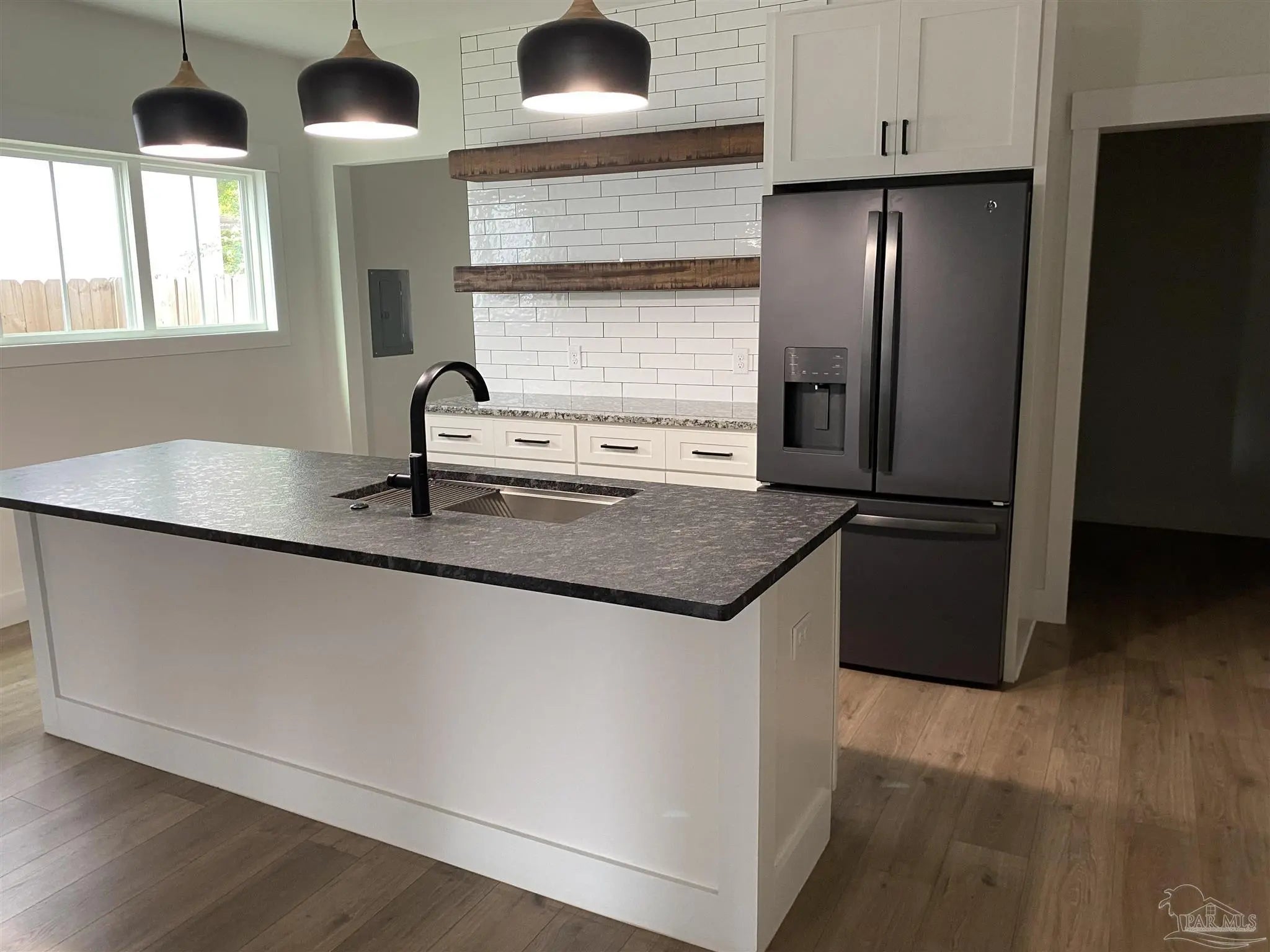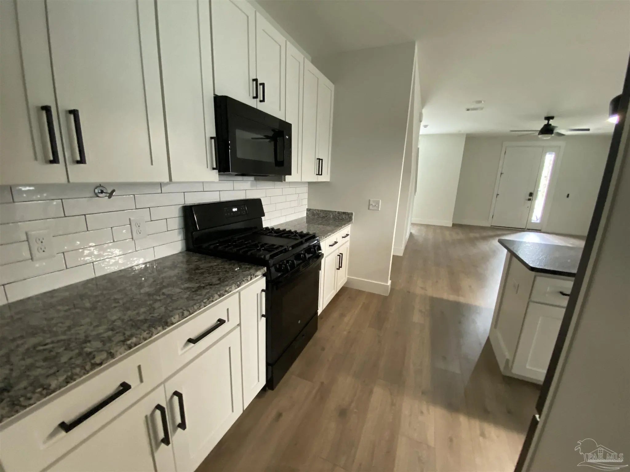 Welcome to this gorgeous, fresh-construction home built in 2023. This property showcases a striking exterior design & beautiful curb appeal, carefully crafted for those who appreciate sophisticated style & modern, energy-efficient living. Upon arrival, a generous front porch invites you to sit & relax, while the rear patio & fully fenced backyard offer a private, secure oasis for year-round outdoor living & weekend entertaining. Step inside to discover a bright & airy open-concept layout enhanced by nine-foot ceilings on both floors & stunning, neutral LVP flooring throughout. The interior’s crisp black & white accent colors provide the perfect backdrop for any decorating style. Downstairs living, dining, & kitchen areas flow seamlessly together to create an ideal space for gatherings. The chef’s kitchen is a true focal point with 3cm granite countertops, including a massive kitchen island finished with a textured leathered granite top & comes fully equipped with premium GE black slate appliances including a gas stove. The main floor also includes a clever flex space for a dedicated desk or bar area tucked underneath the stairs. Just off the kitchen, a pocket door reveals a very roomy laundry & pantry combo with the washer & dryer included. A stylish 1/2 bath is located off the back hallway leading to the backyard, making indoor-outdoor hosting an absolute breeze. The 2nd floor is dedicated to rest & relaxation, offering a roomy hall closet for extra storage between two private bedroom suites. The amazing owner’s suite features a large walk-in closet & a spa-like en-suite bathroom complete with a sprawling custom-tiled shower & a double-sink vanity. The second bedroom is equally impressive & private, offering its own attached en-suite bathroom & a walk-in closet. This home was built with premium low maintenance upgrades and incredible energy savings with spray foam. off street parking complete with Tesla universal wall charger. Buyer concessions negotiable.