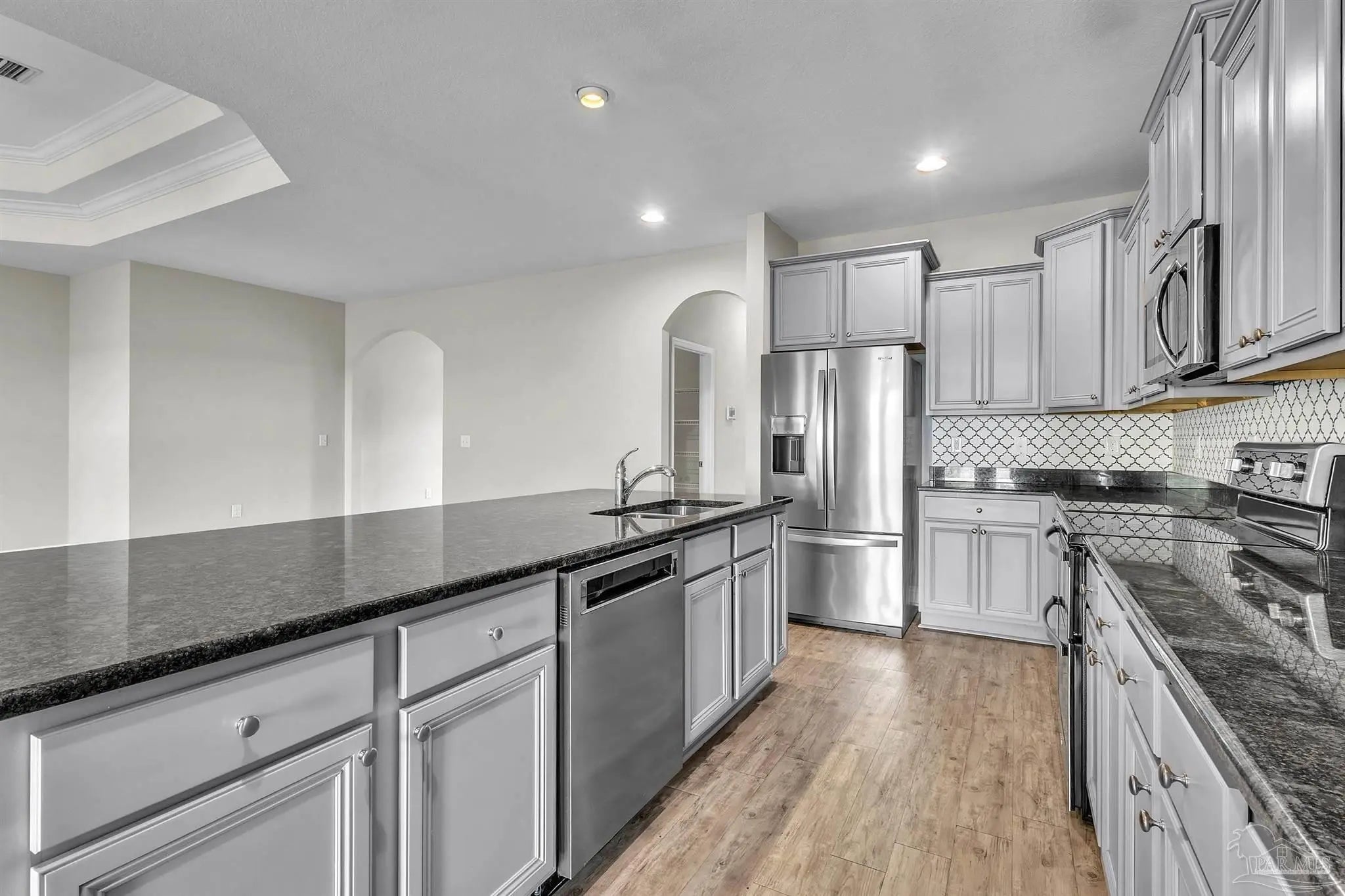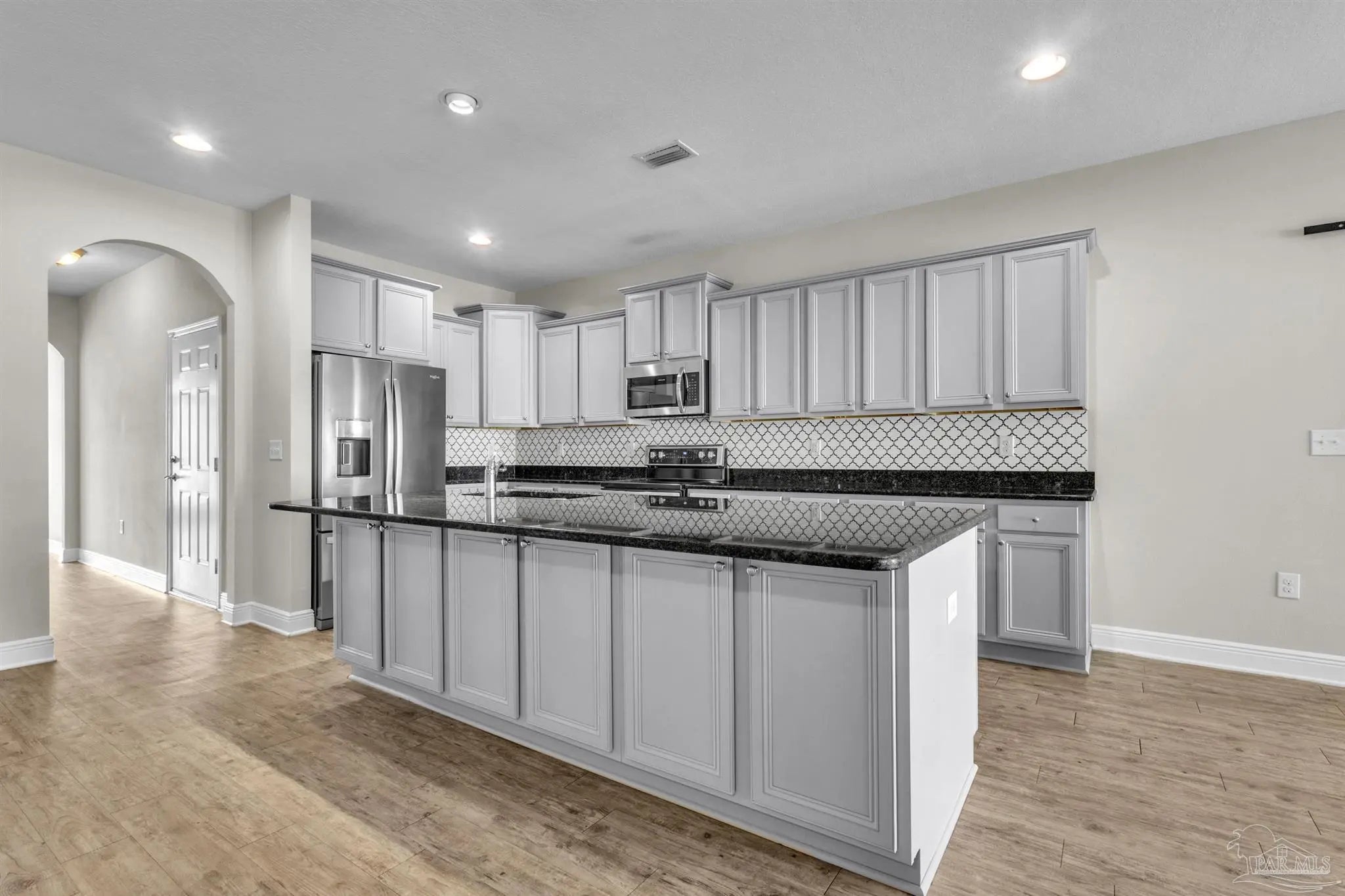 Stunning 5 Bedroom Home with Paid-Off Solar in Desirable Hammer Smith Community Welcome to this beautiful McKenzie floor plan offering 5 bedrooms and 3 full baths with a spacious split and open layout designed for comfortable everyday living and effortless entertaining. Built in 2017, this well-maintained home is located in the quiet Hammer Smith community with no through traffic, providing a peaceful setting while still being conveniently located just minutes from schools, hospitals, shopping, dining, and other local amenities. Enjoy relaxing on the covered front porch or hosting gatherings on the covered back patio overlooking the fully fenced backyard. Step inside the grand foyer where you’ll find a formal dining room on one side and a versatile office, study, or additional living space on the other. The home opens into a spacious great room that flows seamlessly into the kitchen with quick access to the covered patio, creating a functional and inviting atmosphere. The large kitchen features granite countertops, a center island with breakfast bar, stainless steel Frigidaire appliances including range, microwave, and dishwasher, a cooktop with vent, wall oven, and a spacious pantry, making it ideal for both daily living and entertaining. The private owner’s suite offers direct patio access and includes a large walk-in closet, dual vanities with granite countertops, a linen closet for additional storage, a relaxing garden tub, and a separate five-foot tiled shower. Two additional bedrooms are positioned toward the front of the home, with two more located toward the back, providing flexibility and privacy for family or guests. All bedrooms are generously sized. An added bonus is the fully paid-off solar system, offering enhanced energy efficiency and potential savings on monthly utility costs while adding long-term value to the home. This thoughtfully designed 2017 home combines modern features, functional layout, and a prime location, making it a must-see.