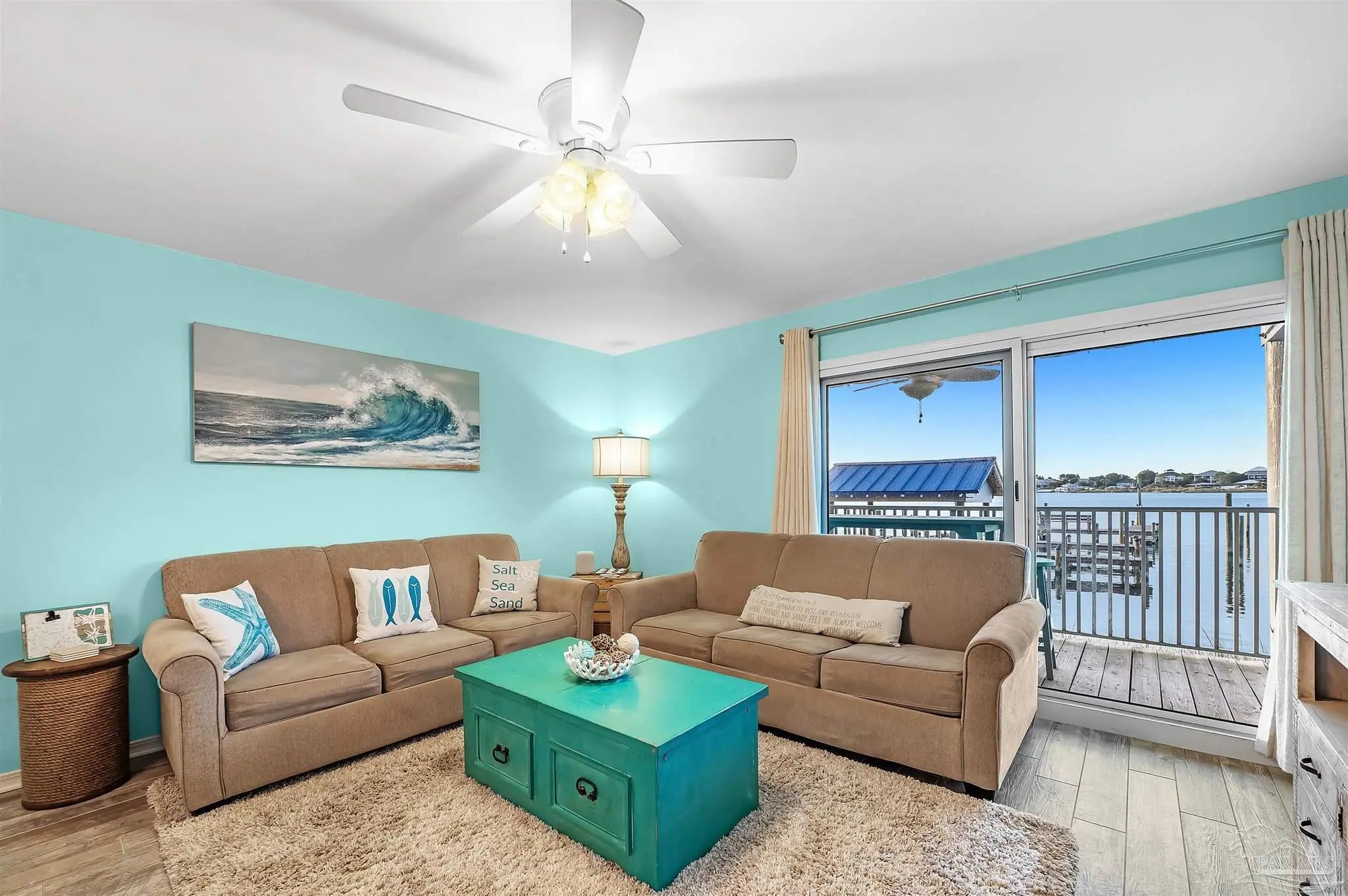 Welcome to your waterfront retreat on Perdido Key, where this spacious and beautifully decorated 3BR/2BA condo delivers the best of boat + beach living. Located on the first floor, it features a direct view of the association's boat docks and the peaceful river, creating a true coastal lifestyle right outside your door. Renovated in 2018, the condo is in excellent condition with a modern, coastal design. The kitchen offers stainless steel appliances, marble countertops, a tasteful backsplash, and porcelain tile faux-wood flooring. The bathrooms are finished with marble-topped vanities and classic subway-tile tub/shower surrounds. Imported handmade solid-wood furnishings may convey, making this an easy move-in or turn-key vacation option.
