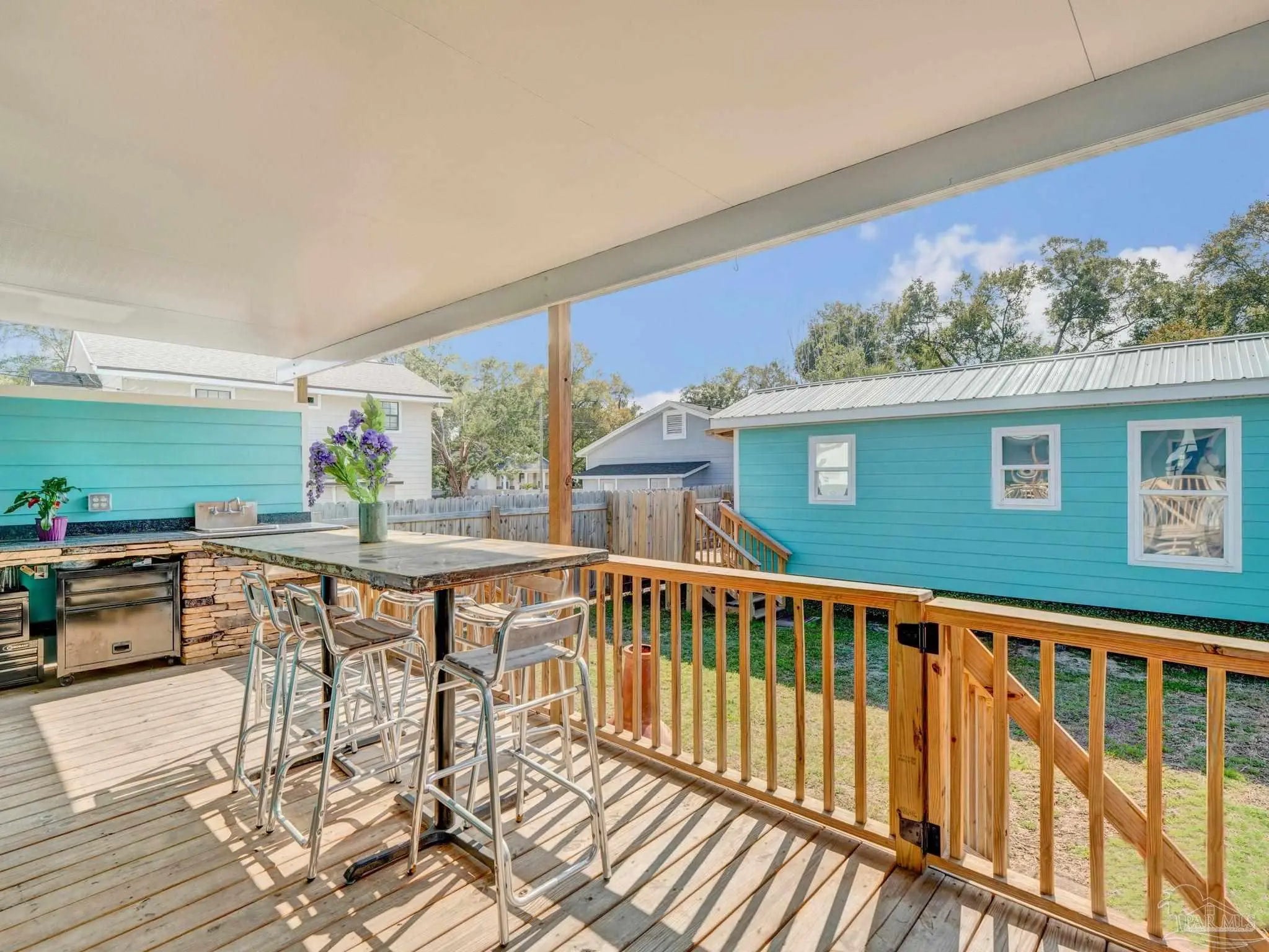 New Price - Exceptional Downtown Pensacola, Single-Family, or three-separate rental income units! Live in one, and rent the others. No HOA. Charming three-bedroom, two-bathroom cottage with 1,780 sq feet, full in-law suite, and bonus back-yard bungalow with its own porch, BBQ and table for two! Enjoy your Perfect Northwest Florida Cottage with investment potential to live as three units or multi-gen living for the family. Inside you'll find gorgeous pine hardwoods, vintage black-and-white hexagonal mosaic tile flooring, inviting foyer with mid-century library nook. Energy efficiency throughout with double-pane storm-rated windows, spray foam insulation, tankless water heater, architectural shingle gable roof, whole house humidifier, multiple climate-control units for maximum heating and cooling, high ceilings, and tinted windows for added energy efficiency. Inside this thoughtful mid-century coastal gem, you'll be pleased to see historical preservation, married with modern comfort and warmth. Coveted gas range with griddle, two gas fireplaces, and enhanced outdoor space with kitchen is perfect for entertaining. The small yard, garden storage, and secure gate for driveway parking for four cars is a delight. Park the boat and bring the toys. Walking distance to Downtown Pensacola, Blue Wahoo's Stadium, marina, pier, restaurants, bars, spas, boutiques, parks, museums, and more. Investors and homeowners alike - the property offers exceptional flexibility and ease to live as one or multiple units. Desirability for STR, LTR, live-work, creative use, or a homeowner seeking passive income. Detached bonus bungalow accommodates office, flex space, or atelier. Welcome home to Downtown Pensacola, be ready to walk to all the action, events, festivals, games, and local hot spots. Information provided is deemed reliable but not guaranteed. Buyer and buyer's agent should verify all information, including, measurements, information and details.