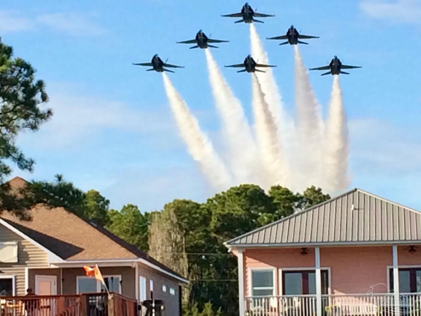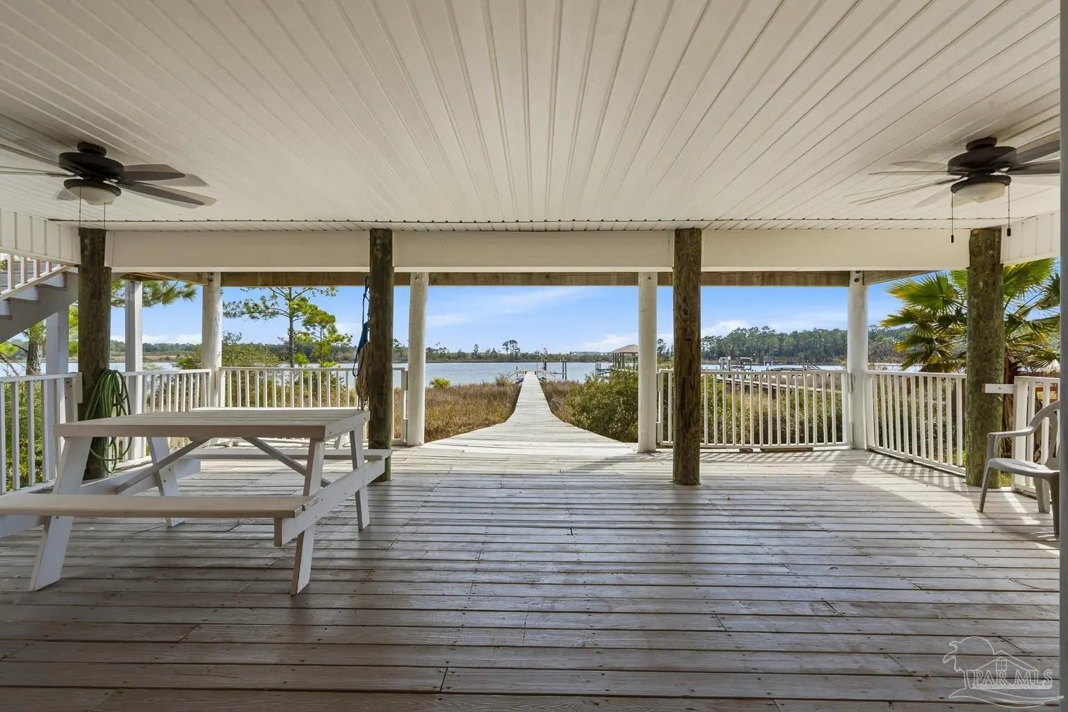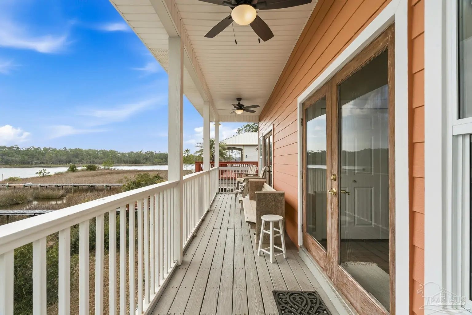 Custom-Built Waterfront Retreat on Bayou Grande -One of the Best Spots to watch the U.S. Navy Blue Angels on the Bayou! This home features a Dock complete with Boat lift & beachfront area for all the fun in the sun. Experience coastal living at its finest in this beautifully crafted 3-bedroom, 3-bath waterfront home with a versatile bonus room that can easily serve as a 4th bedroom, downstairs primary suite, guest quarters, or an entertainment space tailored to your needs. This thoughtfully designed home features high ceilings and solid surface flooring throughout, including beautiful hardwood and tile for durability, easy maintenance, and timeless coastal style. The open-concept living and kitchen area is built for entertaining, complete with solid surface countertops, stainless steel appliances, and expansive gathering space perfect for hosting family and friends. Step outside to your covered back deck, where you can relax and take in breathtaking sunsets over the bayou — plus enjoy a front-row seat to the Blue Angels practice flights right from your backyard. Water enthusiasts will love the private boat dock with boat lift and your own sandy beach area, ideal for launching kayaks, docking your boat, or simply enjoying the shoreline. Located on Bayou Grande, you’ll have easy boat access to the Bay and Pensacola Beach & convenient to NAS Pensacola, Perdido Key & Downtown Pensacola.