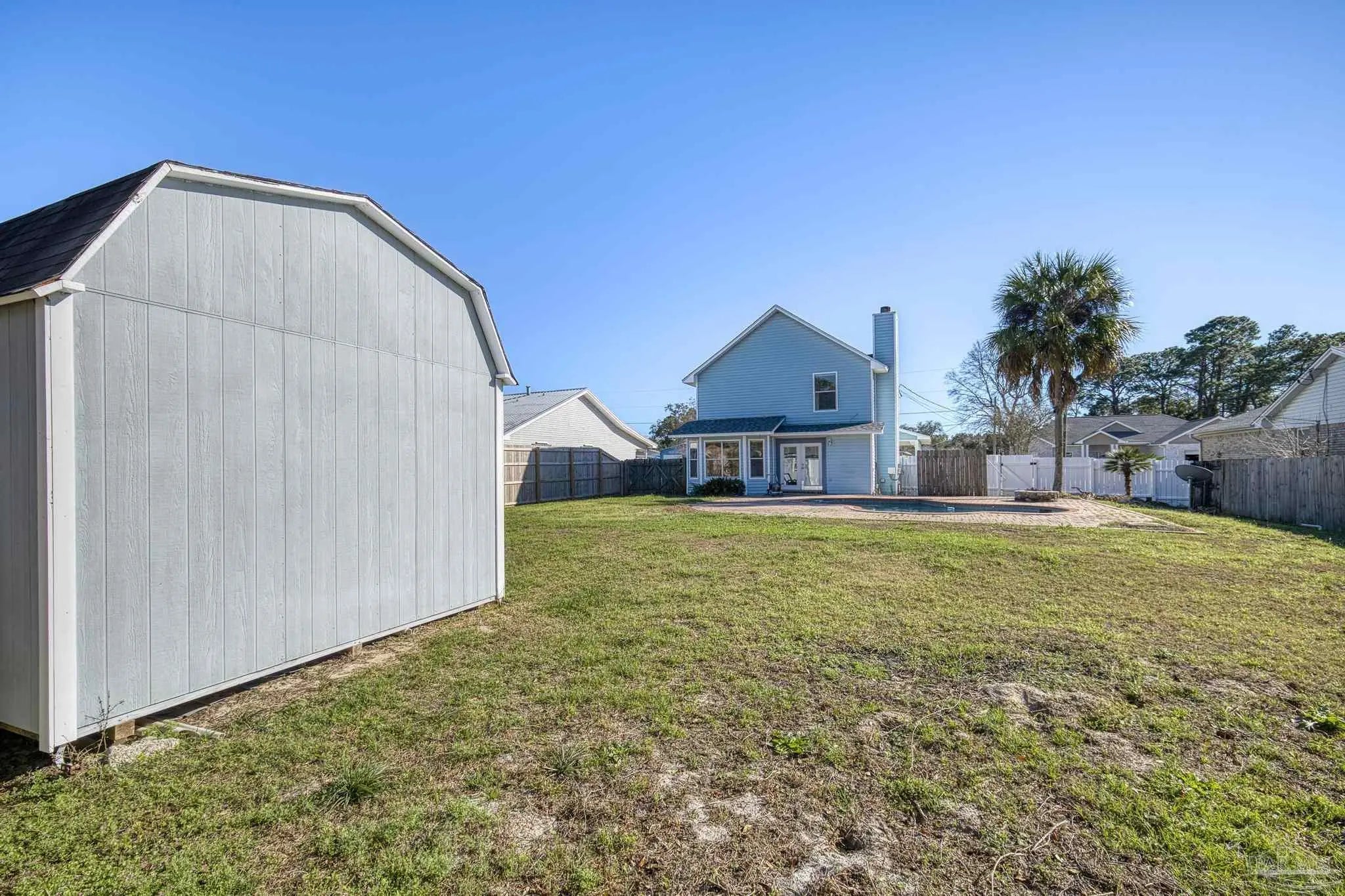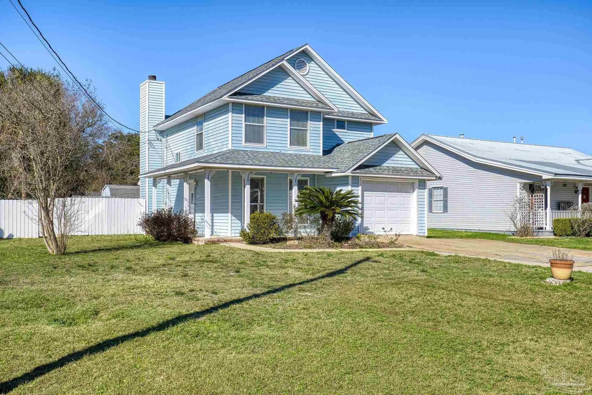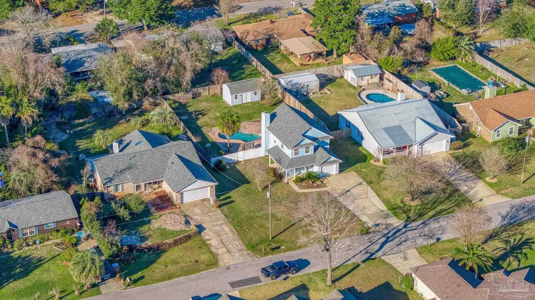 Located in the desirable coastal community of Gulf Breeze, this well-maintained home offers 3 bedrooms, 2.5 bathrooms, and 1,608 square feet of comfortable living space on a spacious .26-acre lot. It is just under two minutes from the Oriole Beach Boat Ramp, making it ideal for boating and water enthusiasts. Tile flooring extends throughout the main living areas, providing durability and easy upkeep. The kitchen showcases warm wood cabinetry, an accent backsplash, a center island, and a cozy breakfast nook. These spaces flow seamlessly into the primary living and dining areas, creating an inviting layout perfect for both everyday living and entertaining. The main living room is anchored by a charming wood-burning fireplace that adds character and warmth to the home. All bedrooms are thoughtfully situated on the second floor, offering privacy from the main gathering spaces. Recent updates include a 2023 roof and a 2026 hot water heater, providing added peace of mind for the next owner. HVAC 2021. Step outside to enjoy your private backyard retreat featuring a beautiful in-ground pool, an open deck for lounging, a fully fenced yard, and a firepit area ideal for relaxing evenings. A nicely sized storage shed adds functionality, offering ample space for tools, lawn equipment, or recreational gear—making this property as practical as it is inviting.