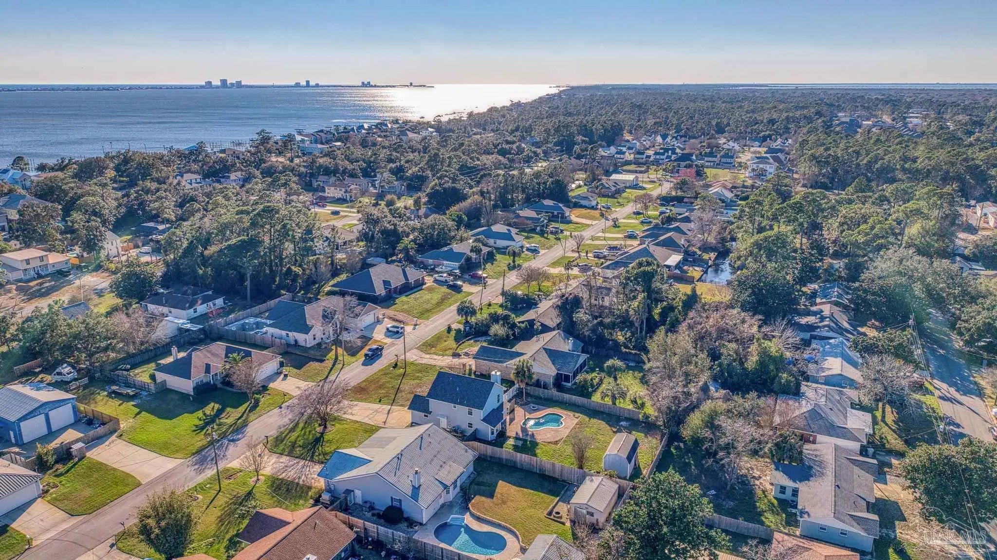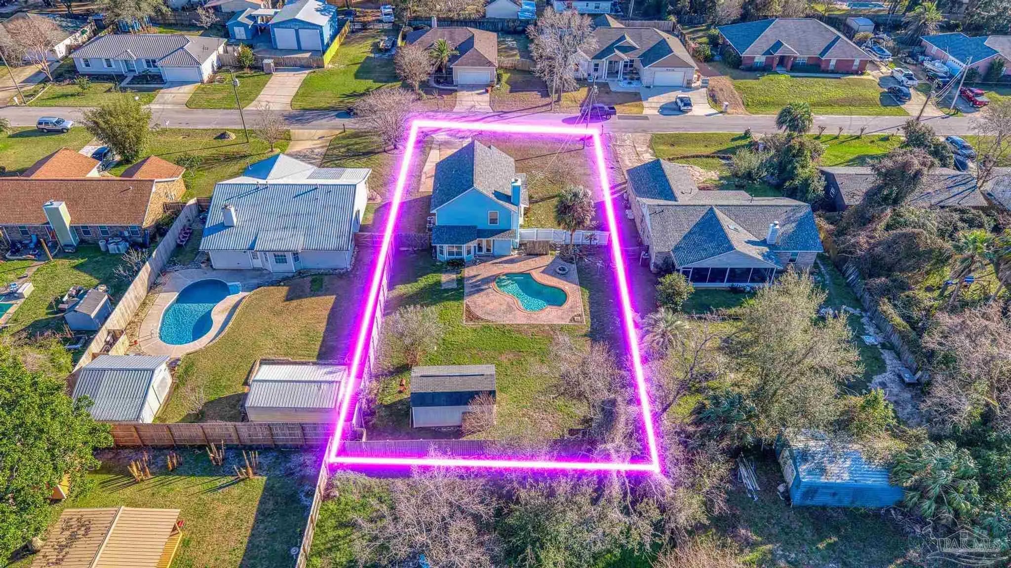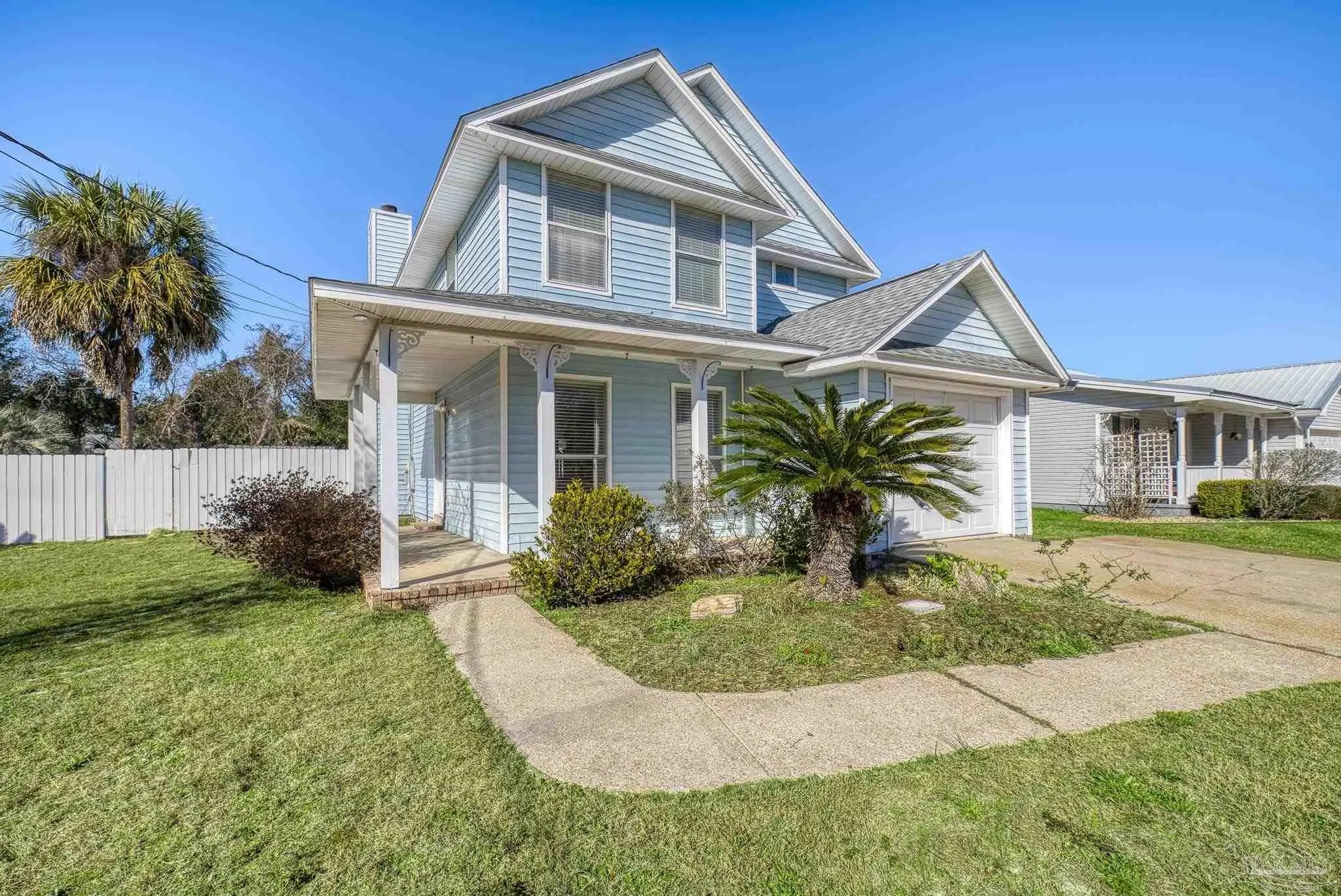 Located in the desirable coastal community of Gulf Breeze, this well-maintained home offers 3 bedrooms, 2.5 bathrooms, and 1,608 square feet of comfortable living space on a spacious .26-acre lot. It is just under two minutes from the Oriole Beach Boat Ramp, making it ideal for boating and water enthusiasts. Tile flooring extends throughout the main living areas, providing durability and easy upkeep. The kitchen showcases warm wood cabinetry, an accent backsplash, a center island, and a cozy breakfast nook. These spaces flow seamlessly into the primary living and dining areas, creating an inviting layout perfect for both everyday living and entertaining. The main living room is anchored by a charming wood-burning fireplace that adds character and warmth to the home. All bedrooms are thoughtfully situated on the second floor, offering privacy from the main gathering spaces. Recent updates include a 2023 roof and a 2026 hot water heater, providing added peace of mind for the next owner. HVAC 2021. Step outside to enjoy your private backyard retreat featuring a beautiful in-ground pool, an open deck for lounging, a fully fenced yard, and a firepit area ideal for relaxing evenings. A nicely sized storage shed adds functionality, offering ample space for tools, lawn equipment, or recreational gear—making this property as practical as it is inviting.