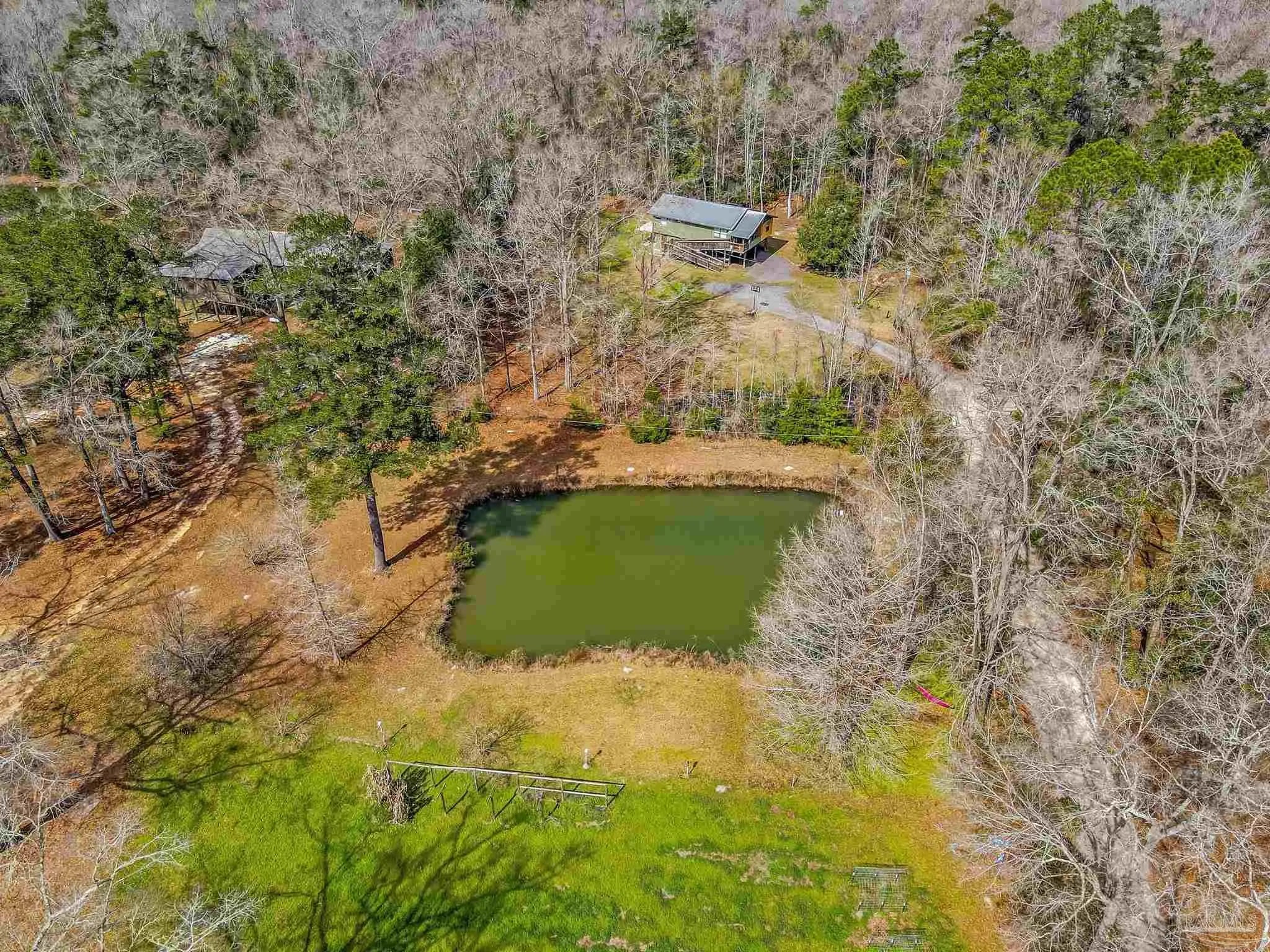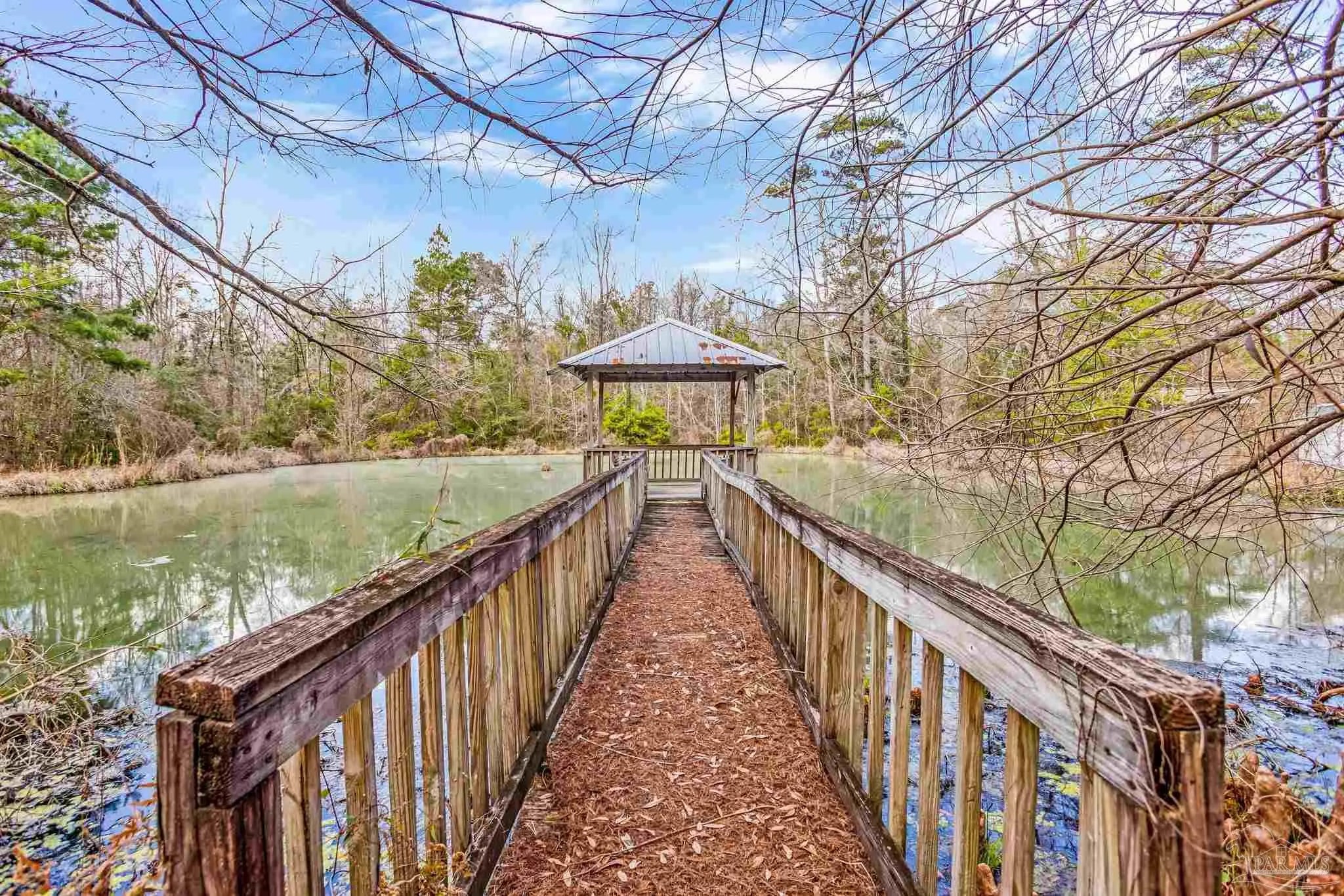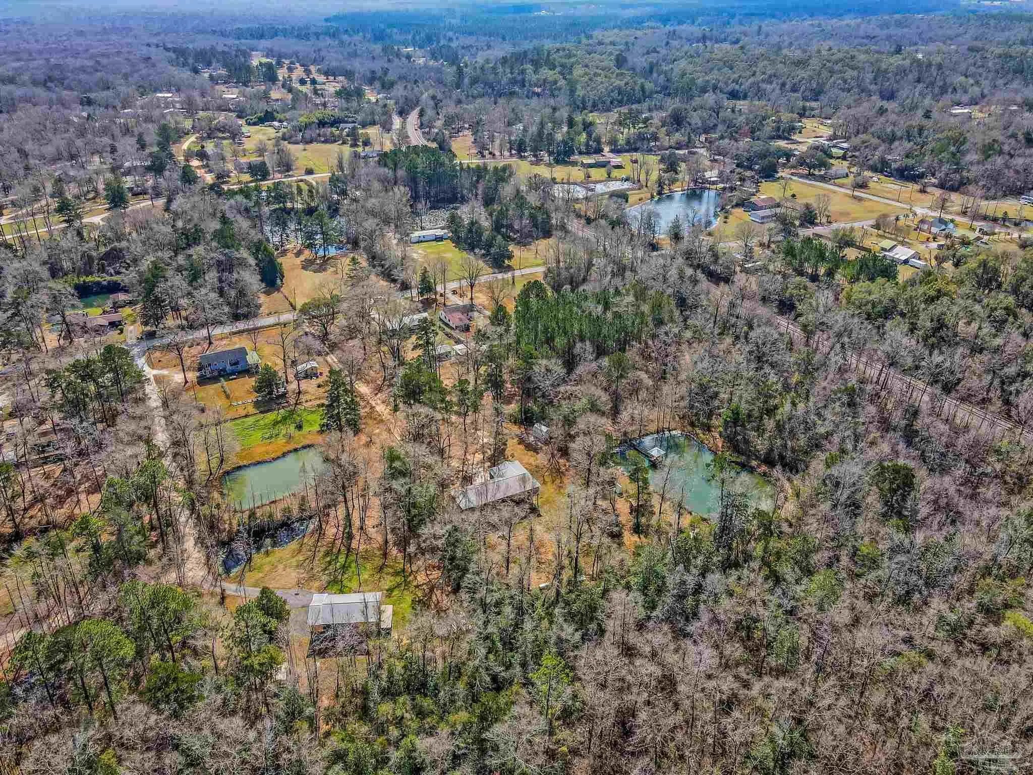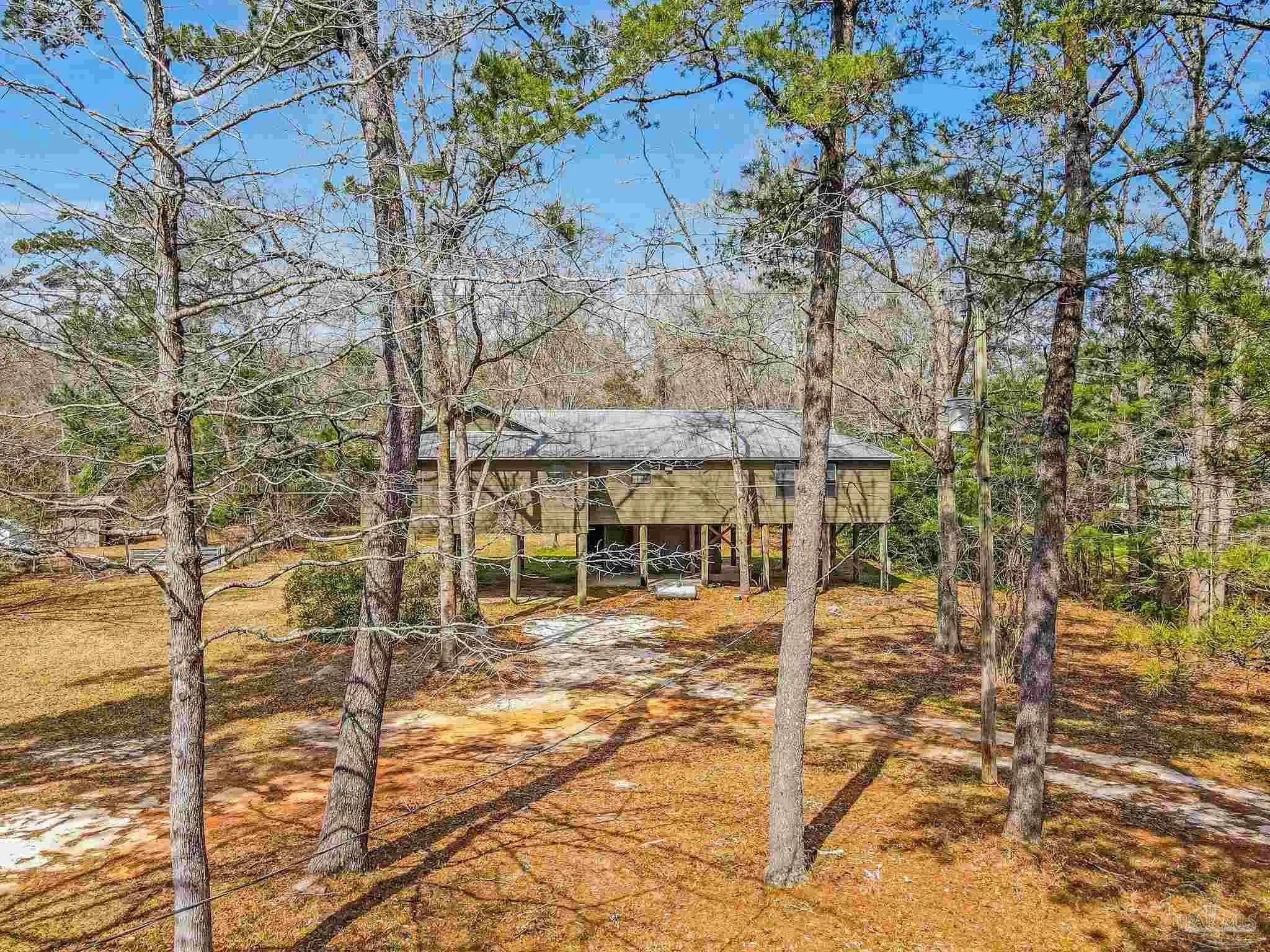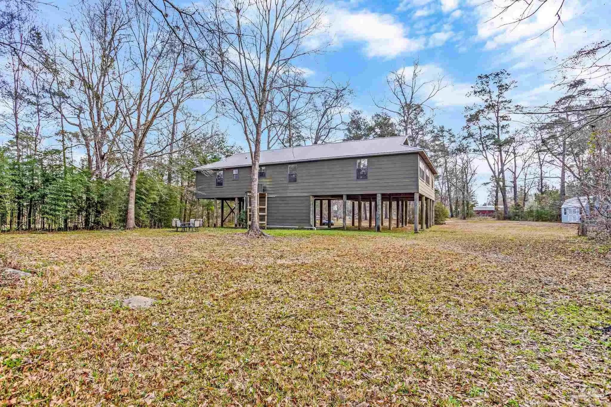 Tucked away from the paved road and surrounded by the quiet beauty of nature, this rare 6.8-acre retreat in Molino, FL offers the privacy like none other without sacrificing convenience. From the moment you arrive, the property showcases its peaceful, secluded feel with beautiful mature trees, two scenic ponds, and plenty of untapped, uncleared acreage ready for your vision, whether that’s expanding, gardening, or simply enjoying the extra space. The property also features a detached two-bay workshop and a dedicated gardening/storage shed, providing flexibility for hobbies, storage, or workspace needs. Inside, the home is designed for both comfort and function, beginning with a convenient ground-level laundry entry before opening upstairs into a spacious kitchen. The kitchen comes complete with a center island, abundant cabinet and countertop space, and chef-grade stainless steel appliances that make everyday cooking and entertaining a breeze. An arched entryway leads into the family room with vaulted ceilings, where windows overlook the larger lake. This lake is complete with its own dock and gazebo — the perfect setting for morning coffee or peaceful evenings spent fishing and enjoying the natural surroundings. The split floor plan creates a well-spaced layout, with the generous primary suite offering his-and-hers walk-in closets with custom storage, dual vanities, and a separate tub and shower. The opposite side of the home features three additional bedrooms and two full bathrooms, including one bedroom with an attached bath that is ideal for guests or extended family. The property is also located just minutes from the Molino Boat Ramp on the Escambia River. With acreage, water features, outbuildings, and close by river access all in one package, this unique Molino property offers space and opportunity that are increasingly hard to find — schedule your private showing today to experience everything it has to offer.