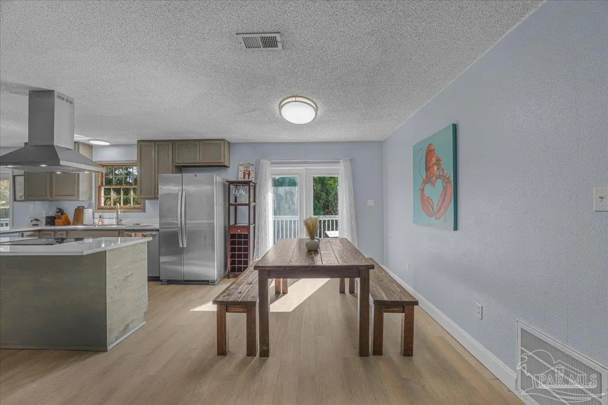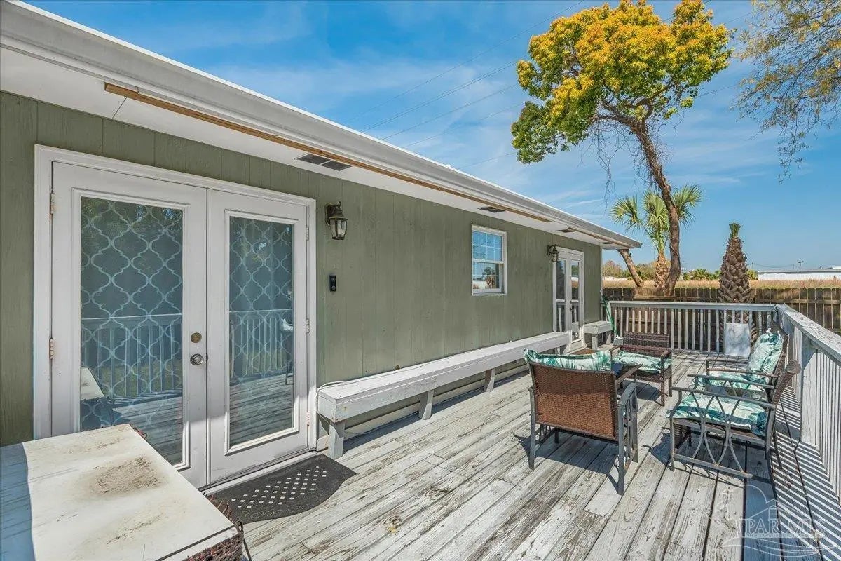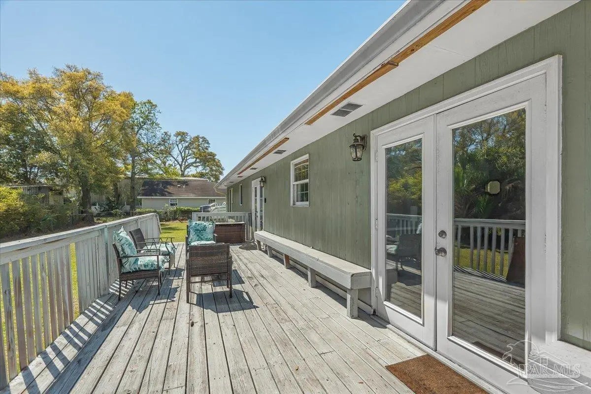 Exciting chance to reside in the sought-after Waterfront Community of Sanders Beach, just minutes away from the vibrant Downtown Pensacola, Maritime Park, and the myriad offerings of the city center. This residence holds significant potential as an ideal AIRBNB, with the option to come fully furnished. Currently situated merely two blocks from the Pensacola Yacht Club and the Sanders Beach Community Center along Pensacola Bay, this home boasts proximity to a community Waterfront Park featuring a playground, picnic tables, and water access for paddleboarding and kayaking. The well-maintained property is positioned at the end of I street on a 90x125 lot, covering .26 of an acre, providing a private and serene setting with ample space for an RV and boat. It is on a double lot, so there is potential to construct a second home on the right side of the existing dwelling, as the street curb already features a flat drive area. The current home is move-in ready, offering 3 bedrooms and 2 baths, with the roof installed in the spring of 2021. The HVAC unit was replaced in 2026. Other recent enhancements include new subfloor/insulation beneath the home (2026). The bathrooms were also updated in 2022. Throughout the residence, updated flooring adds a touch of elegance. The layout includes two sets of French doors leading to a spacious deck with built-in seating, perfect for entertaining. The kitchen has recently been updated with new appliances (2026), custom cabinets, and features a window overlooking the secluded backyard. Seize this opportunity to live in one of Downtown's most desirable neighborhoods.