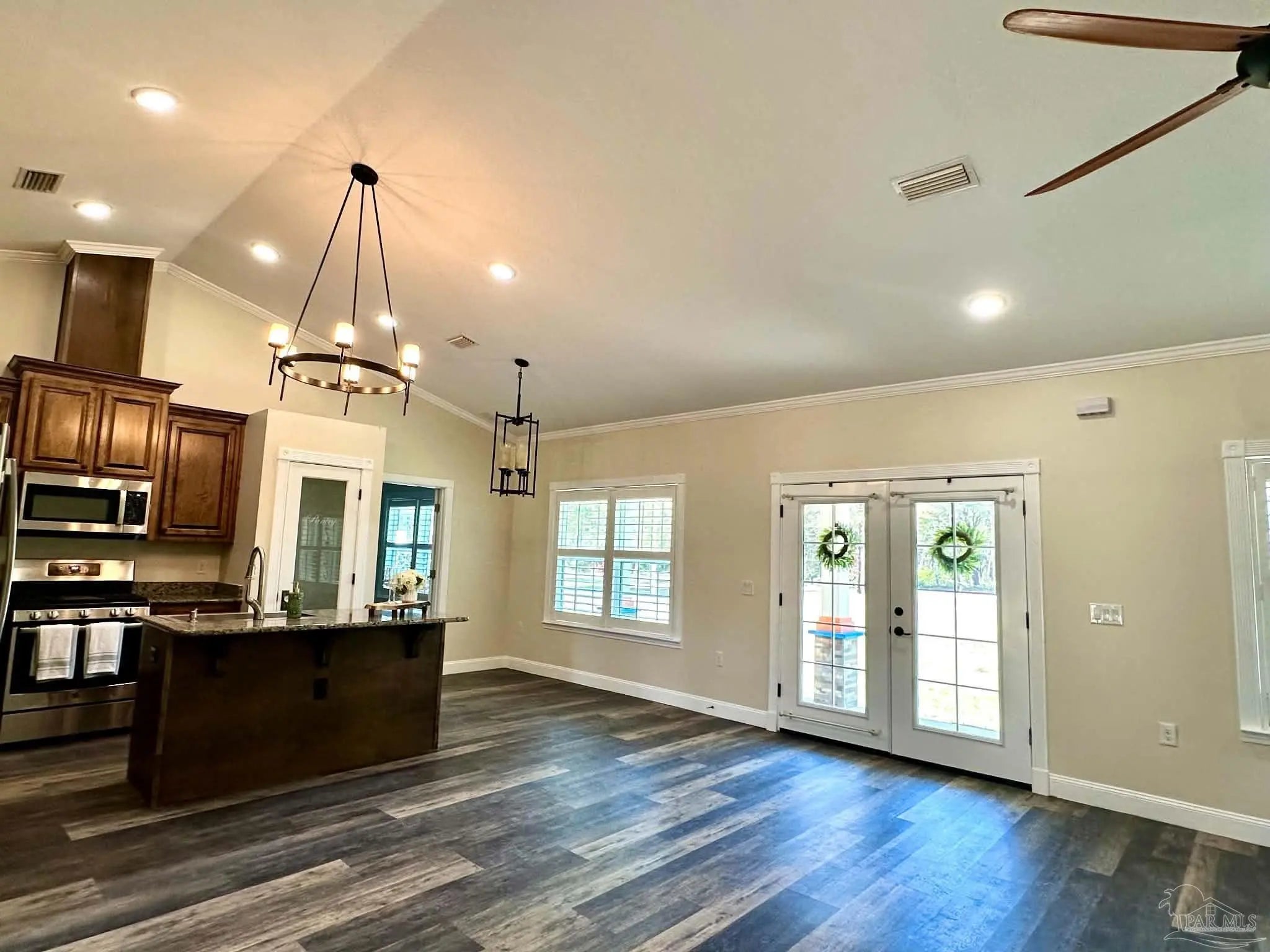 - Baseboards, Ceiling Fan(s), Crown Molding, High Ceilings, Recessed Lighting, Vaulted Ceiling(s)