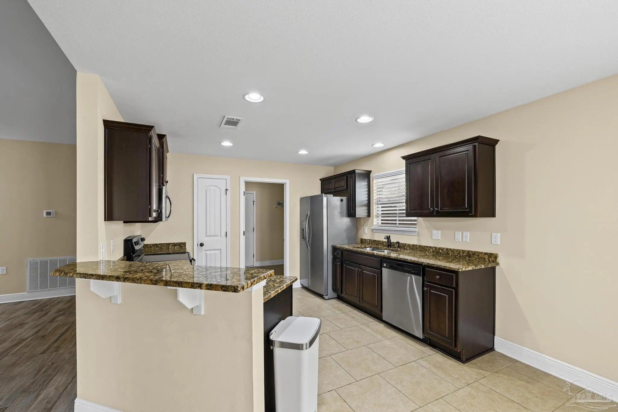 Welcome home to this beautifully maintained all-brick residence offering 3 bedrooms, 2 bathrooms, and just over 1,500 square feet of comfortable living space. From the moment you arrive, you’ll appreciate the pride of ownership and thoughtful updates throughout. Step inside to find durable tile flooring throughout the entire home — stylish, low-maintenance, and perfect for everyday living. The spacious living area flows seamlessly into the kitchen, creating an ideal layout for both relaxing and entertaining. The kitchen is a true highlight, featuring granite countertops, stainless steel appliances, ample cabinetry, and generous prep space. Whether you’re hosting family gatherings or enjoying a quiet night in, this kitchen delivers both function and style. The primary suite offers a private retreat with an en-suite bath, while two additional bedrooms provide flexibility for guests, a home office, or hobbies. Outside, you’ll fall in love with the backyard oasis. The paver patio creates the perfect setting for outdoor dining and weekend get-togethers, complete with a built-in fire pit for cozy evenings under the stars. It’s an ideal space to unwind or entertain year-round. Additional features include a brand new 2024 roof for peace of mind and a screened-in garage enclosure — perfect for enjoying fresh air while keeping bugs at bay, or creating a versatile bonus space for gatherings, hobbies, or relaxation. Solid construction, modern updates, and inviting outdoor living make this home a standout. Schedule your private showing today and see all it has to offer!