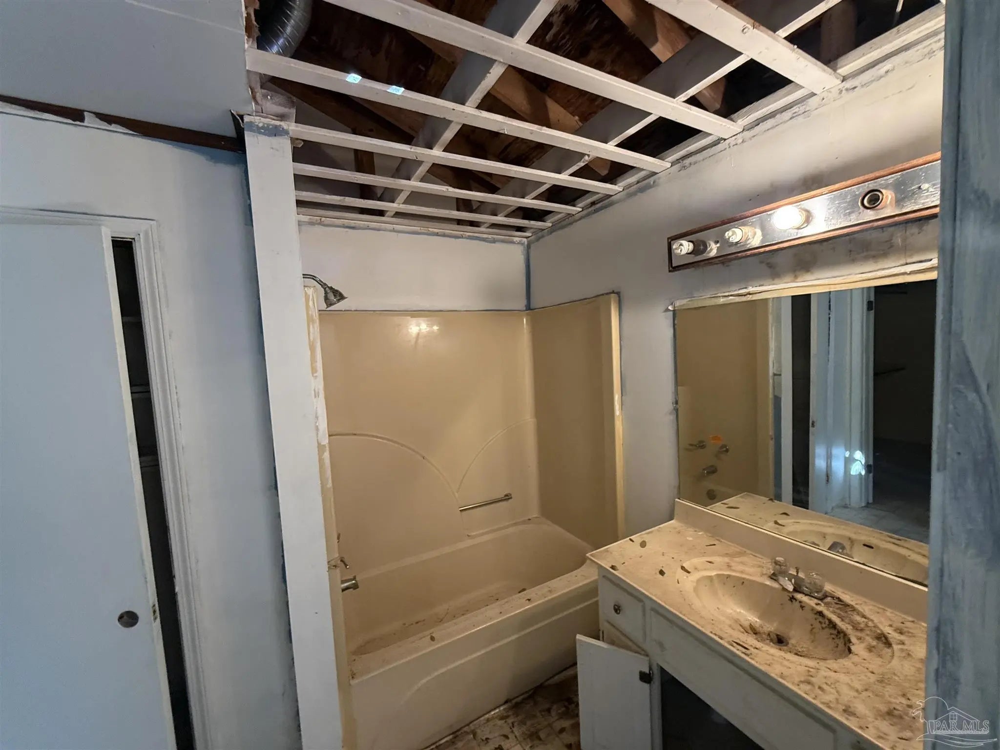 This is a fixer-upper investment property that requires renovation. Due to its current condition, traditional financing options are not available, and the property will require either cash or a renovation loan to proceed. Some of the standout features include a spacious, flat lot situated on a quiet cul-de-sac, .71 of an acre centrally located in Pensacola, just south of Brent Lane on Davis Highway. The property is zoned HMDU (High-Density Mixed Use), allowing for the placement of mobile homes—offering the potential to add a mobile home for additional rental income. However, verification with the county is recommended for further confirmation. In addition to the main house, there is a separate concrete block garage or storage building that will also need repairs. Both the house and the garage require new roofing. The main house itself needs rehab, as shown in the provided photos, making it an excellent opportunity for a buyer seeking a project with potential equity growth through renovation.