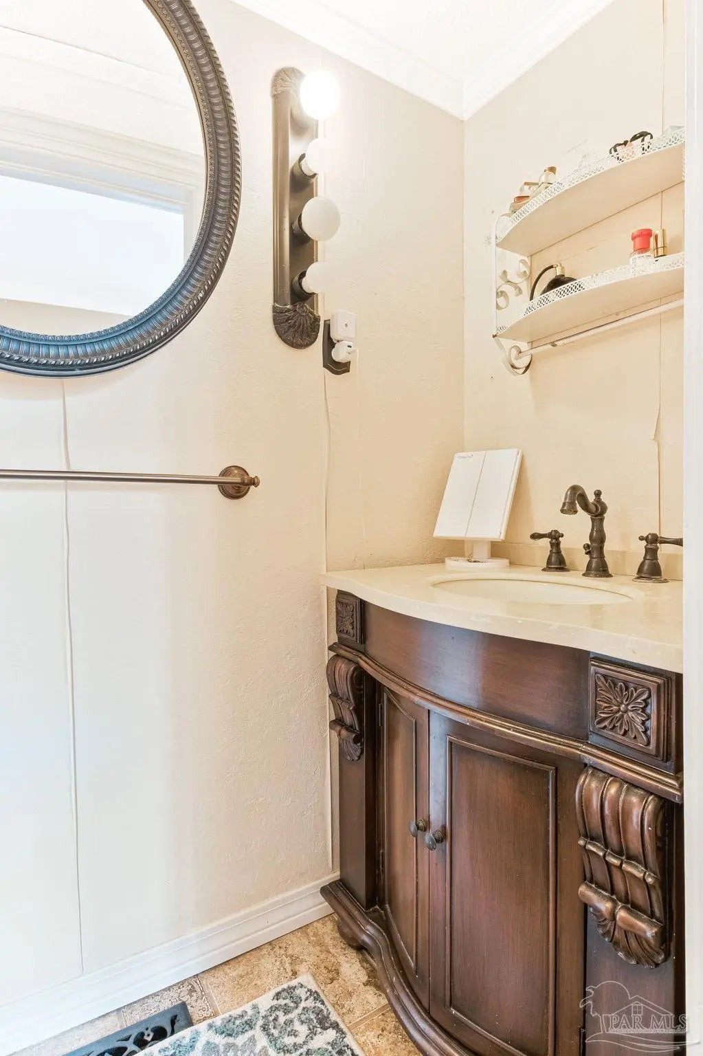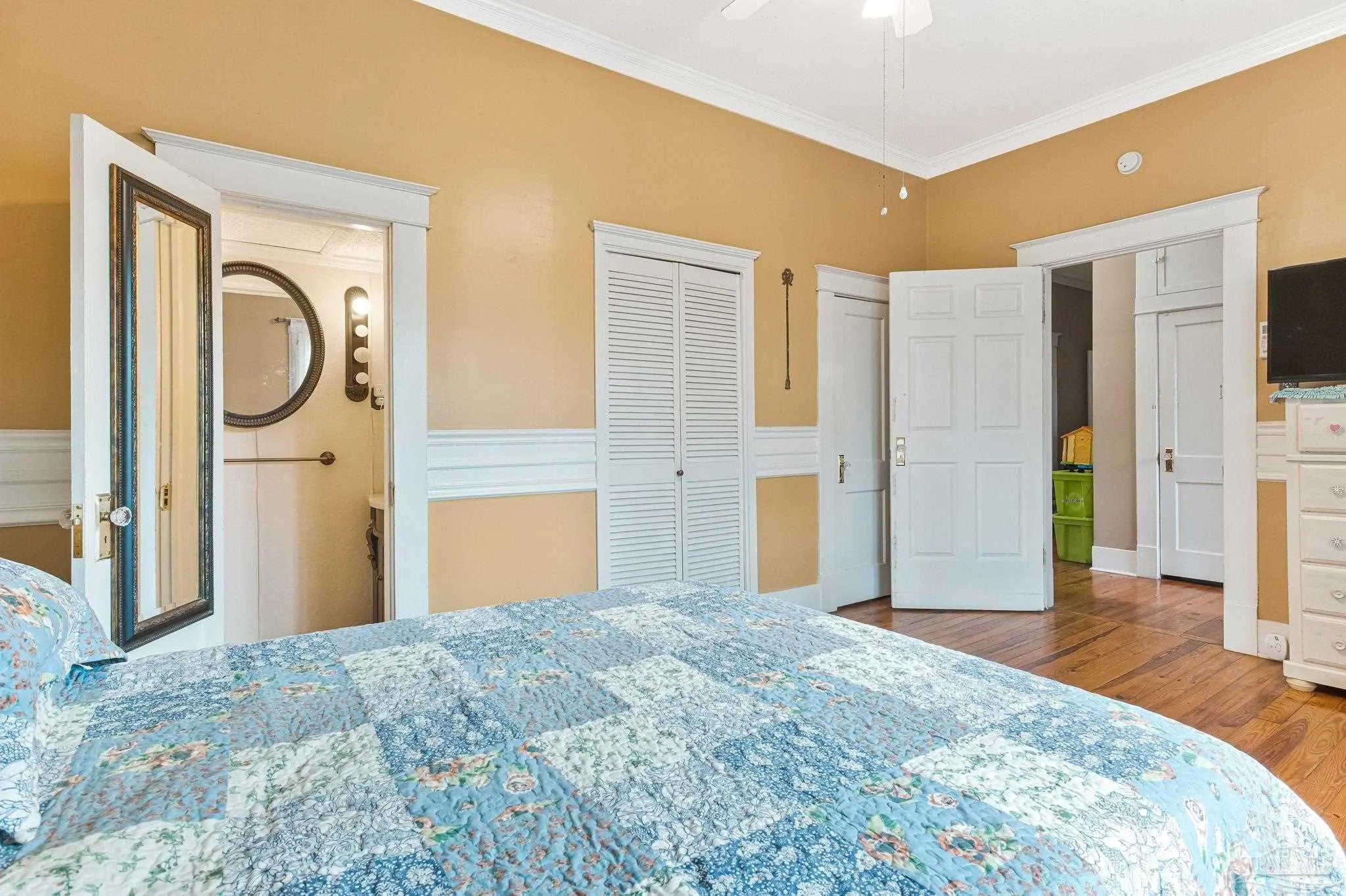 Classic 1936 brick home offering timeless character, flexible living space, and excellent location. Inside, you’ll find a formal living room and dedicated dining room, both featuring tall ceilings and original hardwood floors that reflect the craftsmanship of the era. Architectural details, including graceful archways and defined rooms, create a traditional yet functional layout suited for both everyday living and entertaining. The kitchen is light and airy with ample cabinet space and natural flow into the main living areas. Upstairs, the spacious attic has been finished to serve as a large bedroom or bonus room, complete with generous storage options—ideal for a private retreat, guest space, or home office. Outdoor living is equally inviting with a screened-in back porch that overlooks the yard, providing a comfortable space to relax year-round. The rear alley access offers convenient parking and added flexibility. Located just minutes from the elementary school and downtown Brewton, the property provides easy access to local shops, markets, dining, and community events. Its high-visibility setting may also present potential for alternative or commercial use, subject to buyer verification and rezoning approval. Well maintained with strong structural character, this home offers an excellent opportunity for buyers seeking classic design with room to personalize. Whether preserved in its current charm or thoughtfully updated, the property provides versatility, location, and long-term potential.