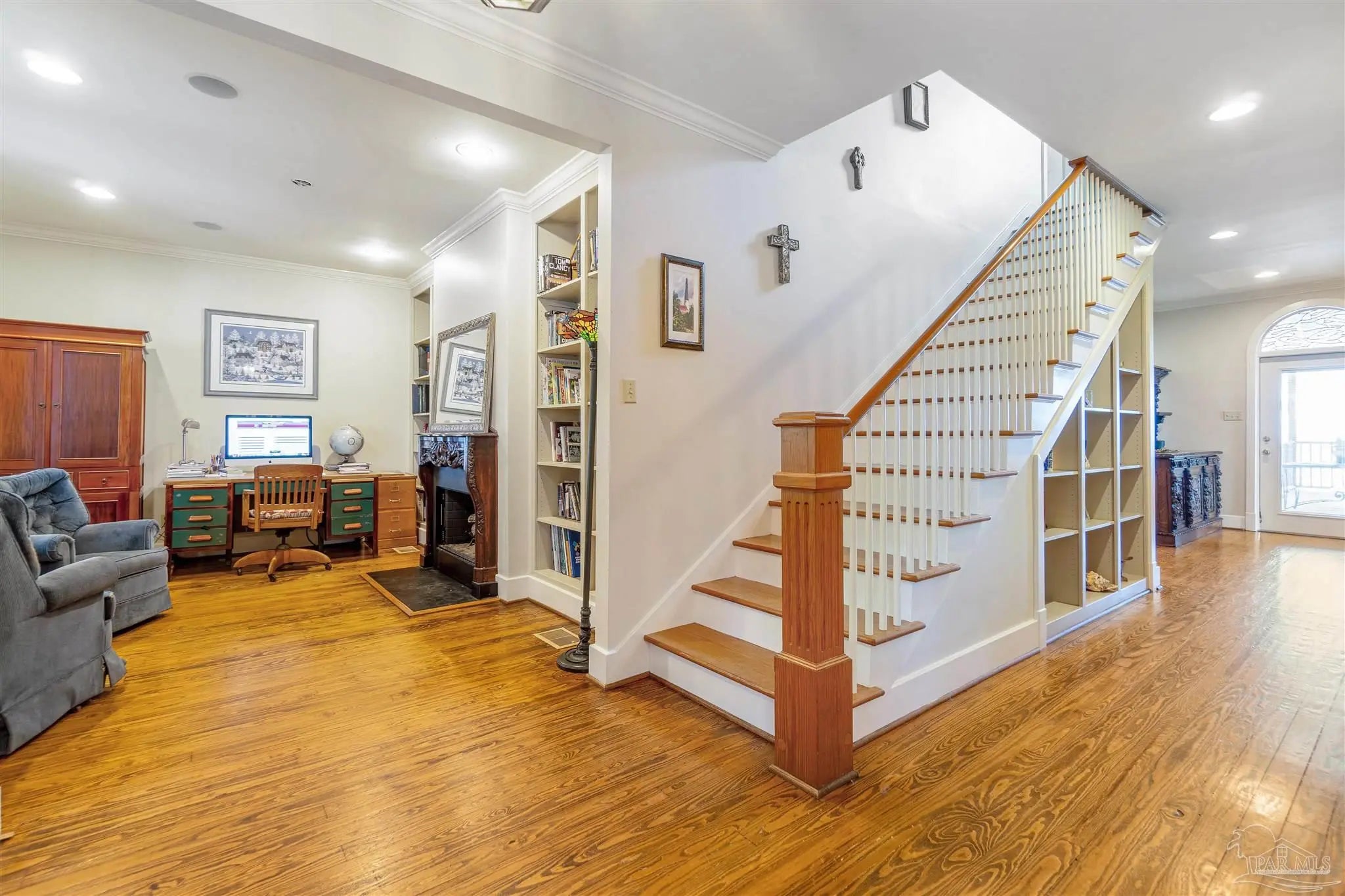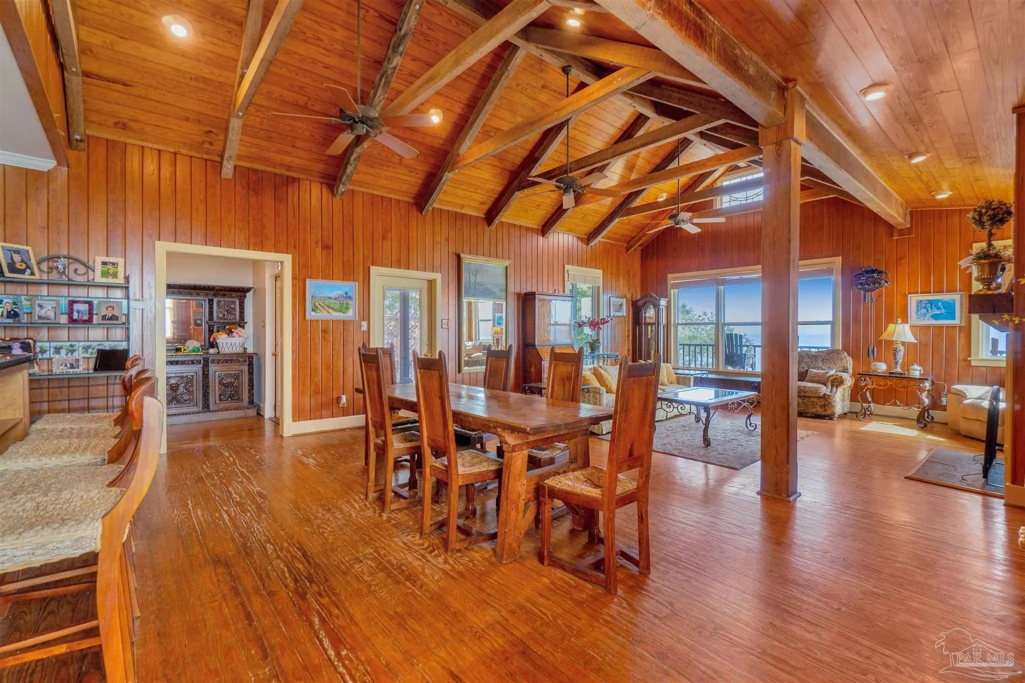 Come and see this beautiful 4 bedrooms/3 1/2 bath home tucked away on the water. Surrounded by beautiful oaks and foliage. Once you pull down this quaint street you are greeted by this beautiful home with a large front porch of to enjoy the summer breezes. Once you enter you are enchanted by the beautiful stain glass and Hardwoods. The Original home dates back to 1904 and was built by a Swedish ship builder. It was them transported to this beautiful lot with 70 ft of waterfront views of Pensacola Bay. As you enter the home you feel you are stepping back into time with beautiful stain glass window, 100% cedar woods, heart pine floors and vaulted wooden beams in the family room with windows that bring the beautiful sunshine and views of the water. The kitchen has an island with plenty of custom made cabinet with pull out shelving and class front doors, Wine fridges, Viking stove and plenty of room for entertaining. New Roof and Windows within the last 5 years. Make your appointment to see this unique home with beautiful views of the water.