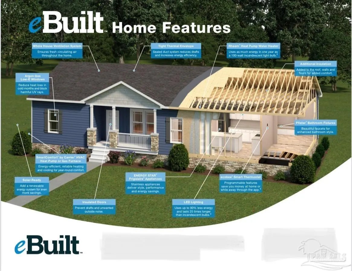 Welcome to this beautifully designed, manufactured eBuilt home, offering nearly 1,800 square feet of smart, energy-efficient living space—perfect for families or anyone seeking comfort, style, and sustainability. Built to exceed Energy Star standards, eBuilt homes are designed to reduce your utility bills by 40–50% annually compared to traditional manufactured homes—giving you peace of mind and long-term savings. Step inside and be welcomed by an expansive living room that seamlessly connects to a cozy family room, offering flexible space for relaxation, entertaining, or everyday living. Large windows bathe the home in natural light, creating a bright and inviting atmosphere throughout. The open-concept kitchen is the heart of the home, complete with a stylish center island, ample counter space, and a dedicated dining area—perfect for everything from casual meals to festive gatherings. Retreat to the private master suite, featuring a spacious en-suite bathroom and an impressive walk-in closet—your own personal haven at the end of the day. Three additional well-appointed guest bedrooms provide comfort, privacy, and ample space for family, guests, or a home office. Don’t miss this opportunity to own an eco-friendly, thoughtfully designed home that blends functionality, comfort, and style. Schedule your tour today and take the first step toward owning your dream home!