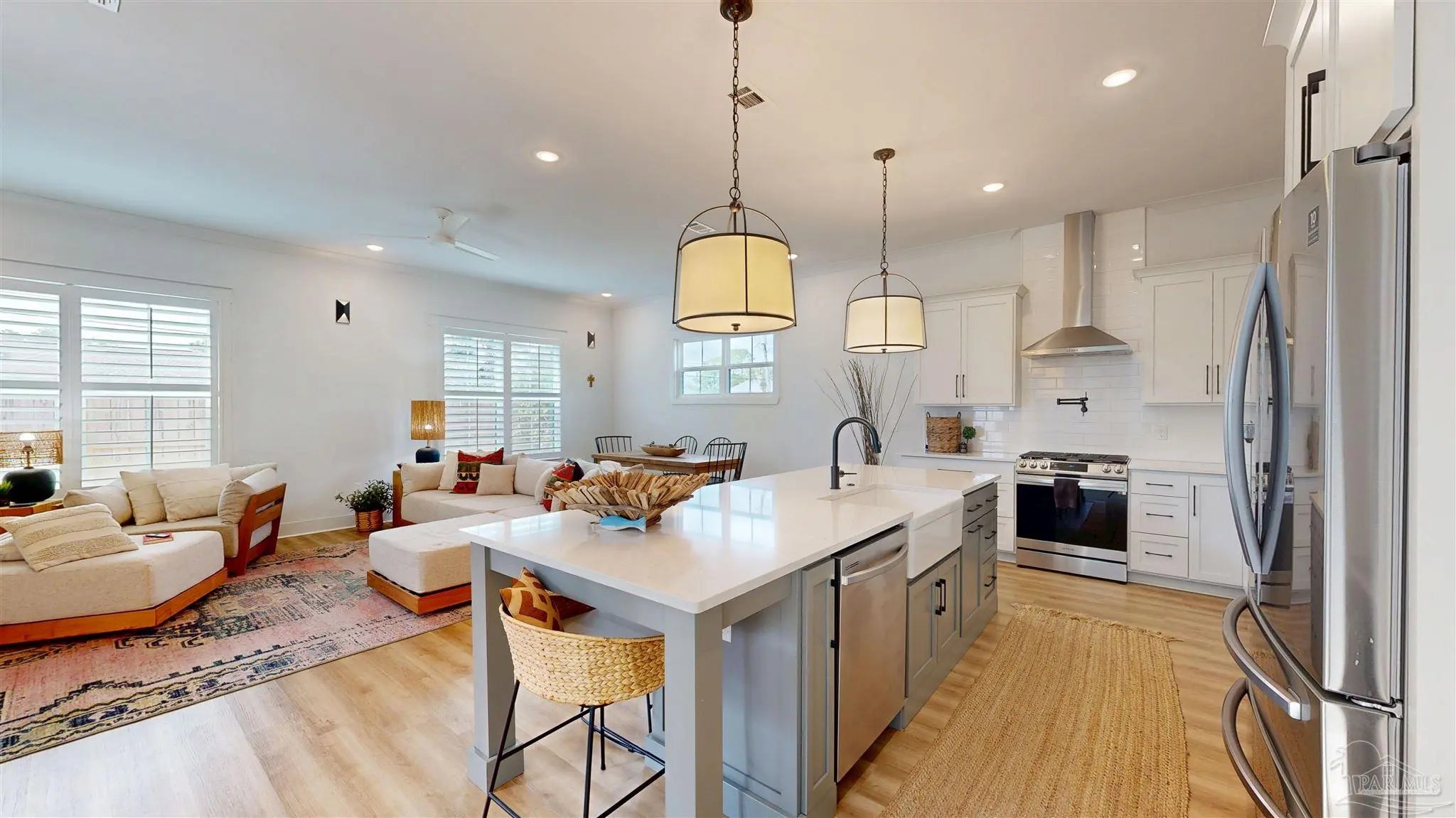 This immaculate two-story single-family home, built in 2022, features 3 bedrooms and 2.5 bathrooms, maintaining a brand-new appearance. Only one owner and never rented. Upon entry, you'll be greeted by a stunning staircase and modern updates throughout. The open-concept design is perfect for entertaining, with a neutral color palette kitchen featuring white quartz countertops, white cabinets, a large island with a pop of color, a gas oven with a pot filler, and stainless steel appliances. Luxury vinyl flooring spans the entire home. The kitchen seamlessly transitions into the living and dining spaces, where the living room showcases a gas fireplace accented with herringbone wood. The first floor includes a convenient half bath. Upstairs, all three bedrooms provide ample space. The primary bedroom showcases a wood inlay ceiling and an en-suite bathroom with a separate shower, large soaking tub, dual vanity sinks, a separate water closet, and extra storage. The custom primary closet connects directly into the laundry room for added convenience. The guest bedrooms share a Jack and Jill bathroom with dual vanity sinks. Redfish Harbor offers exceptional community amenities, including a 45' x 25' pool, fitness park, community dock, bathhouse, outdoor living area with fireplace and lounge, and pickleball courts. The natural landscapes are breathtaking. Wet slips are available for purchase, accommodating boats up to 14 feet wide and 40 feet long with an average draft of 4 feet, perfect for enjoying the Gulf Coast's emerald green waters. This community is conveniently located minutes from the sugar-white sand beaches of Perdido Key, Florida, and Orange Beach, Alabama. Enjoy easy access to various amenities, local shops, restaurants, and vibrant beachside bars. It’s a perfect blend of coastal charm, natural beauty, and modern conveniences, making it a desirable community for those seeking a coastal retreat, vacation rental or a permanent residence along the Gulf Coast.